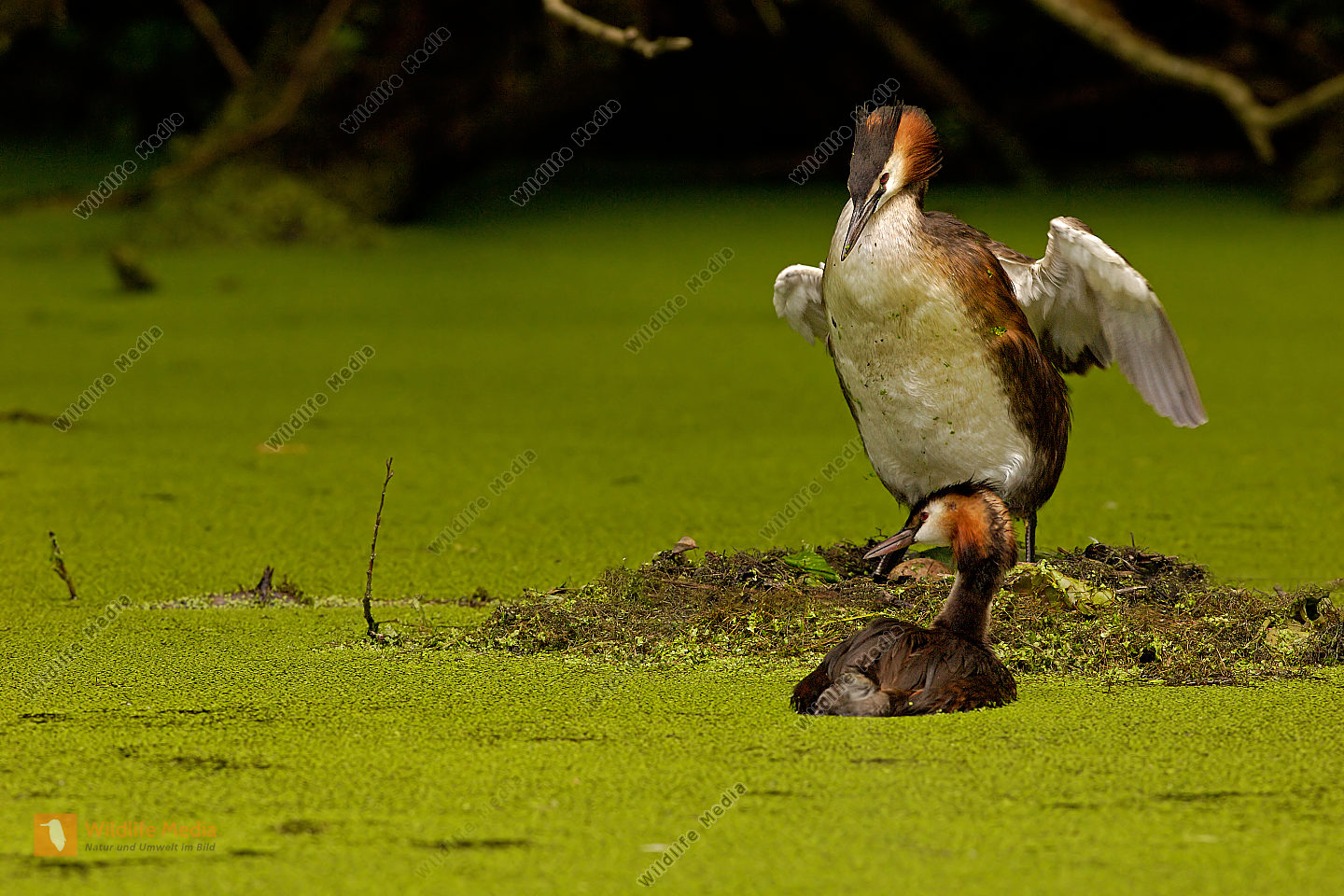 Haubentaucher auf dem Ökosee in Dillingen im Saarland