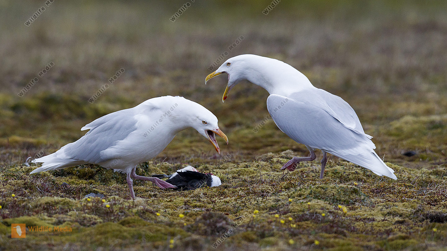 Eismöwen streiten um totes Küken