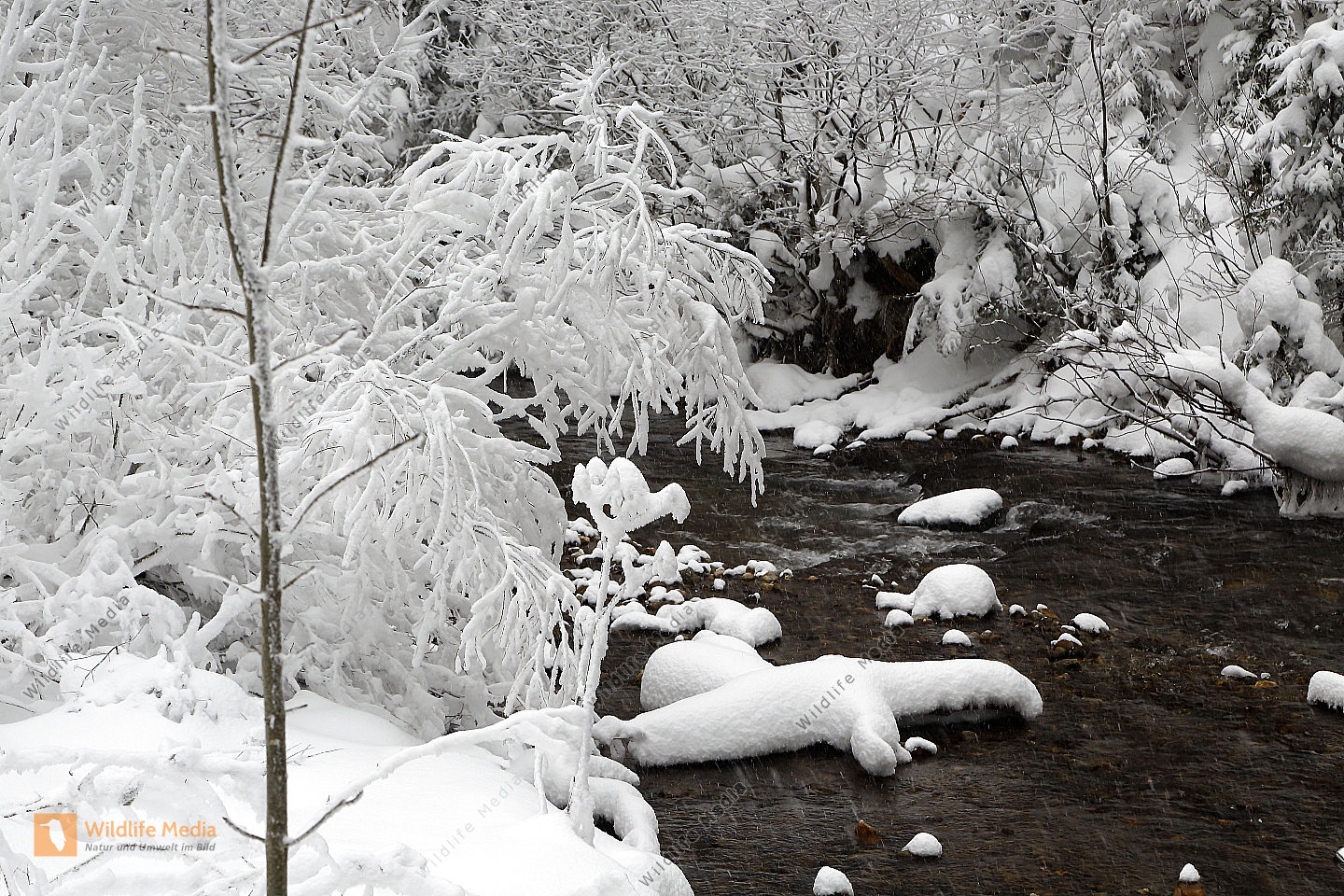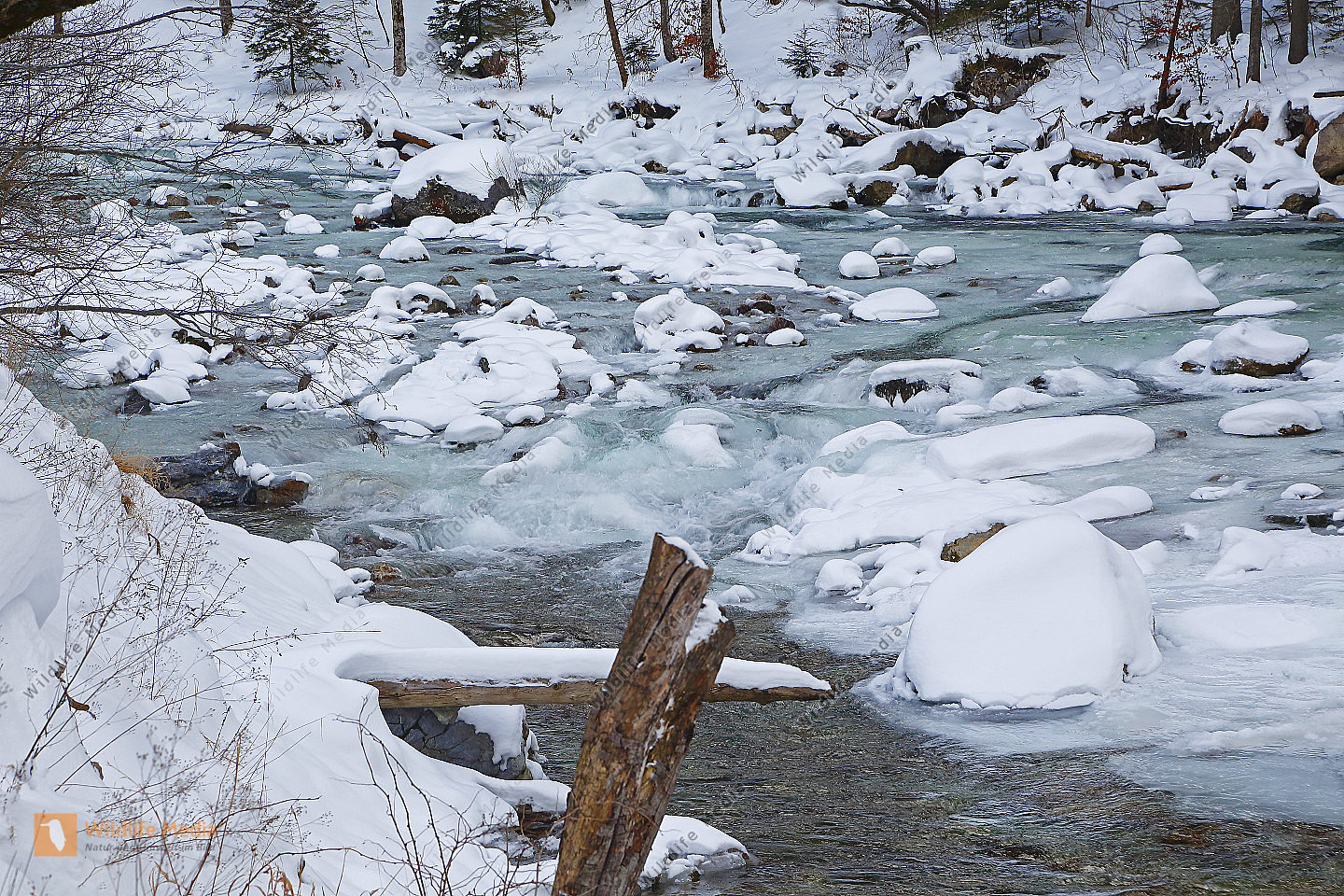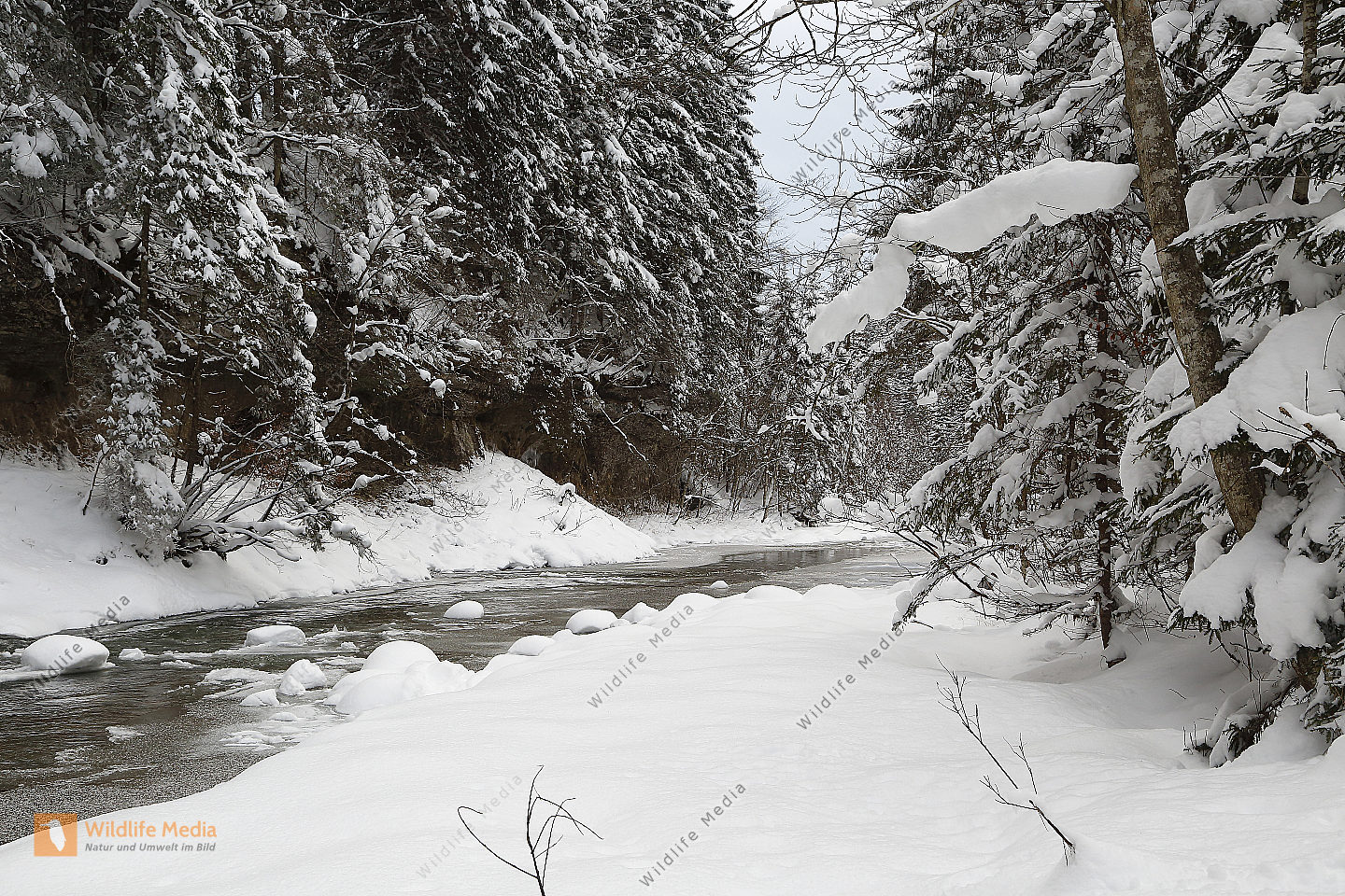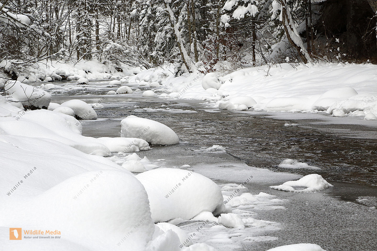 Vereister und Verschneiter Waldbach
