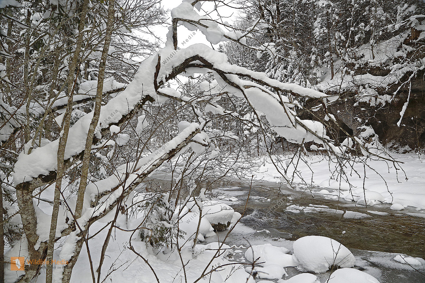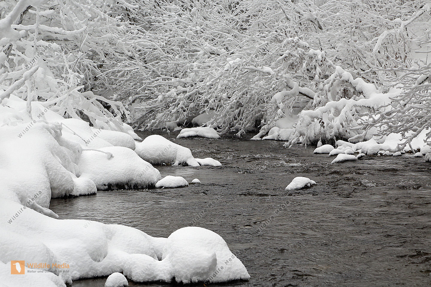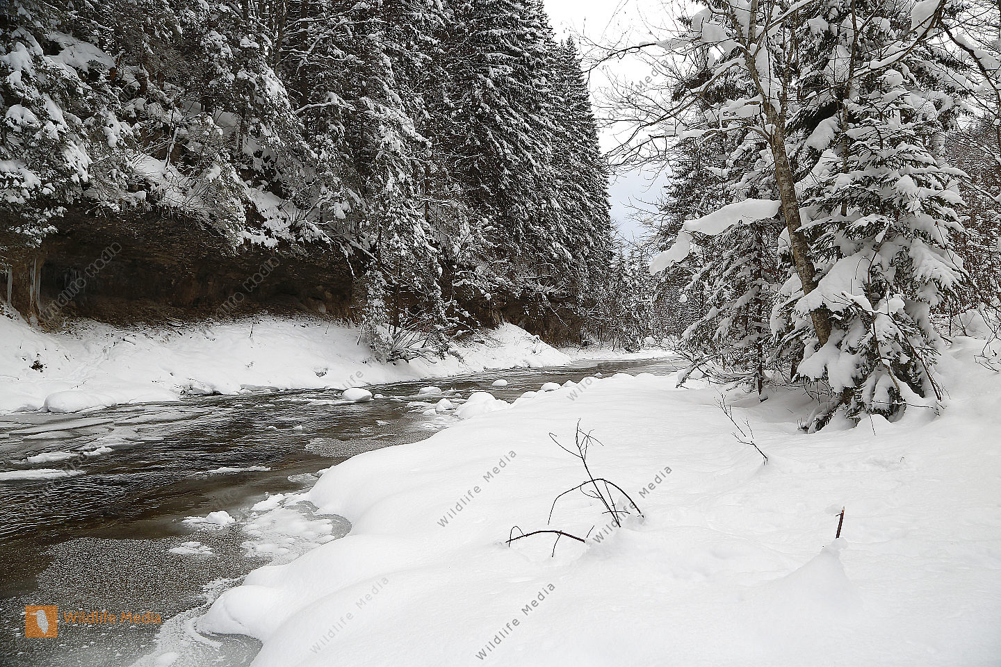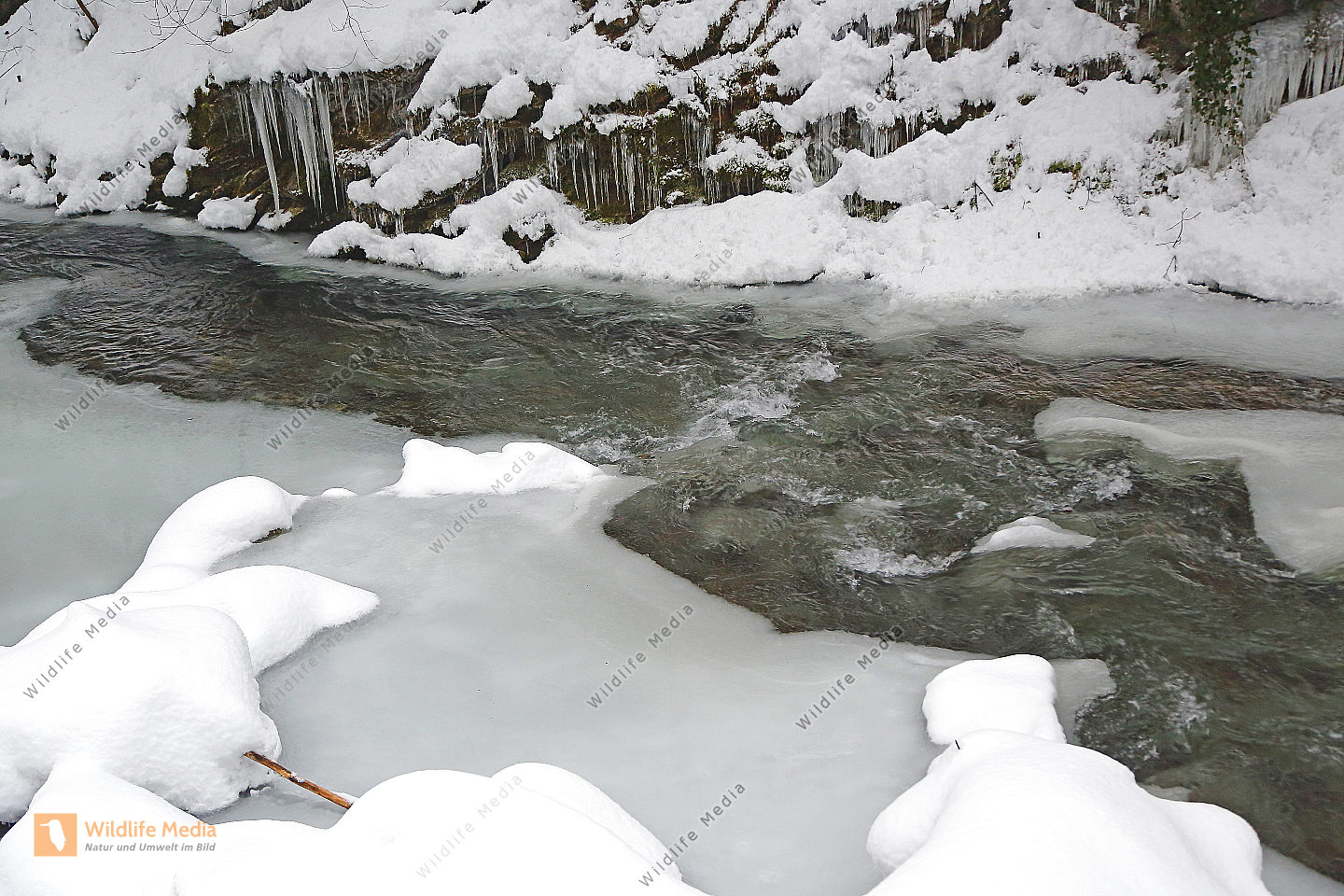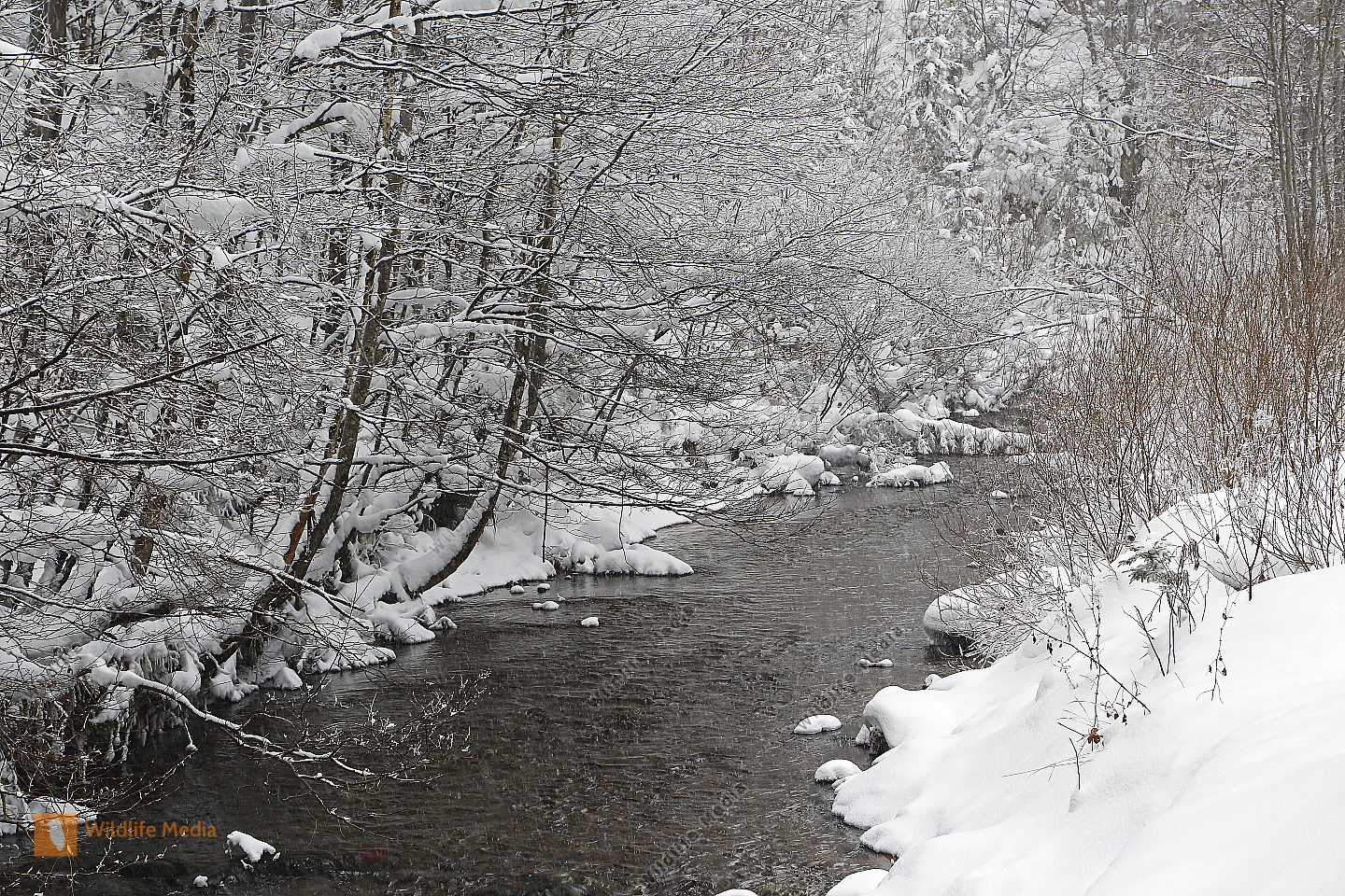 Vereister und Verschneiter Waldbach