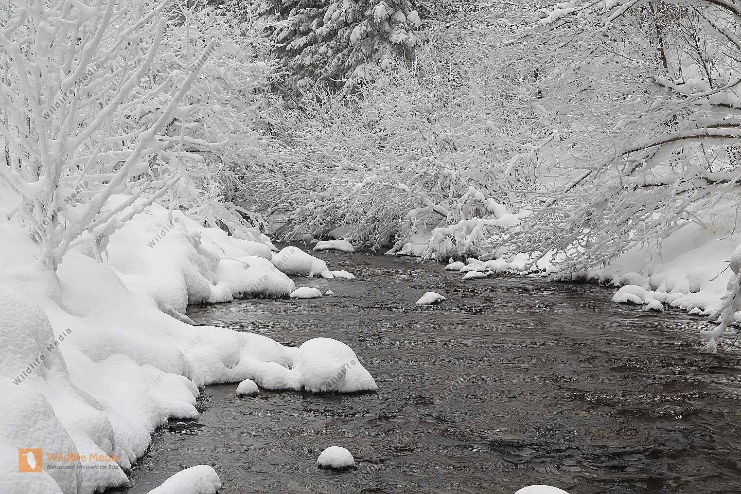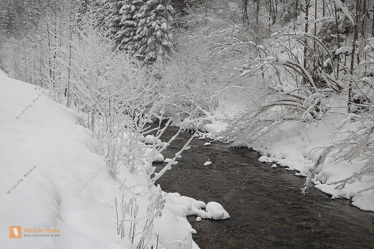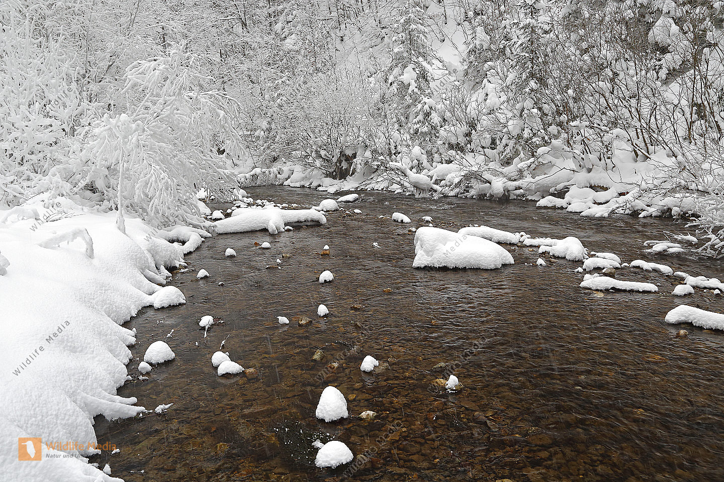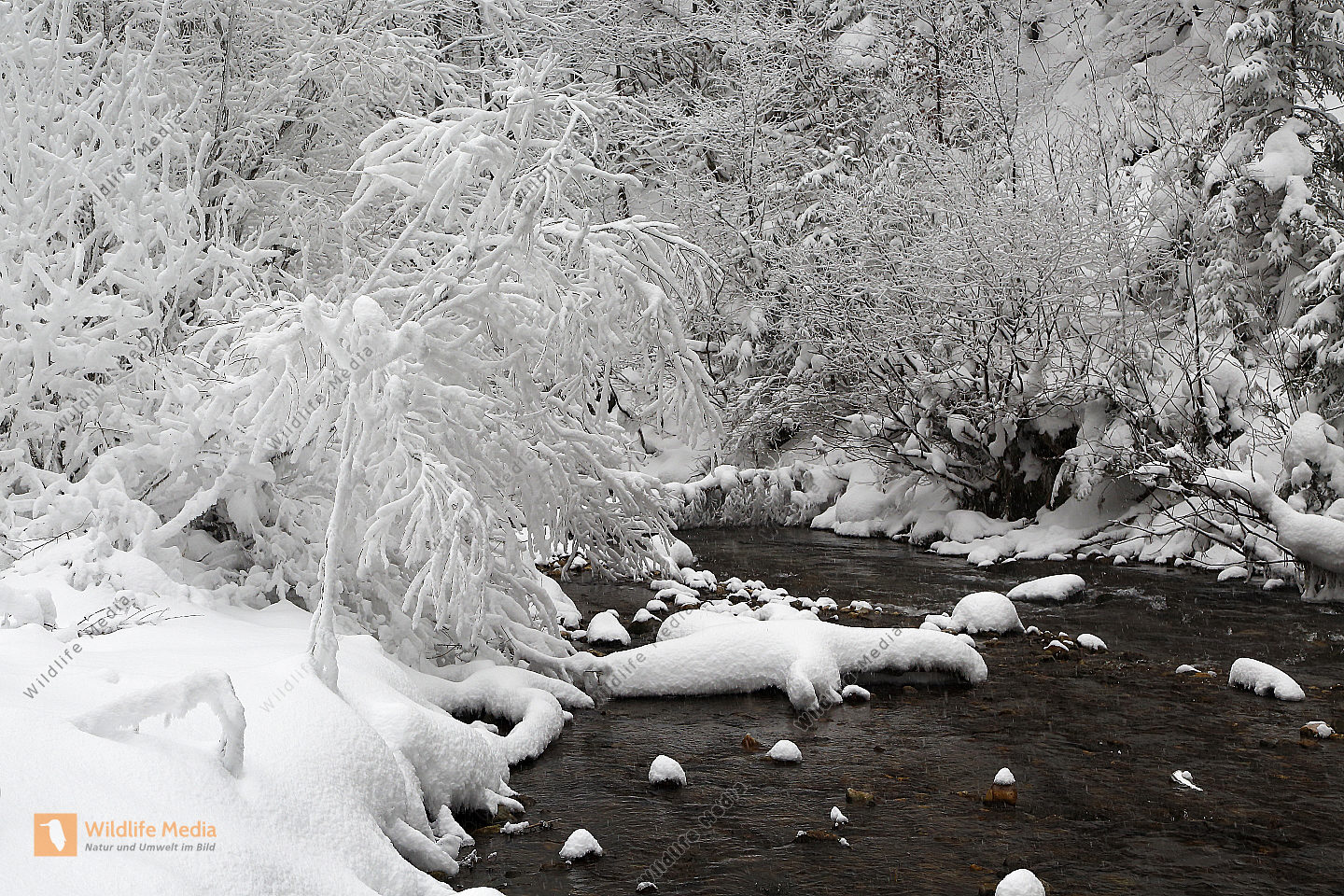 Vereister und Verschneiter Waldbach