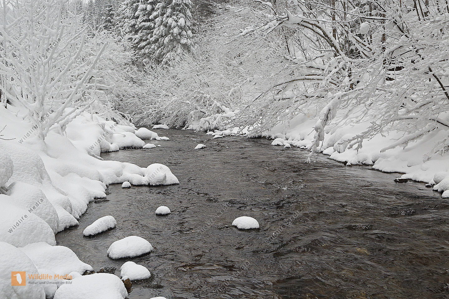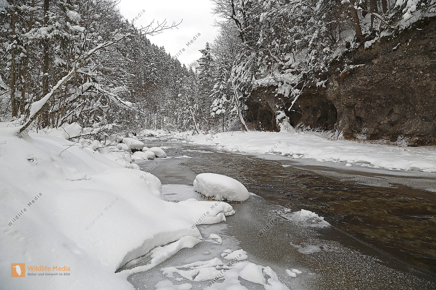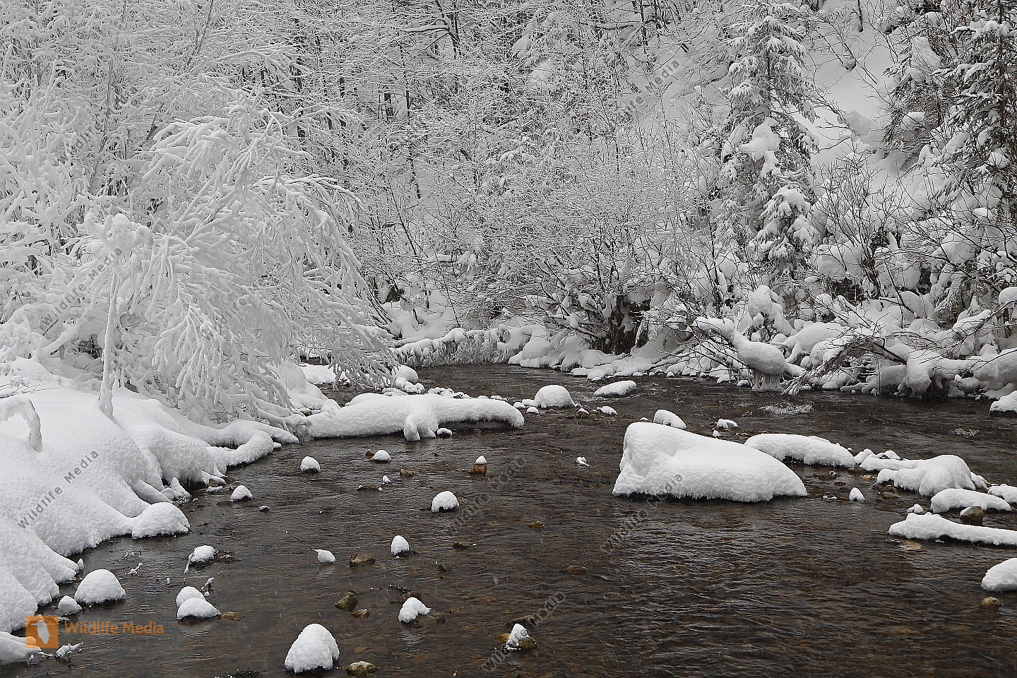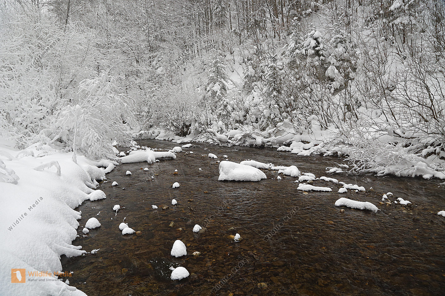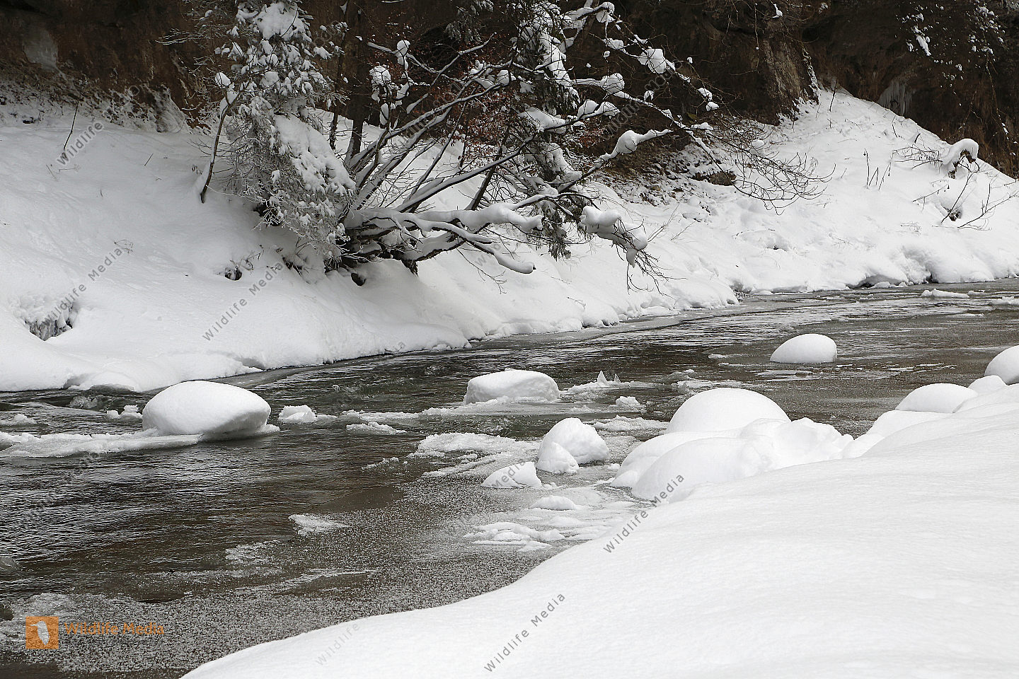 Vereister und Verschneiter Waldbach