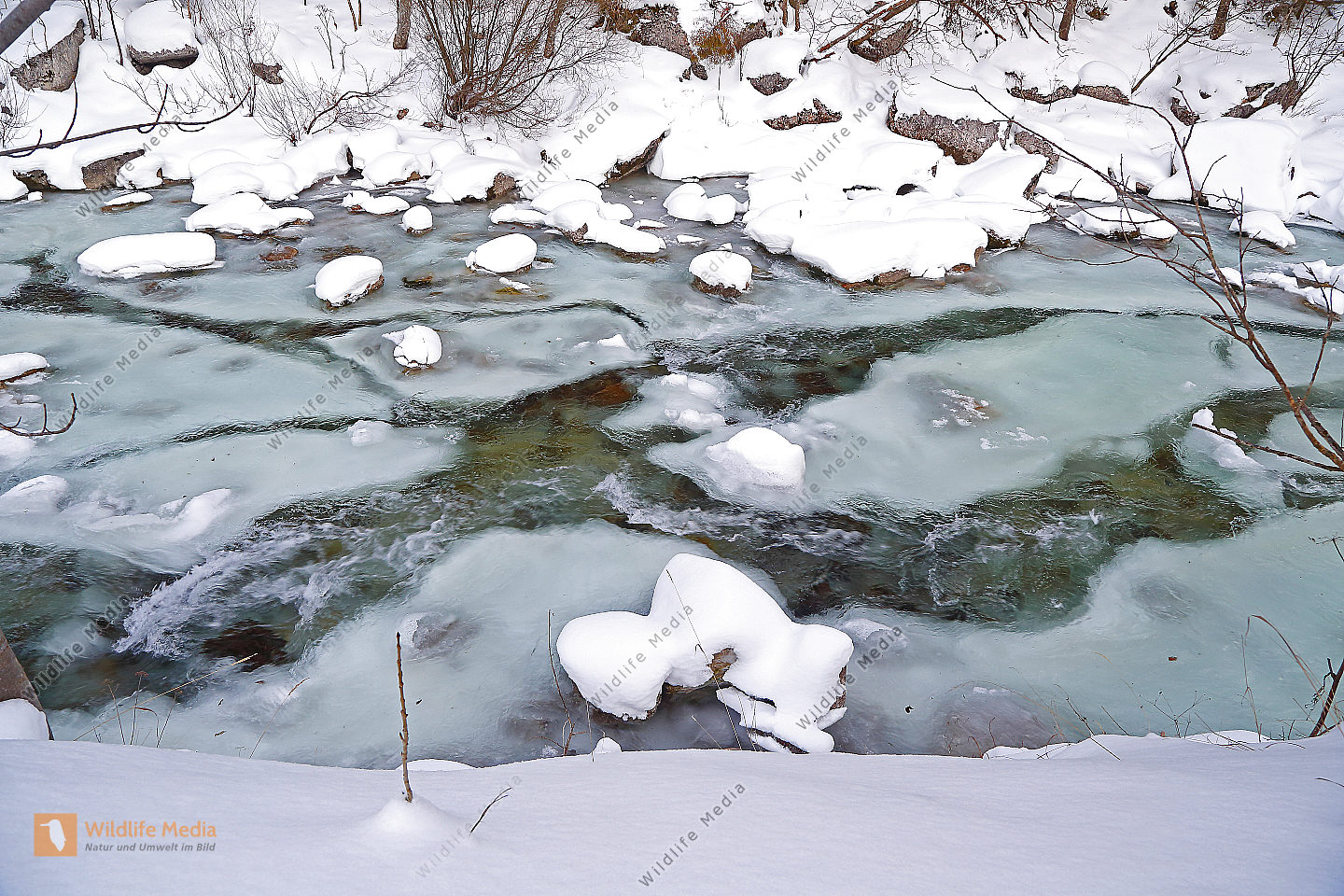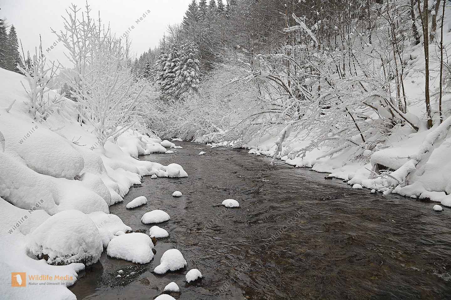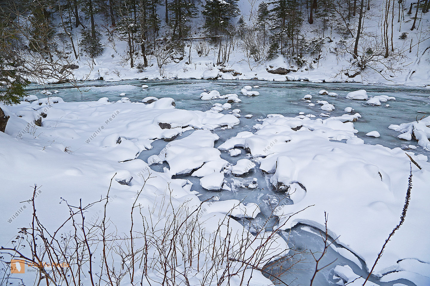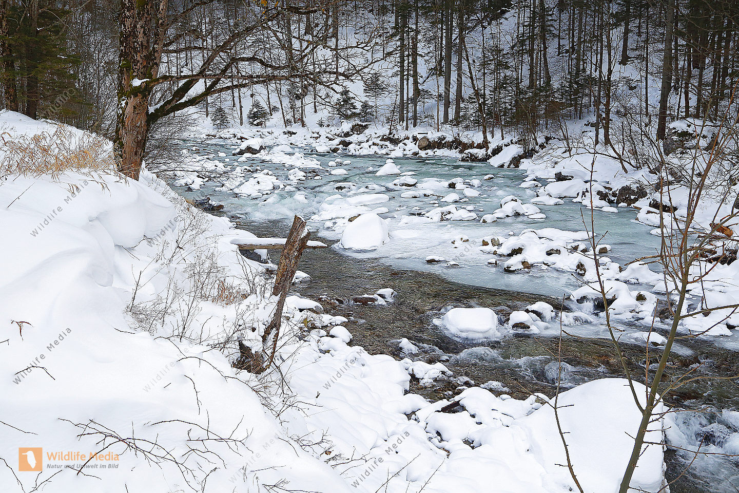 Vereister und Verschneiter Waldbach