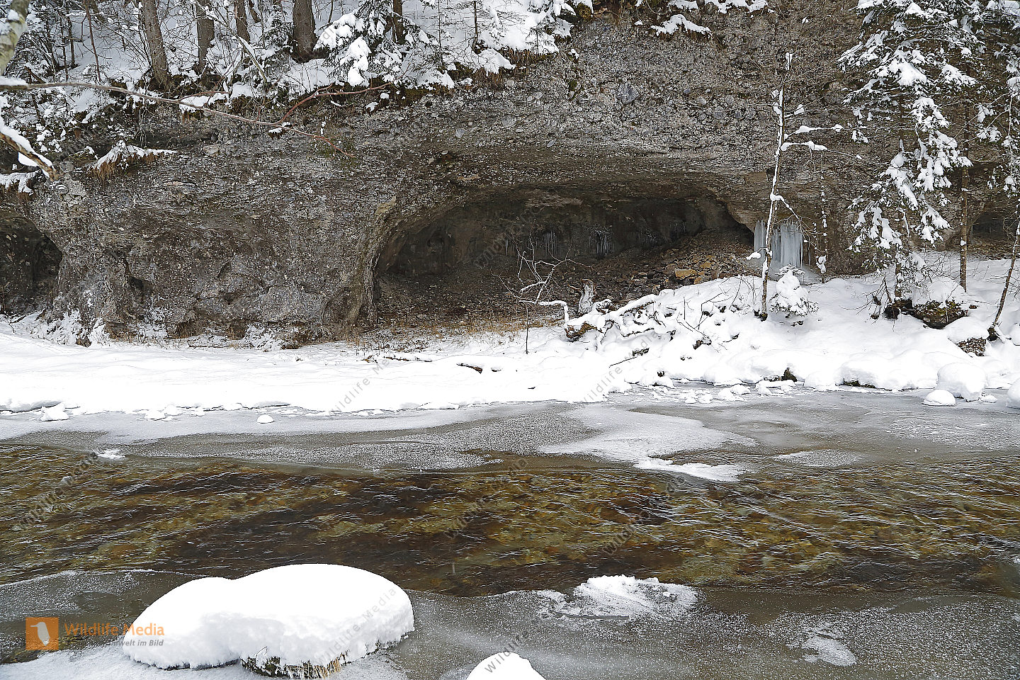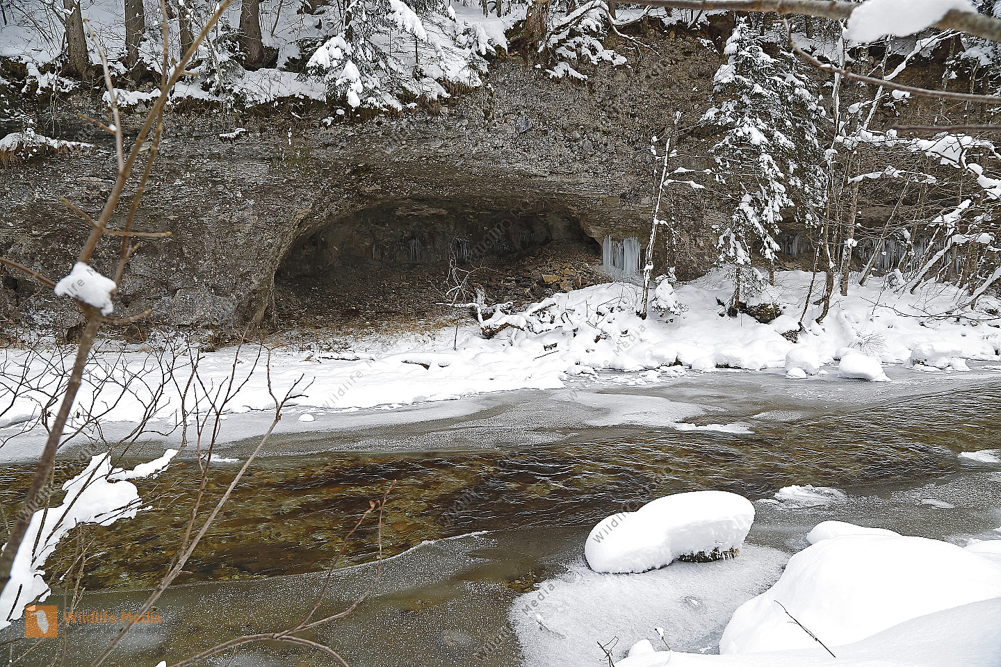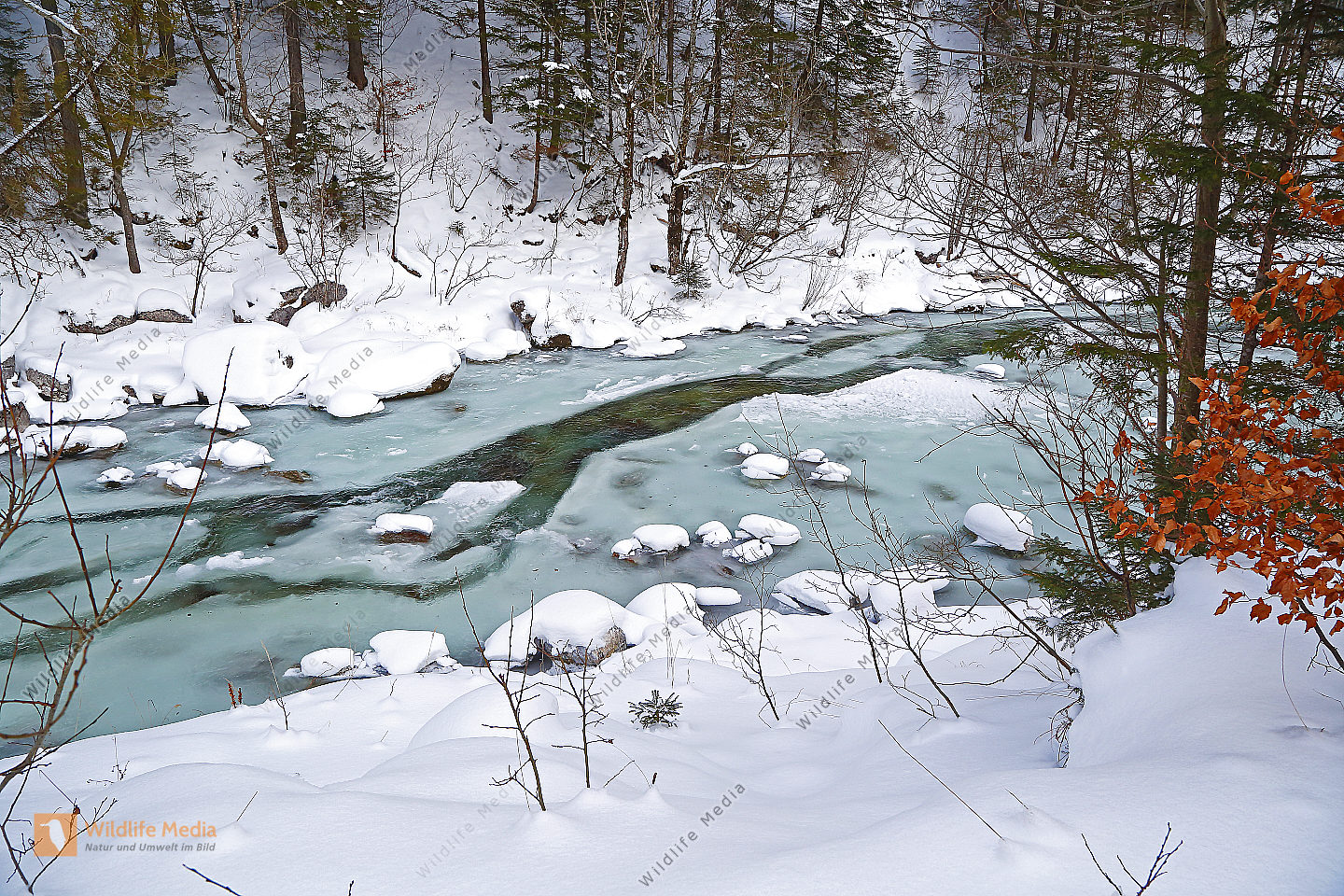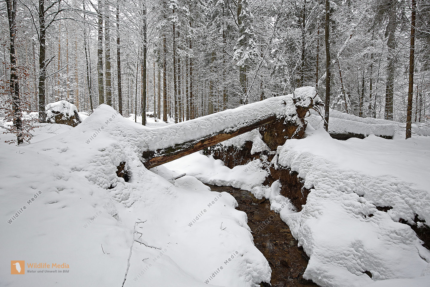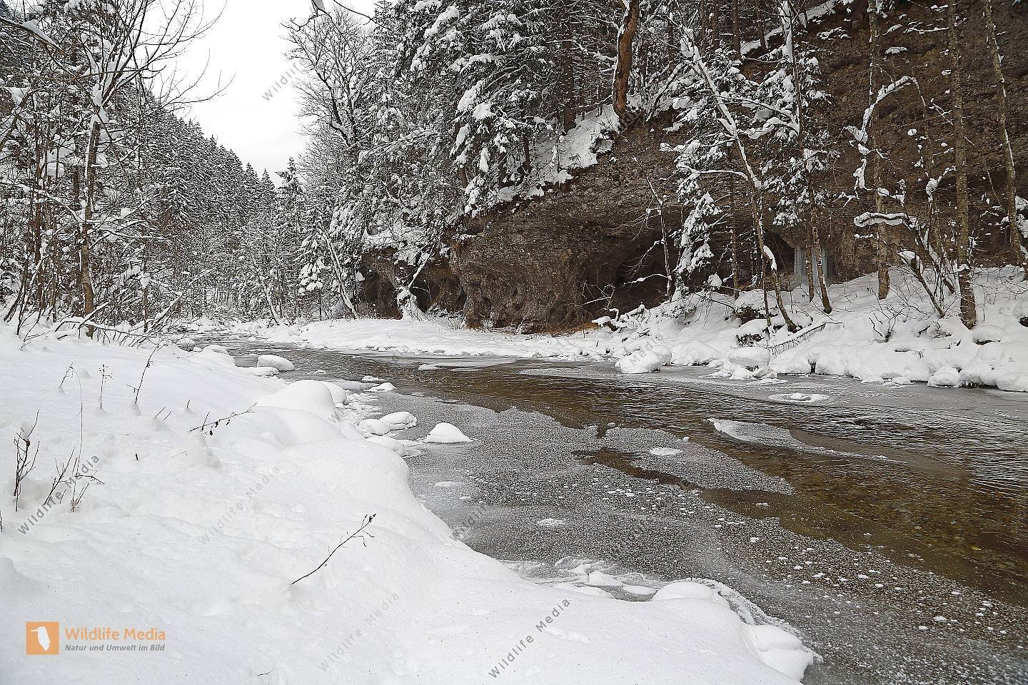 Vereister und Verschneiter Waldbach