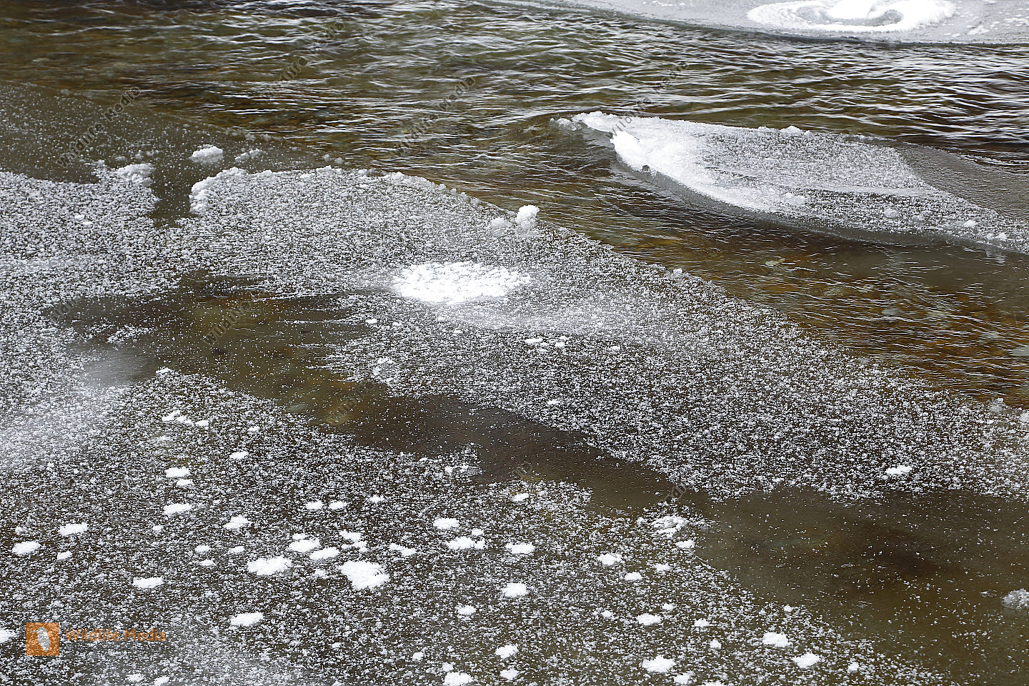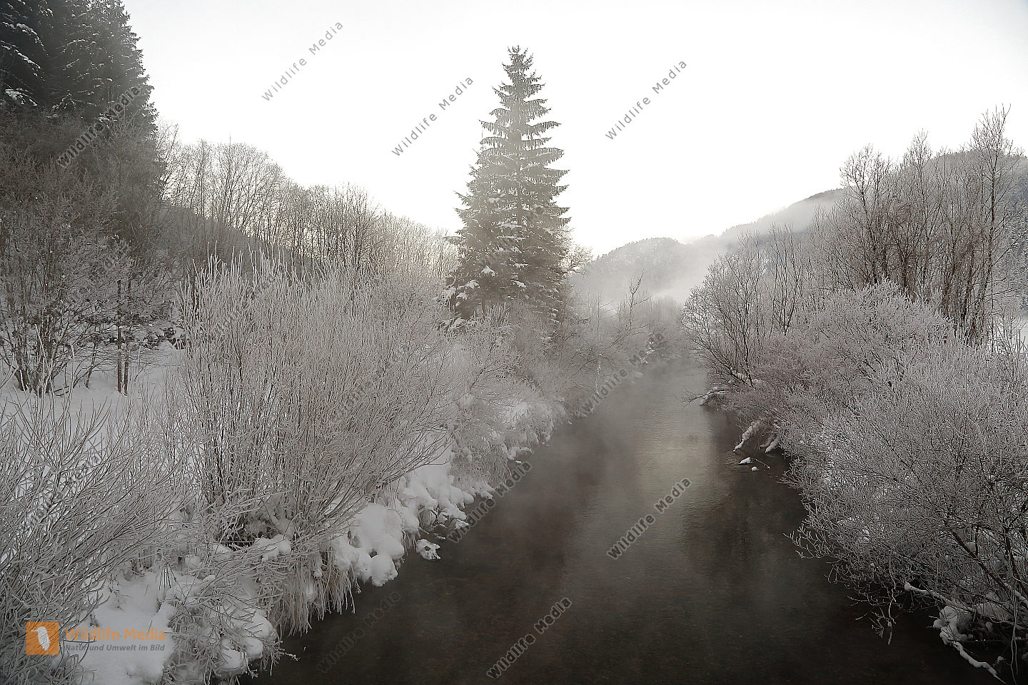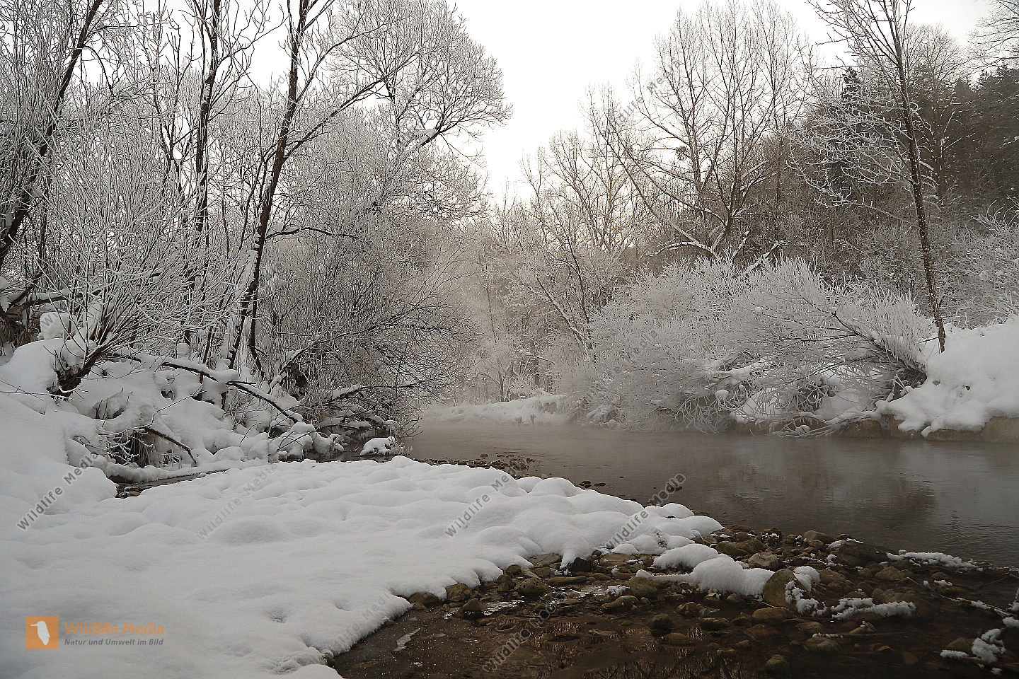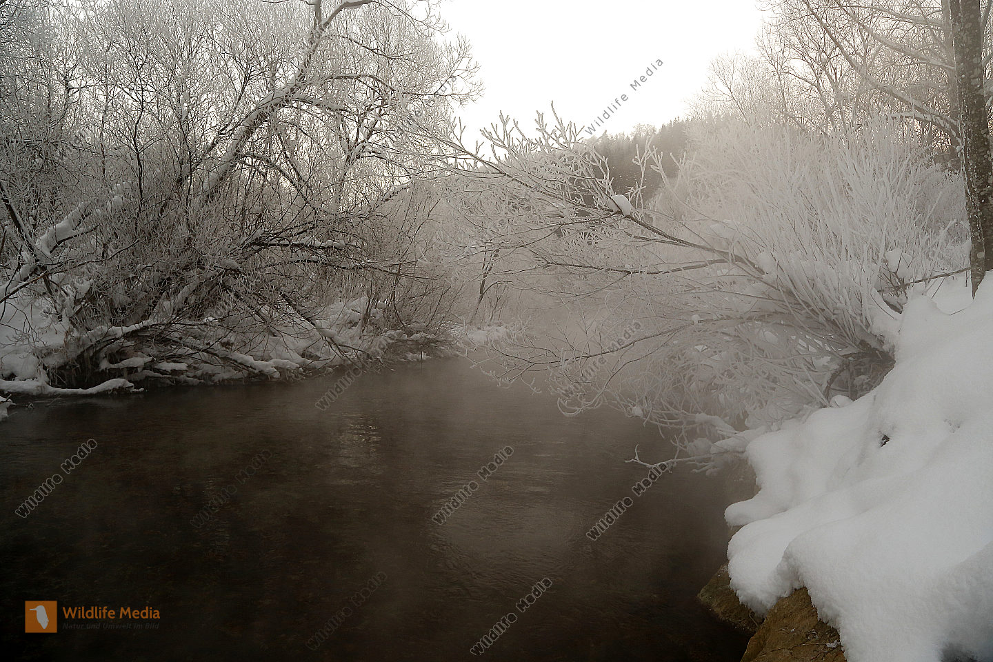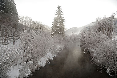 Dampfender Waldbach im Winter