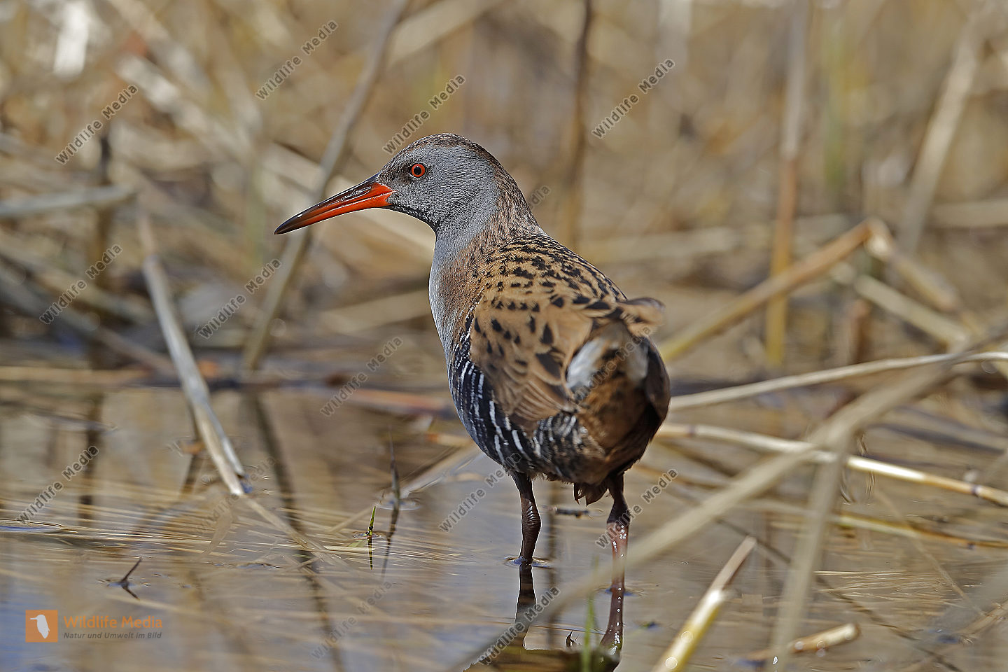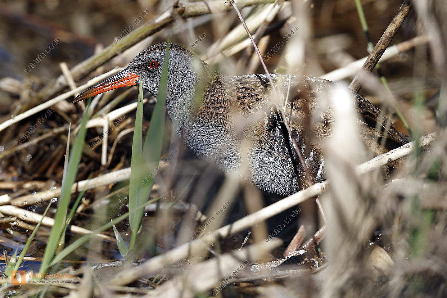 A shy water rail on riverside of Erbach by Beeden/Germany