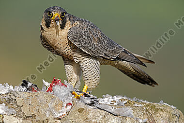 Porträt eines Wanderfalken aufgenommen im Wildpark Potzberg.