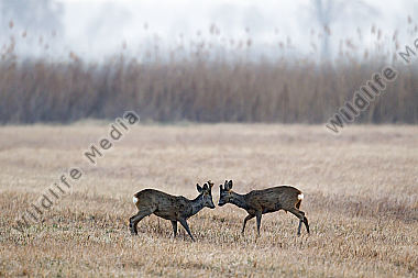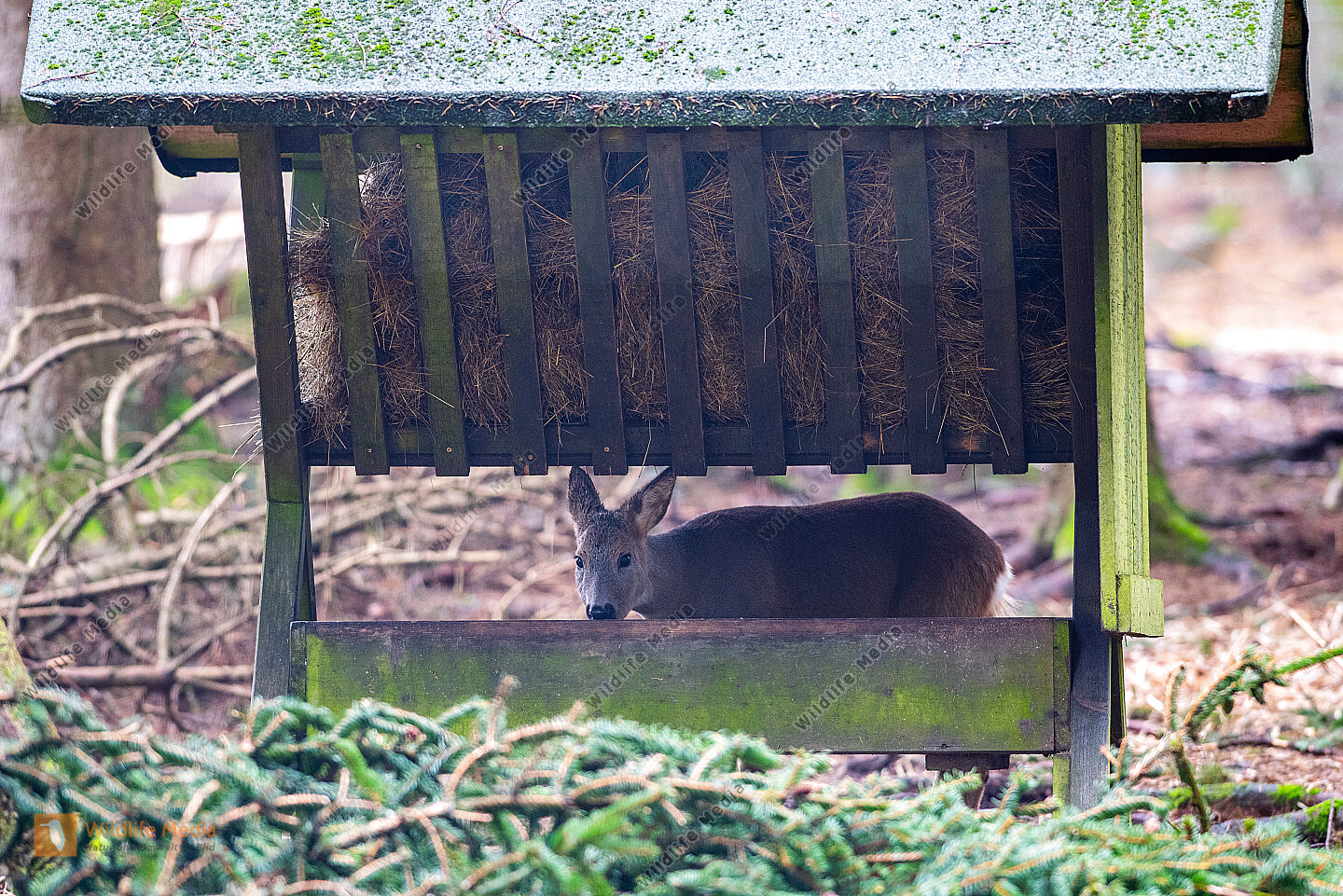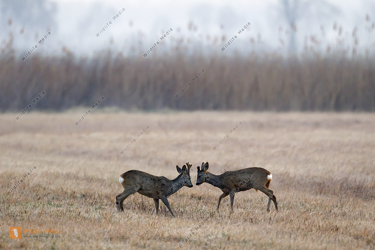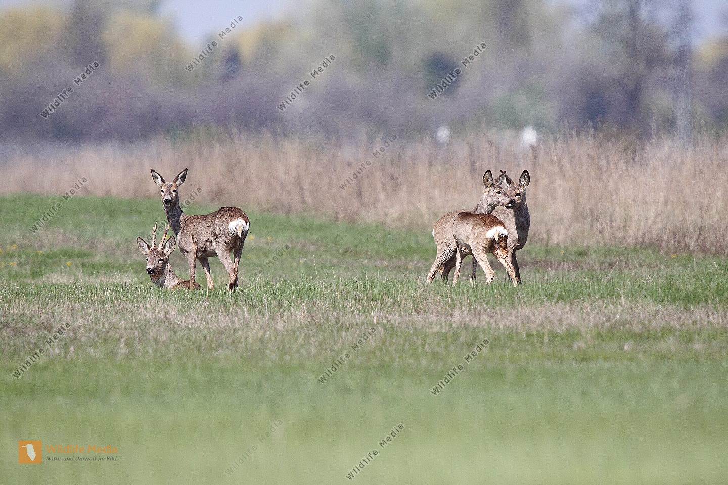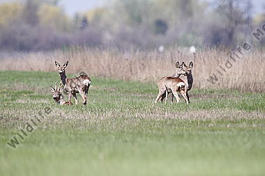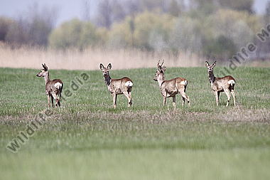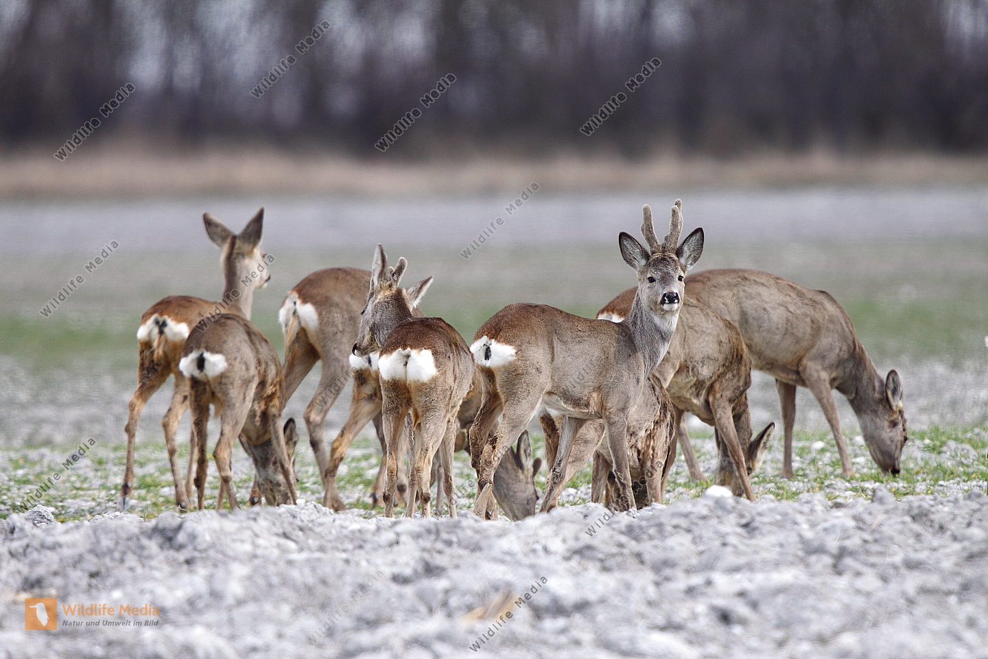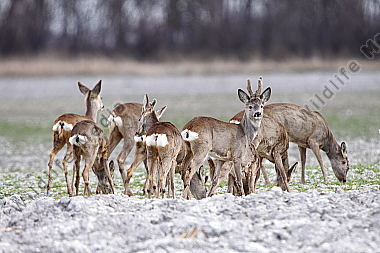 Reh Capreolus capreolus Rudel im Wimter auf Feld