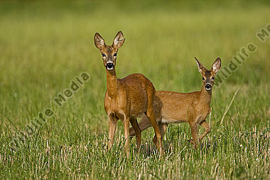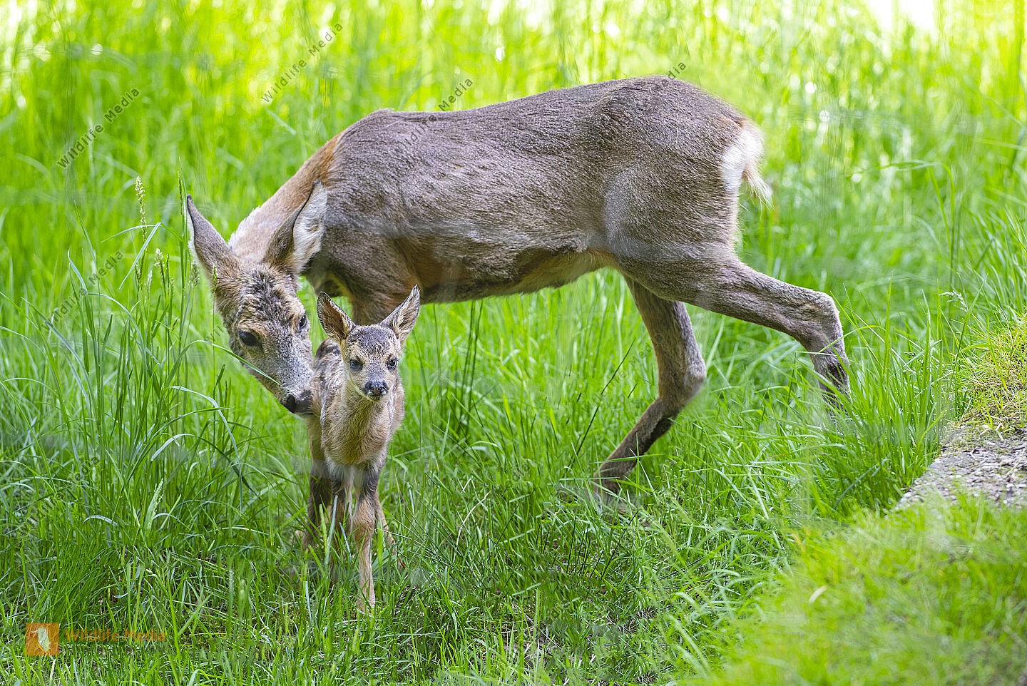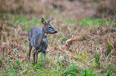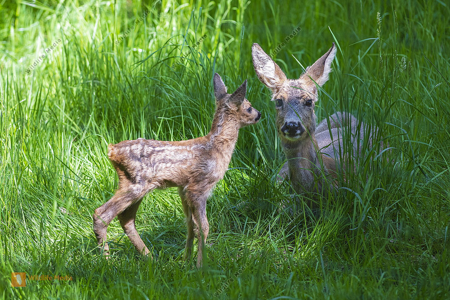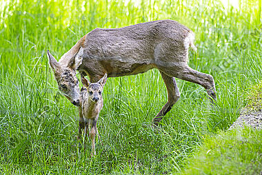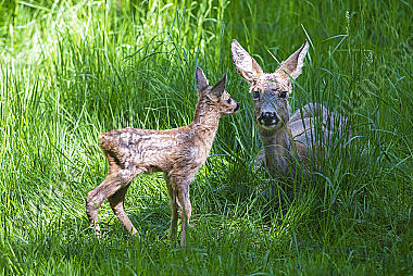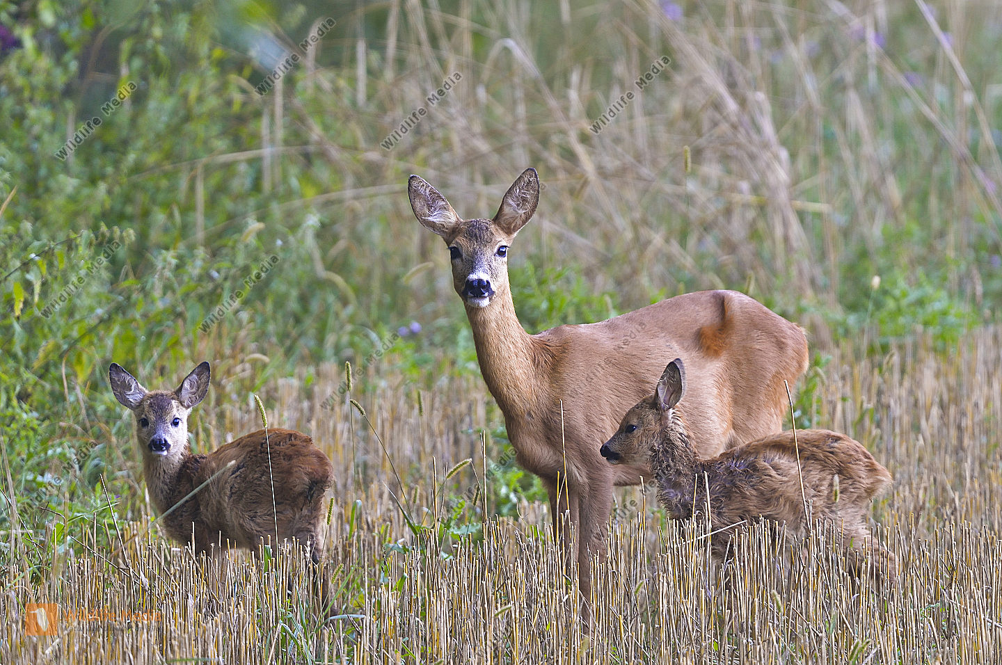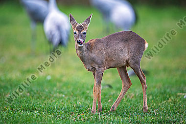 Weibliches Reh Capreolus capreolus mit Kranichen