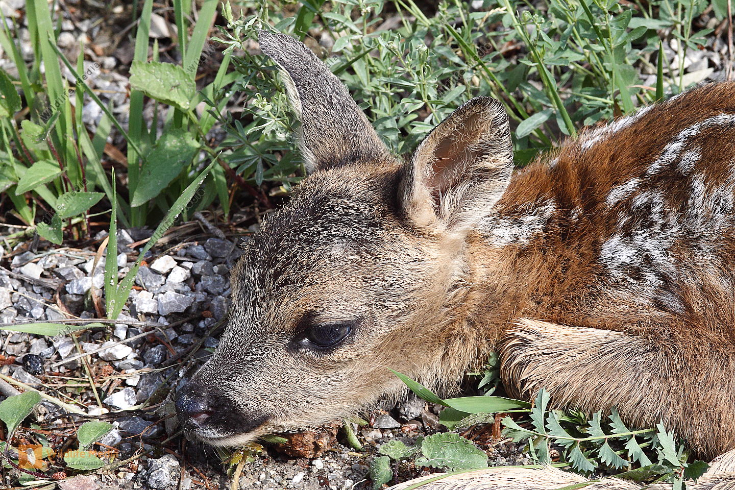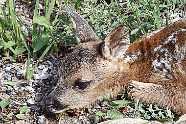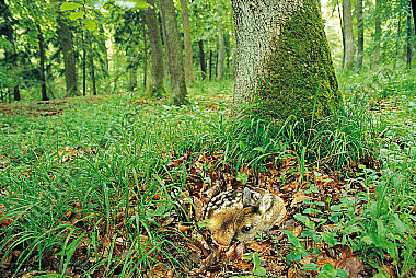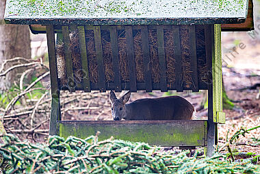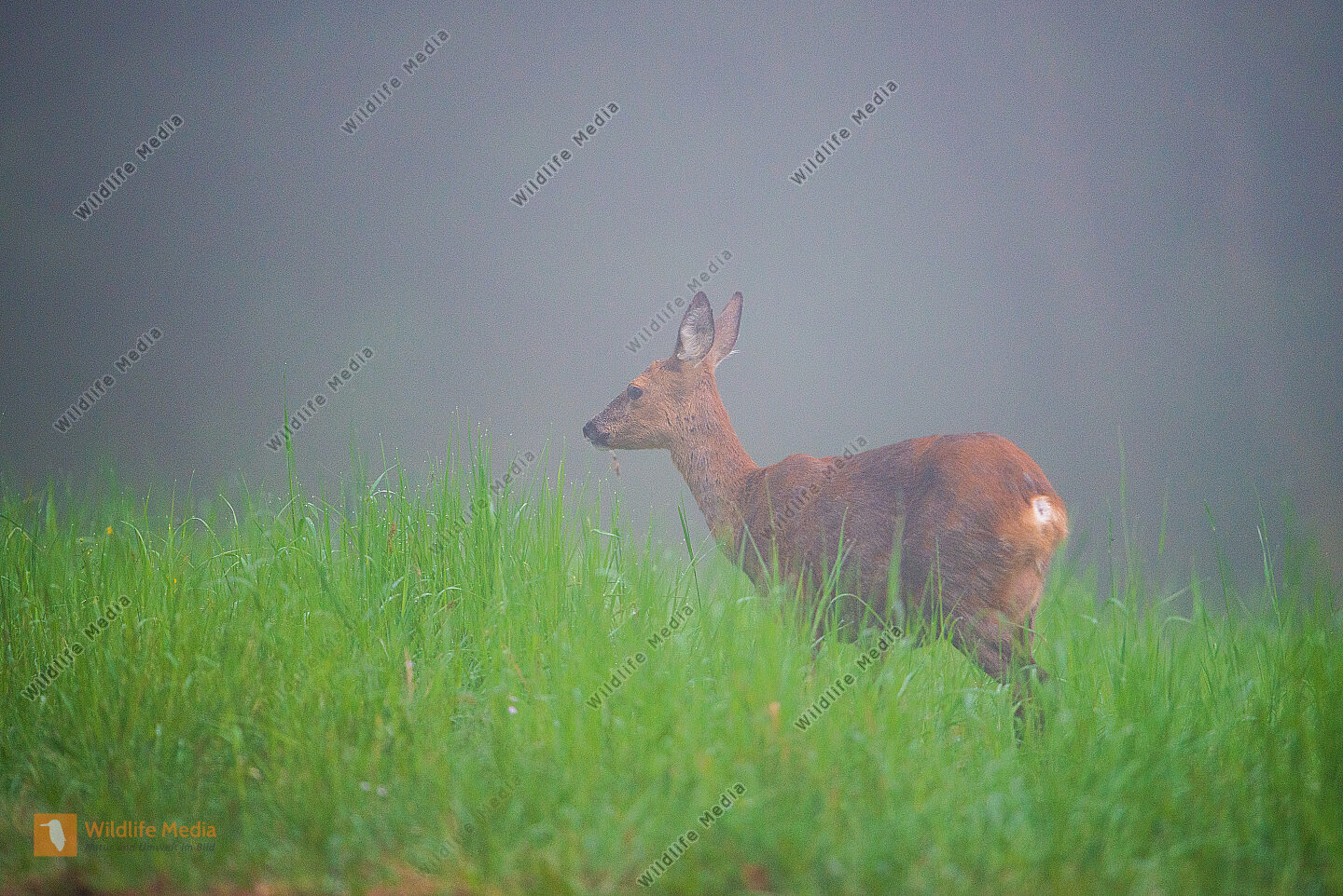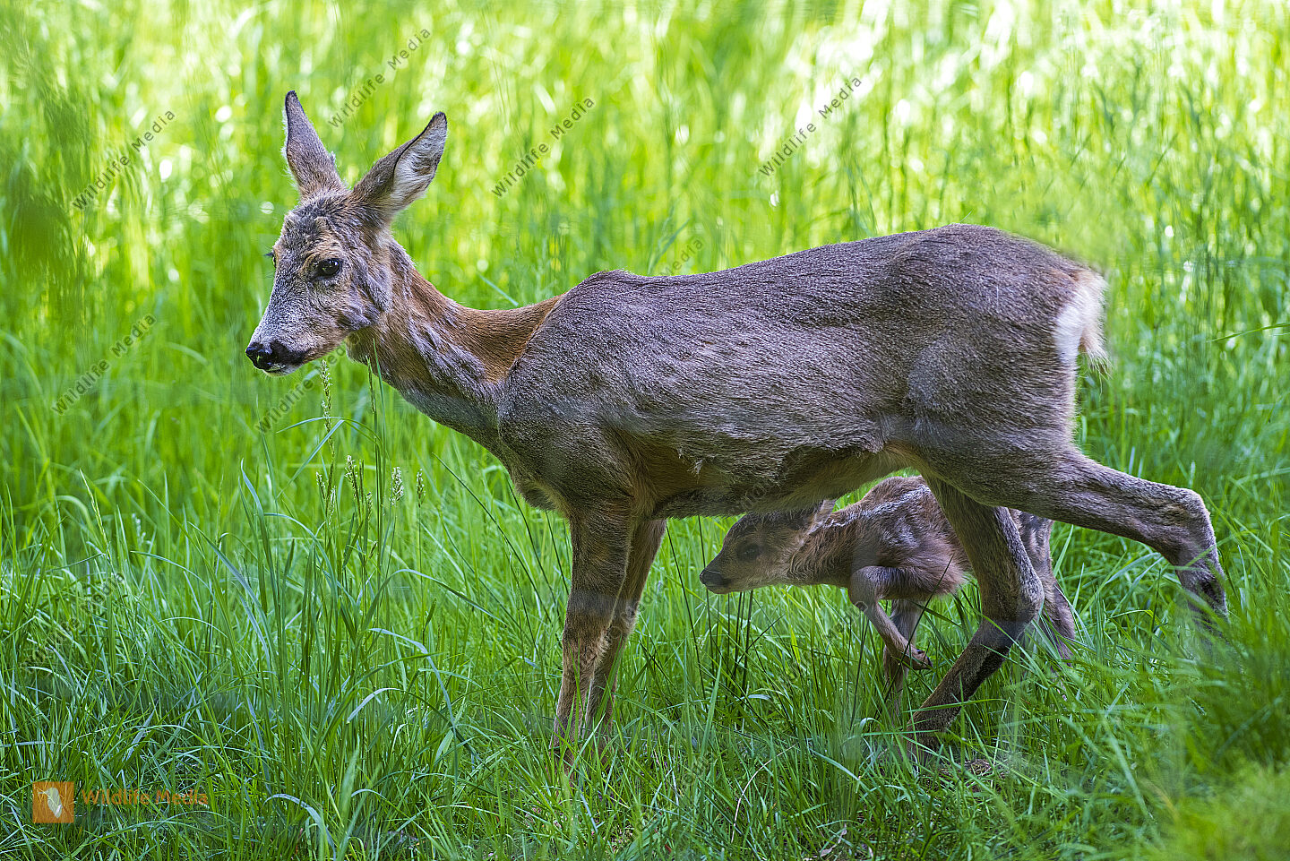 Weibliches Reh Capreolus capreolus mit Kranichen