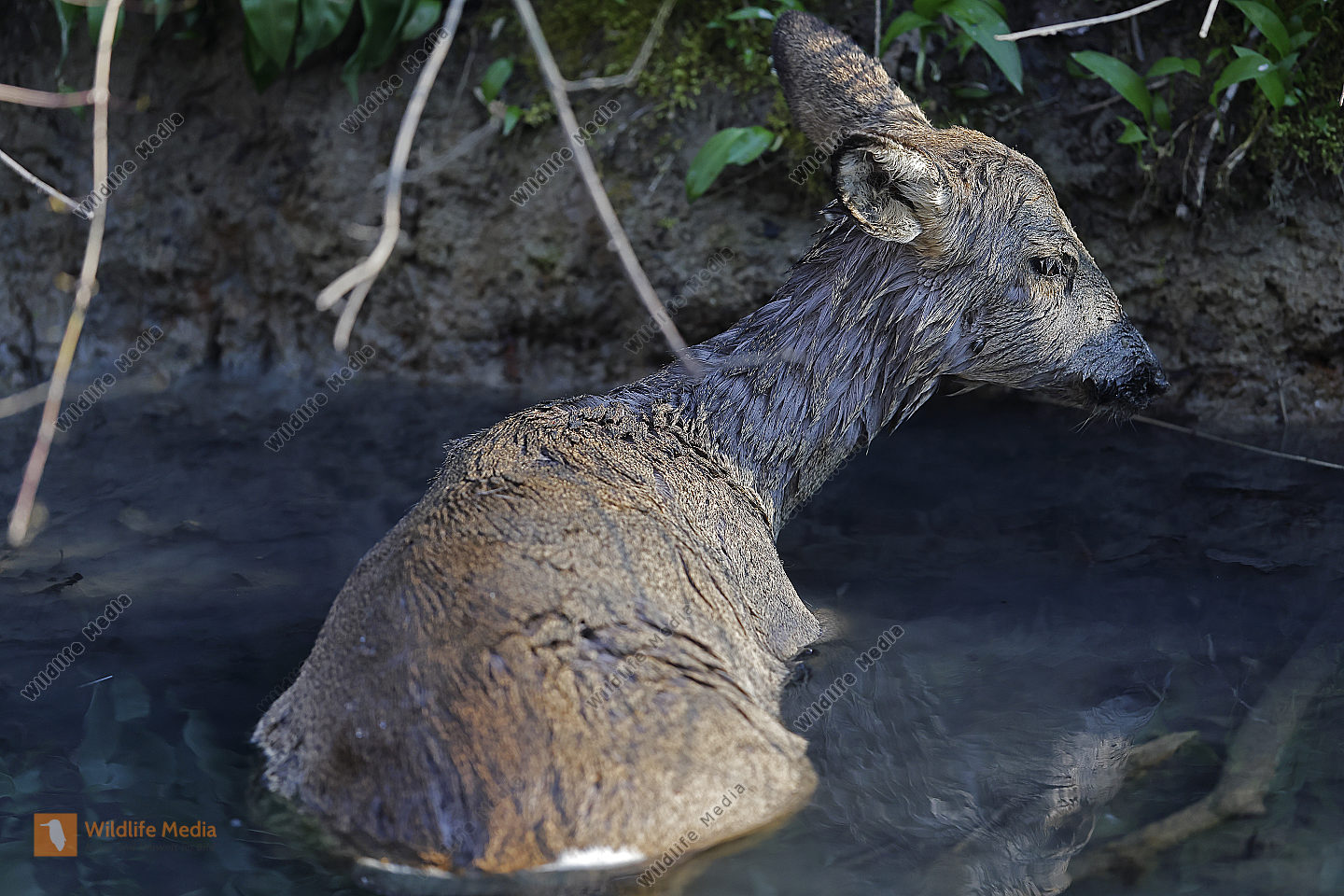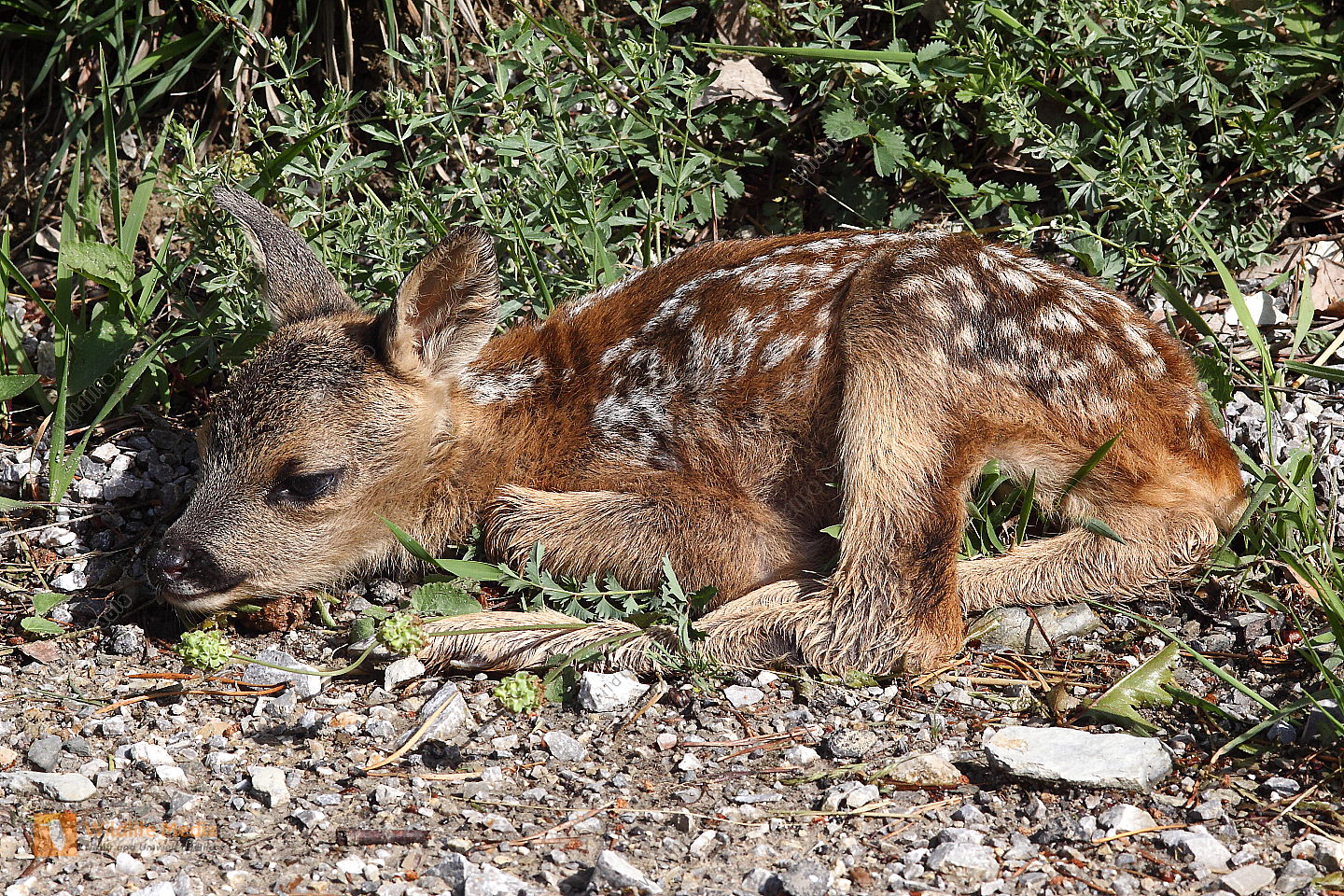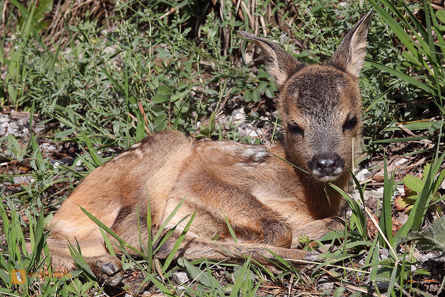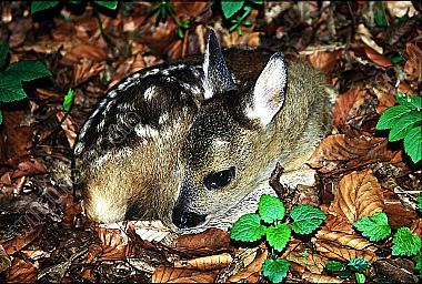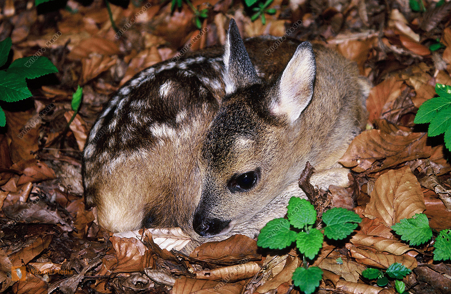 Weibliches Reh Capreolus capreolus mit Kranichen
