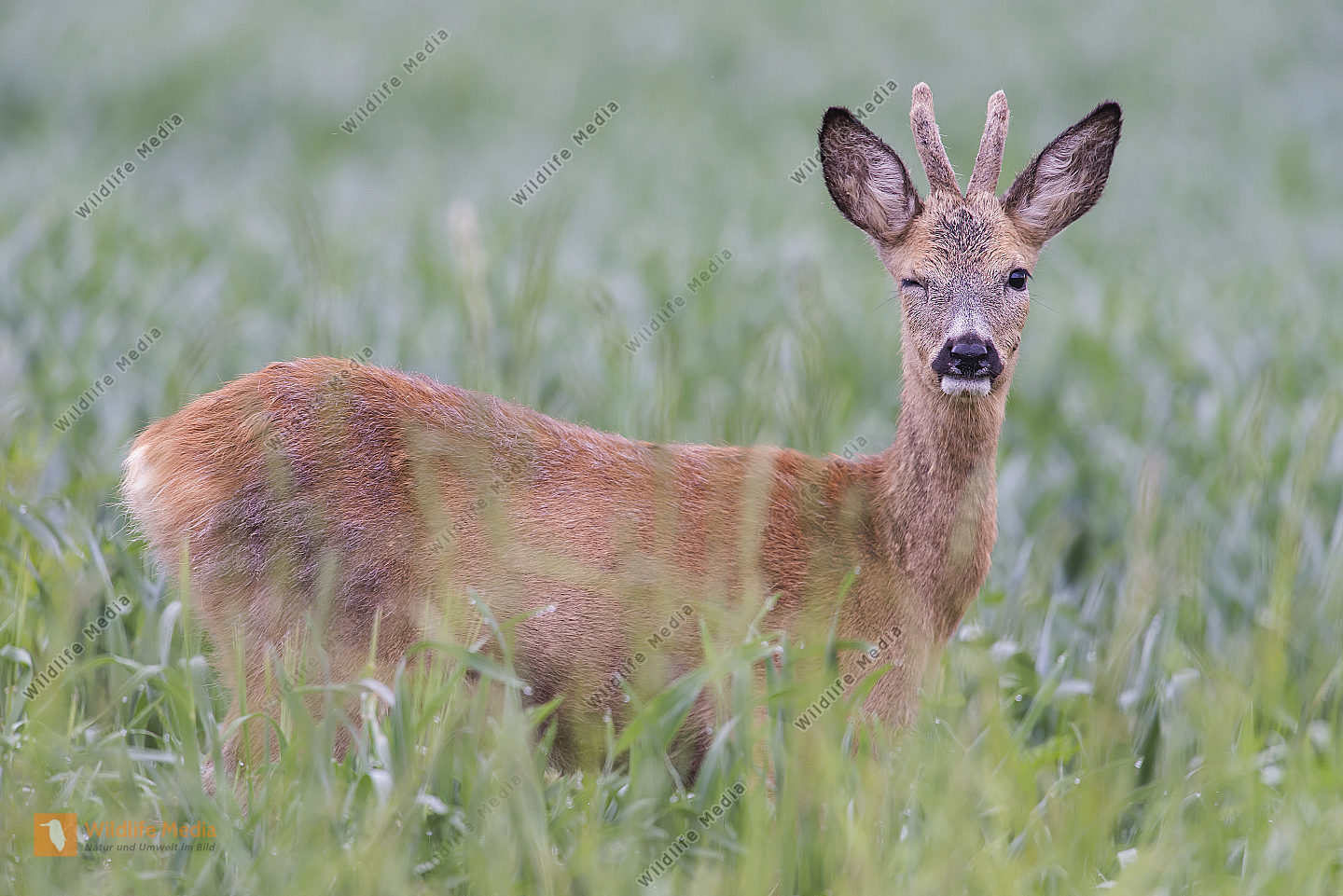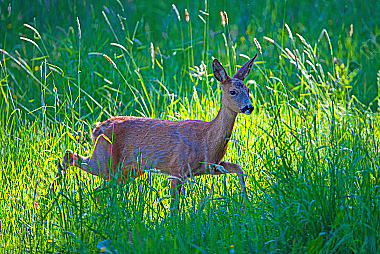 Sichernder Rehbock Capreolus capreolus im Sommer