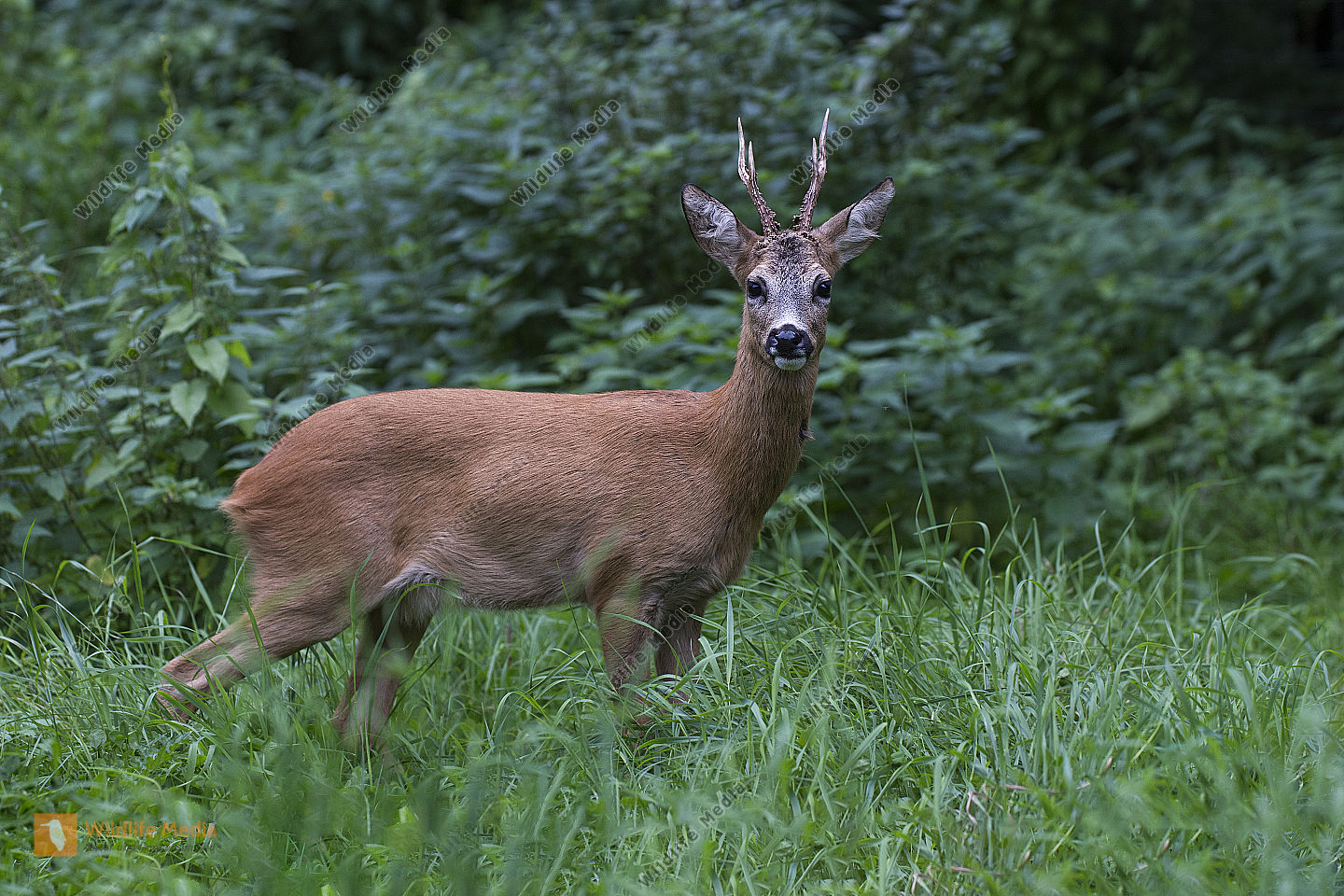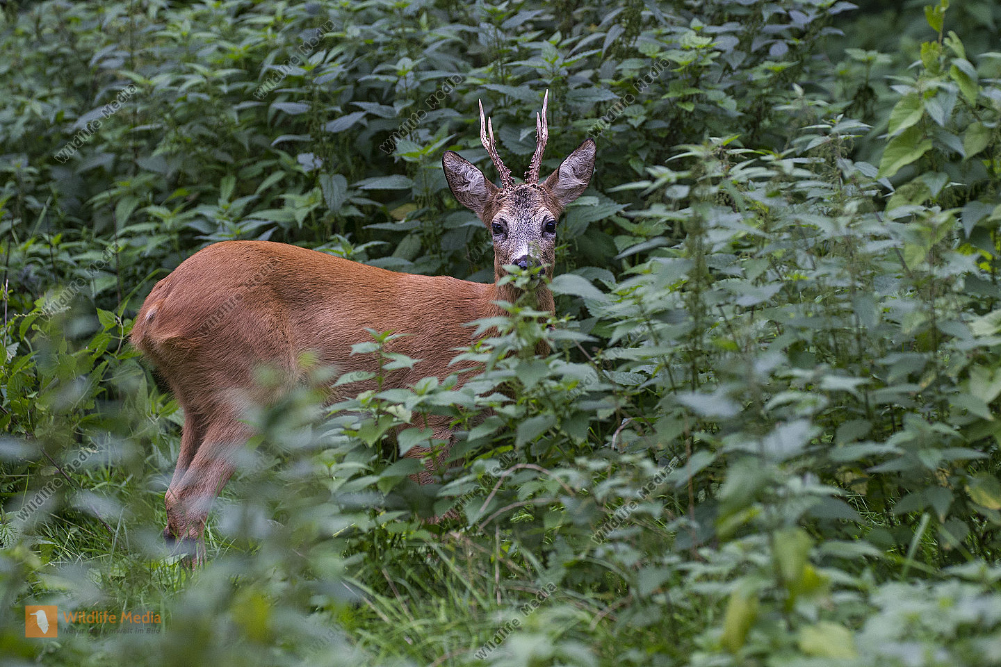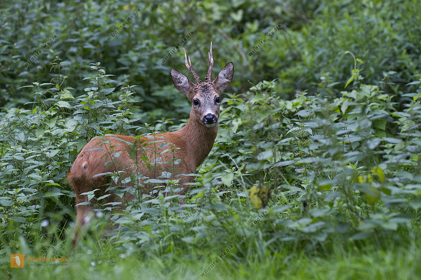 Sichernder Rehbock Capreolus capreolus im Sommer