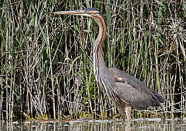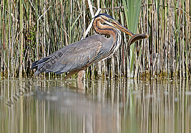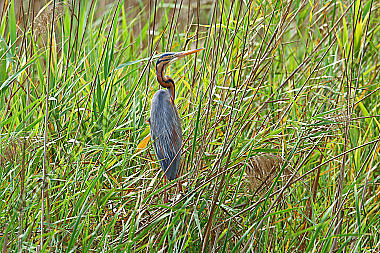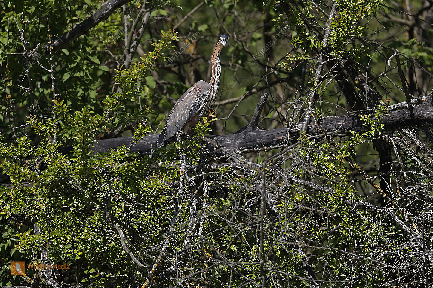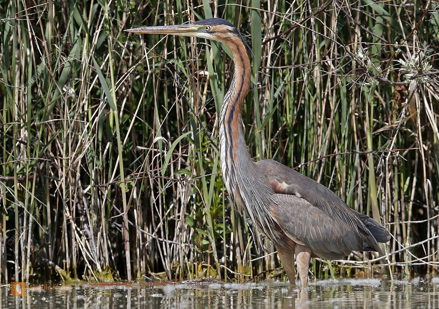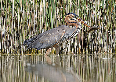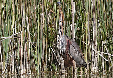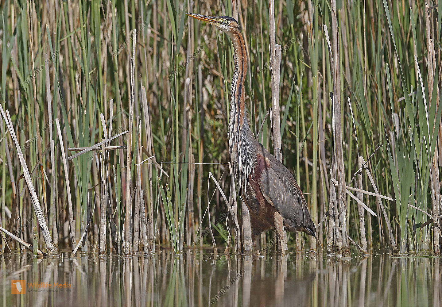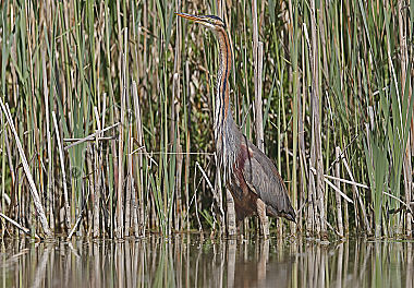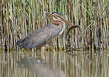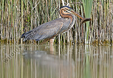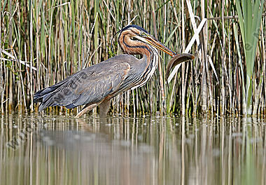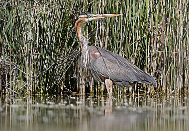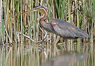 Ein Graureiher auf der Suche nach Nahrung im Beeder Bruch
