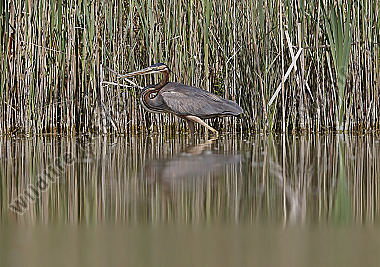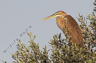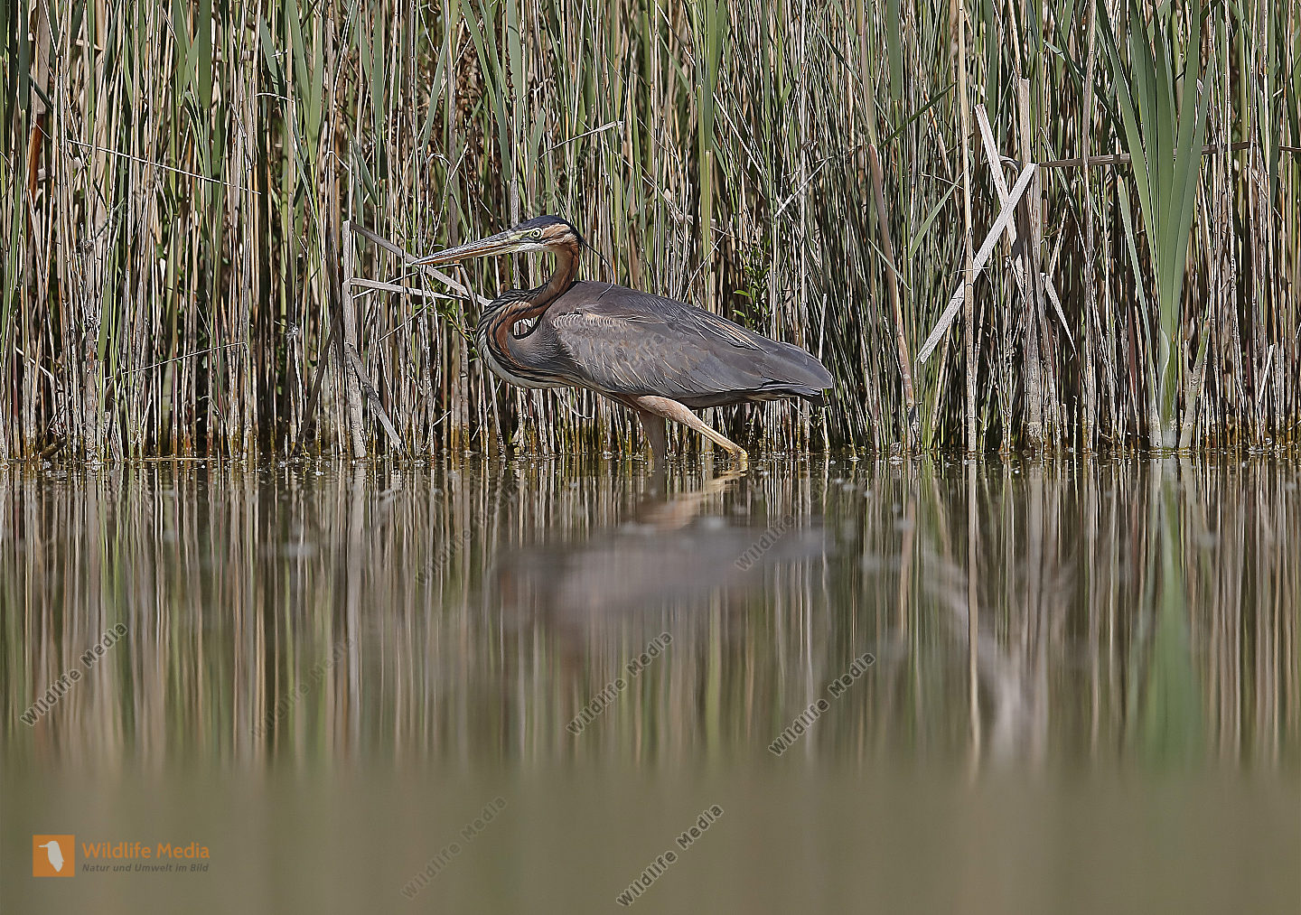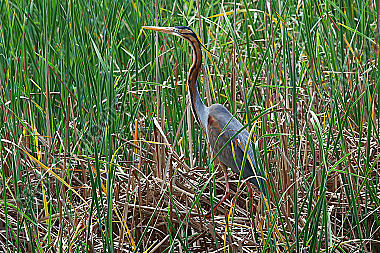 Purpurreiher im Schilf der Wagbachniederung bei Waghaeusel in Baden-Wuerttemberg