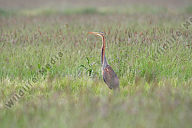 Purpurreiher im Schilf der Wagbachniederung bei Waghaeusel in Baden-Wuerttemberg