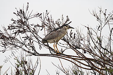 Ein Graureiher auf der Suche nach Nahrung im Beeder Bruch