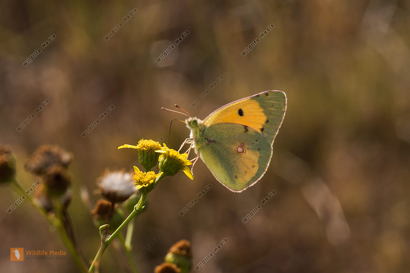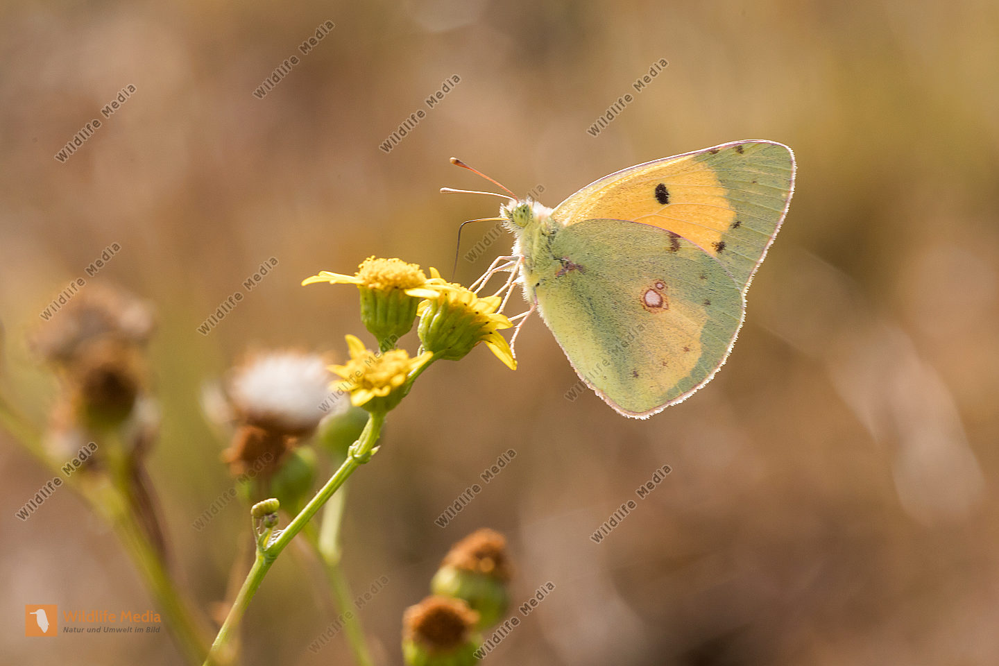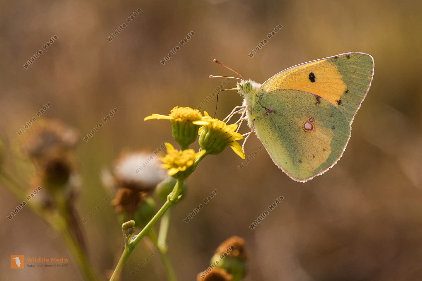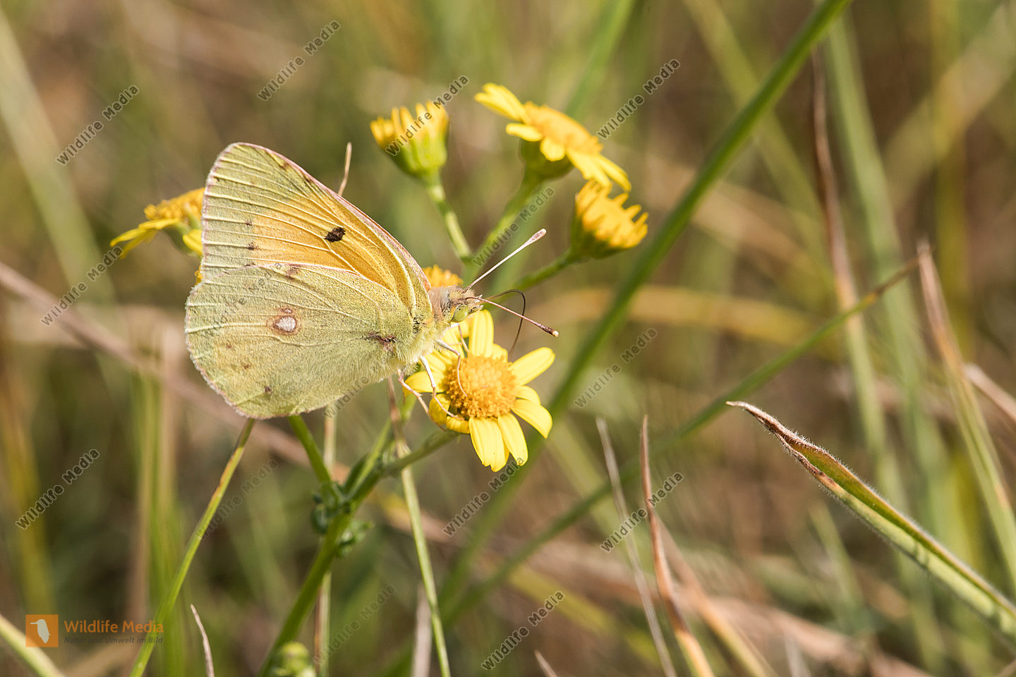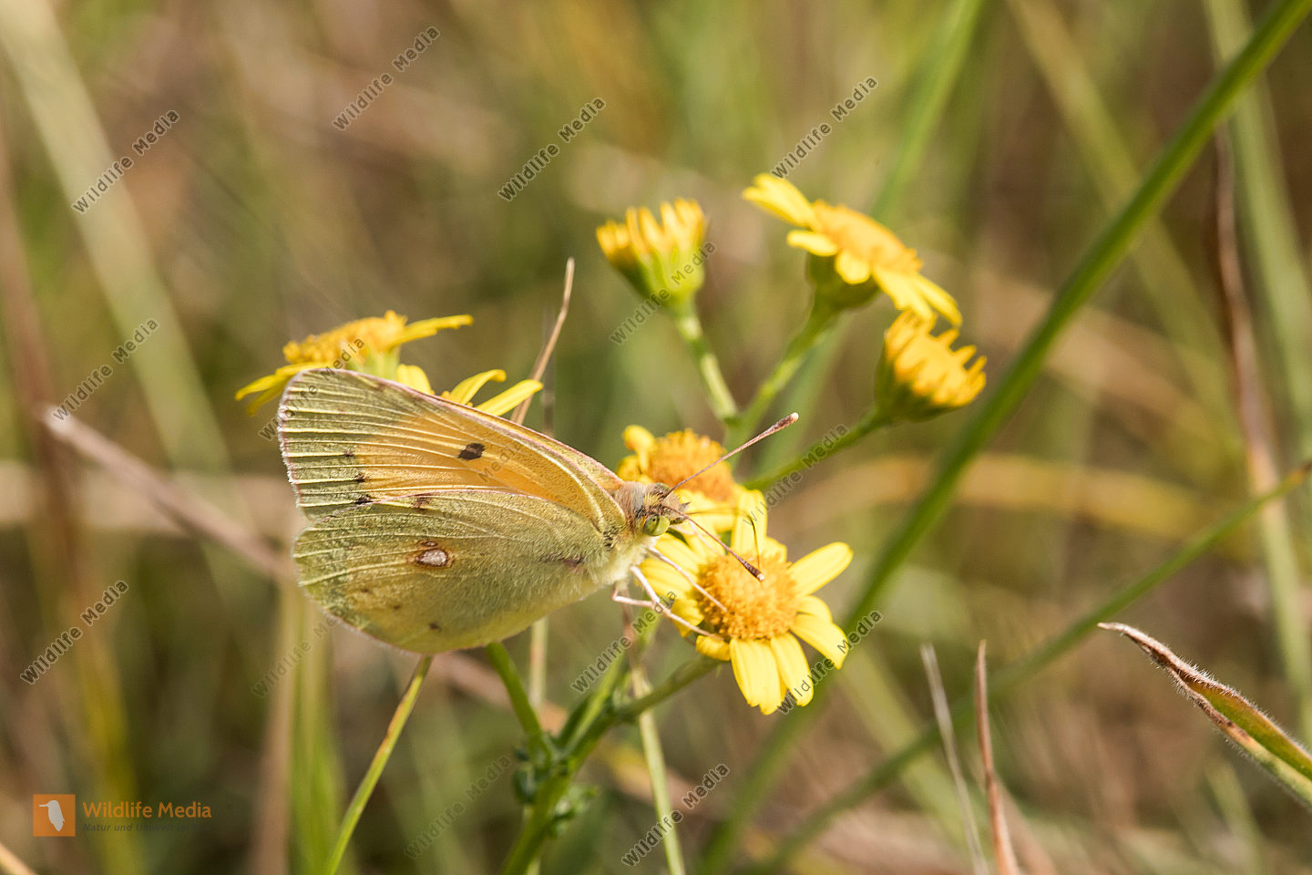 Ein Wander-Gelbling saugt an einer gelben Blüte