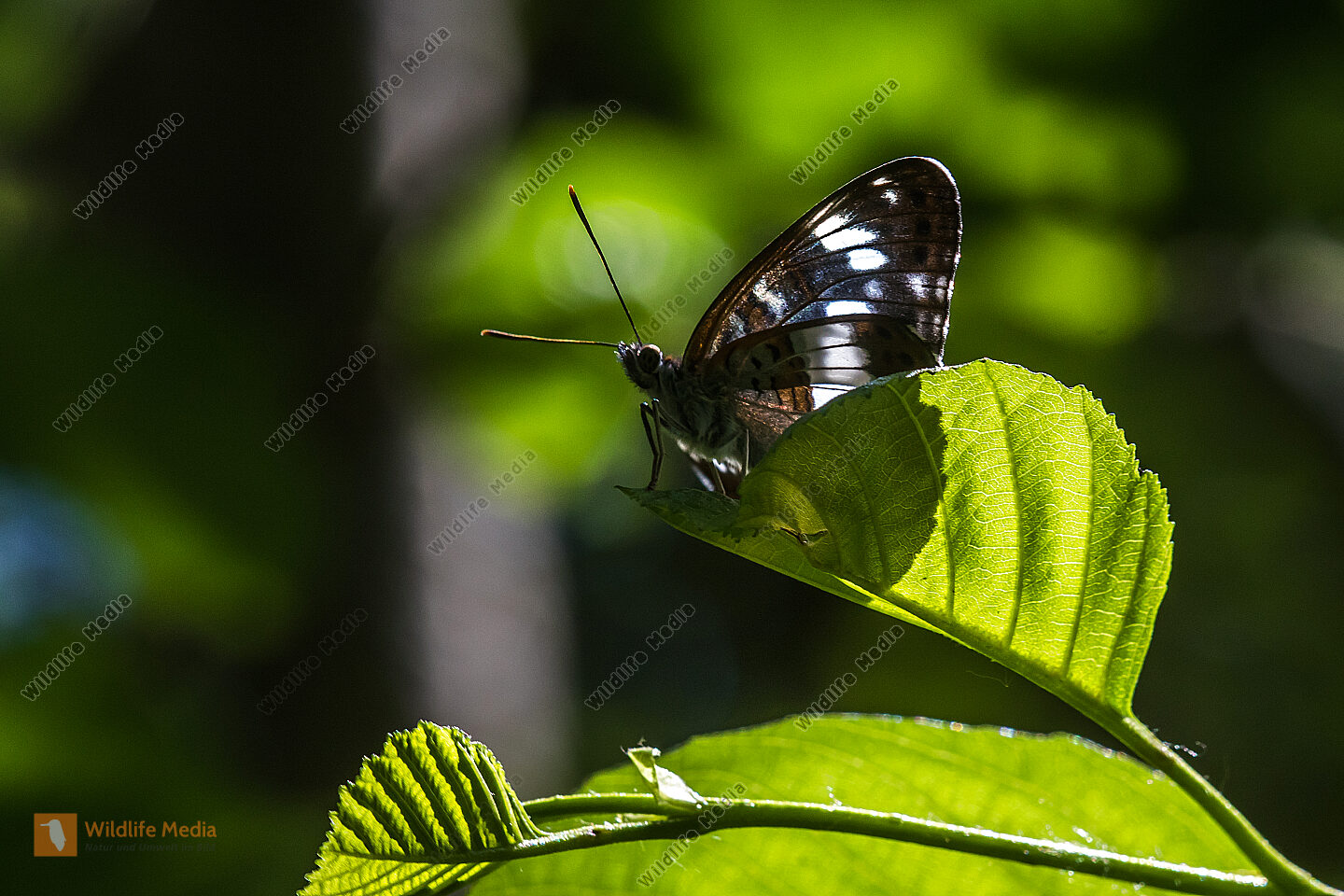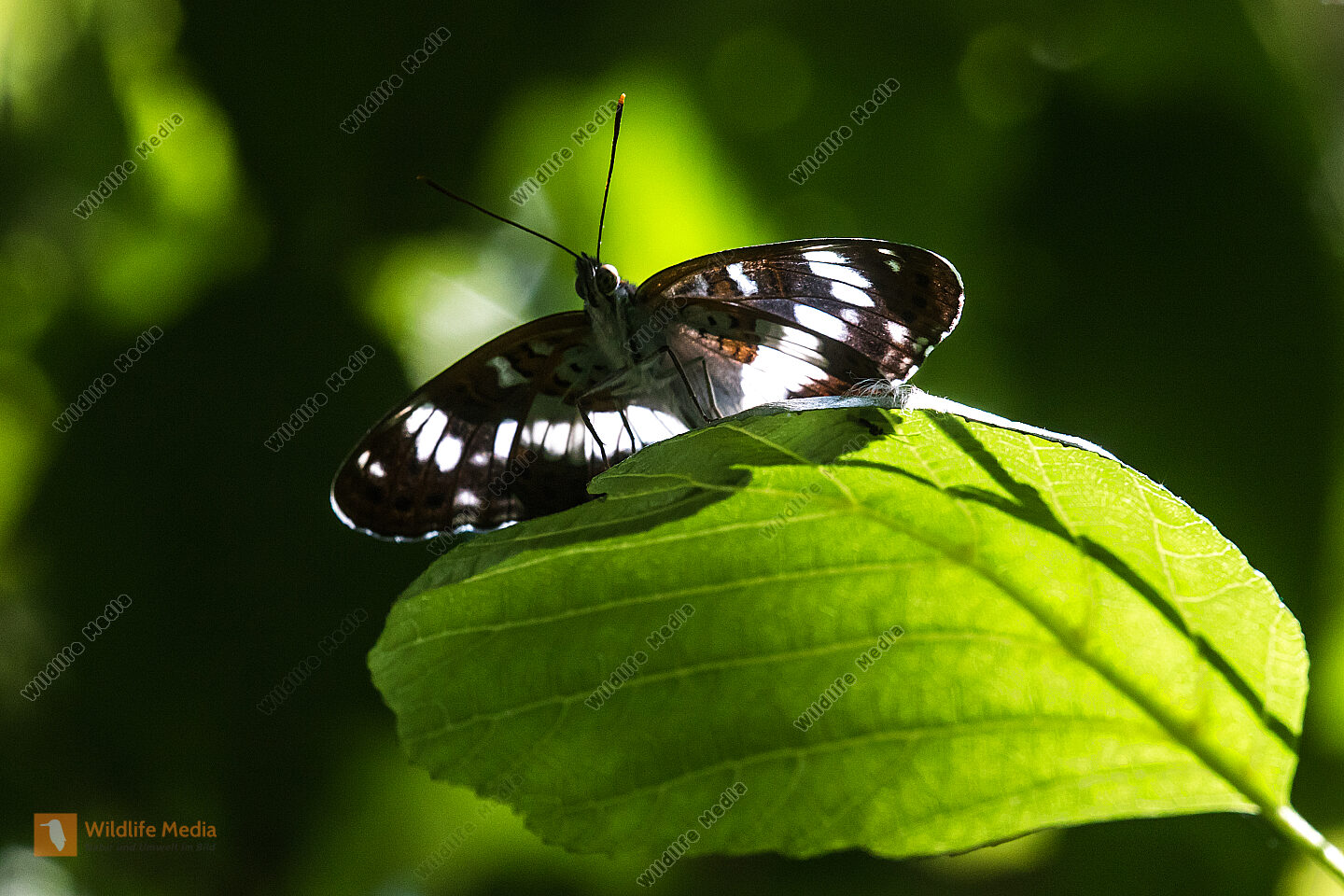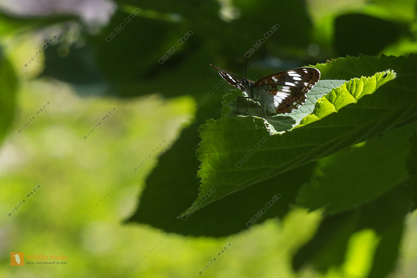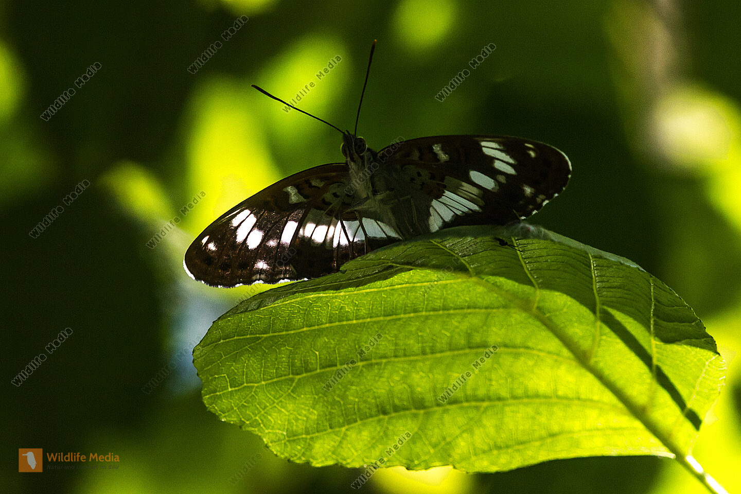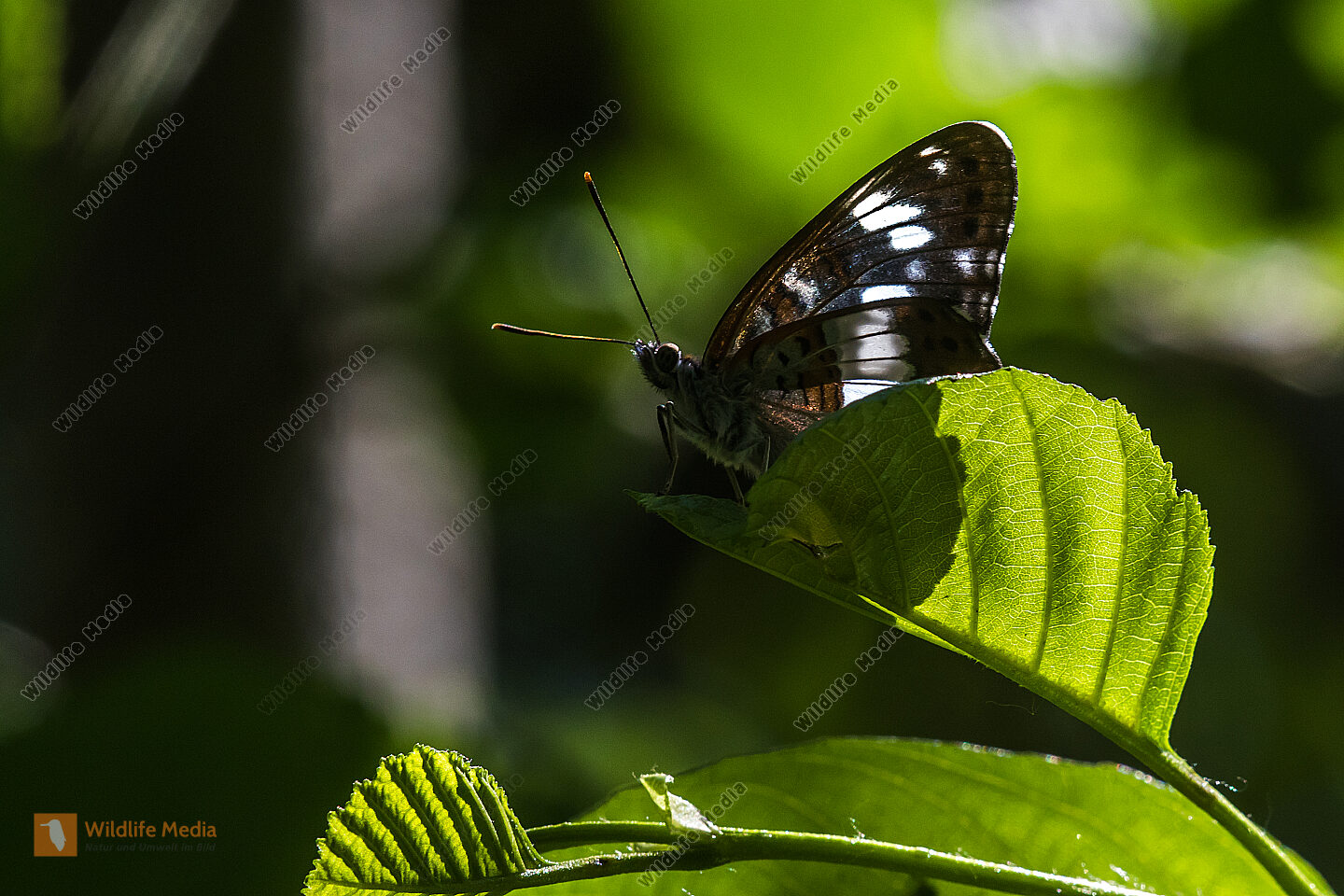 Ein Weißer Waldportier in Ruhestellung. Blick auf die Flügelunterseite.