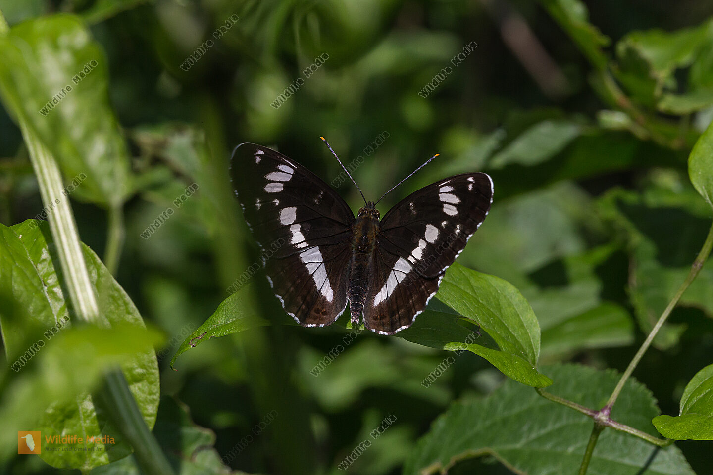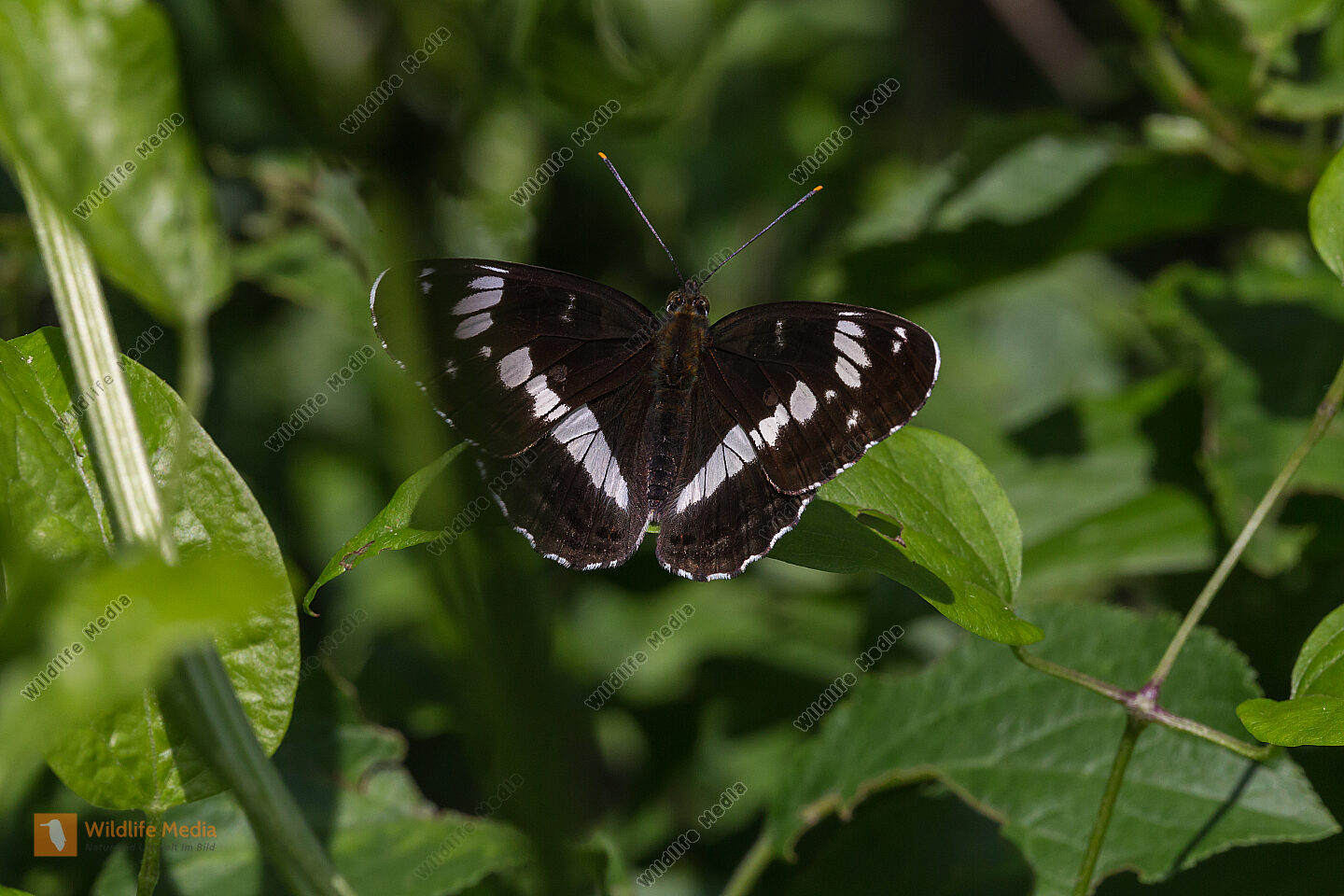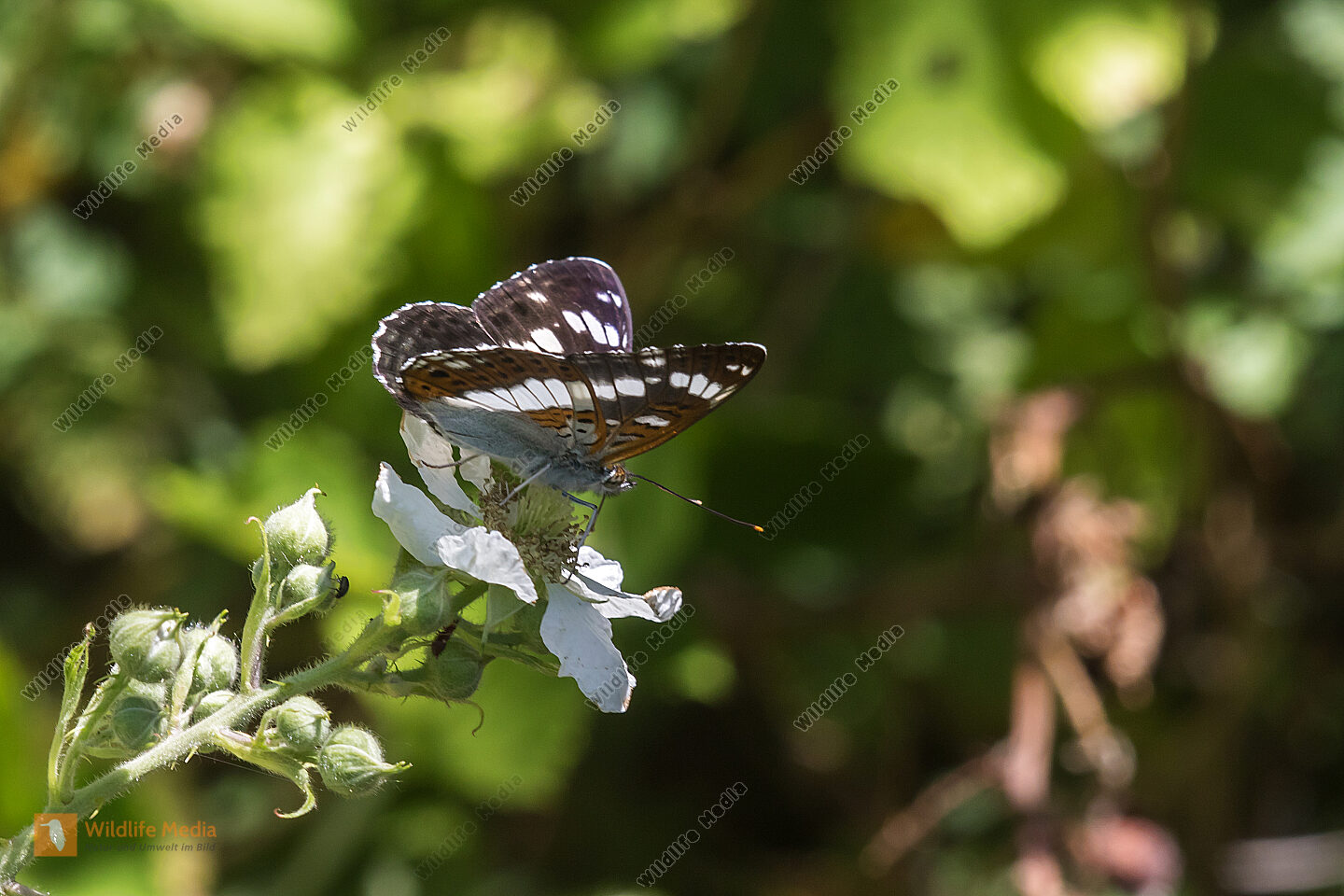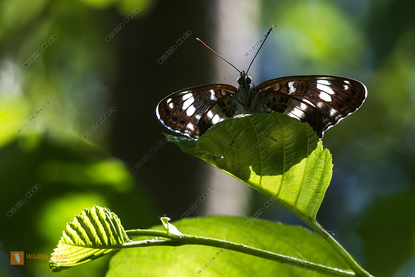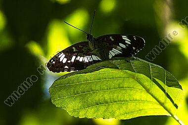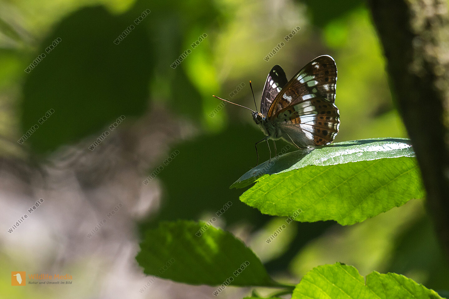 Ein Weißer Waldportier in Ruhestellung. Blick auf die Flügelunterseite.