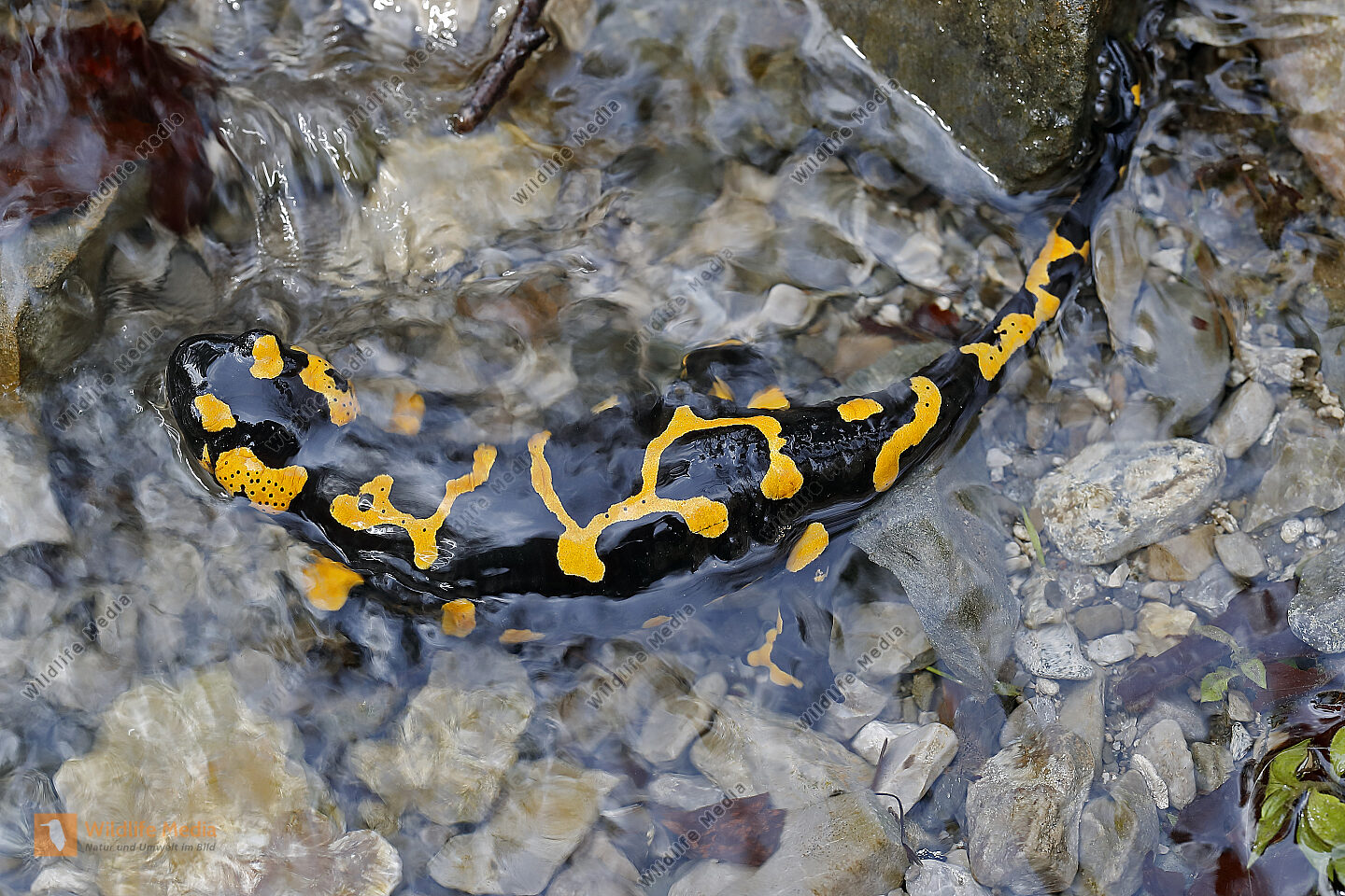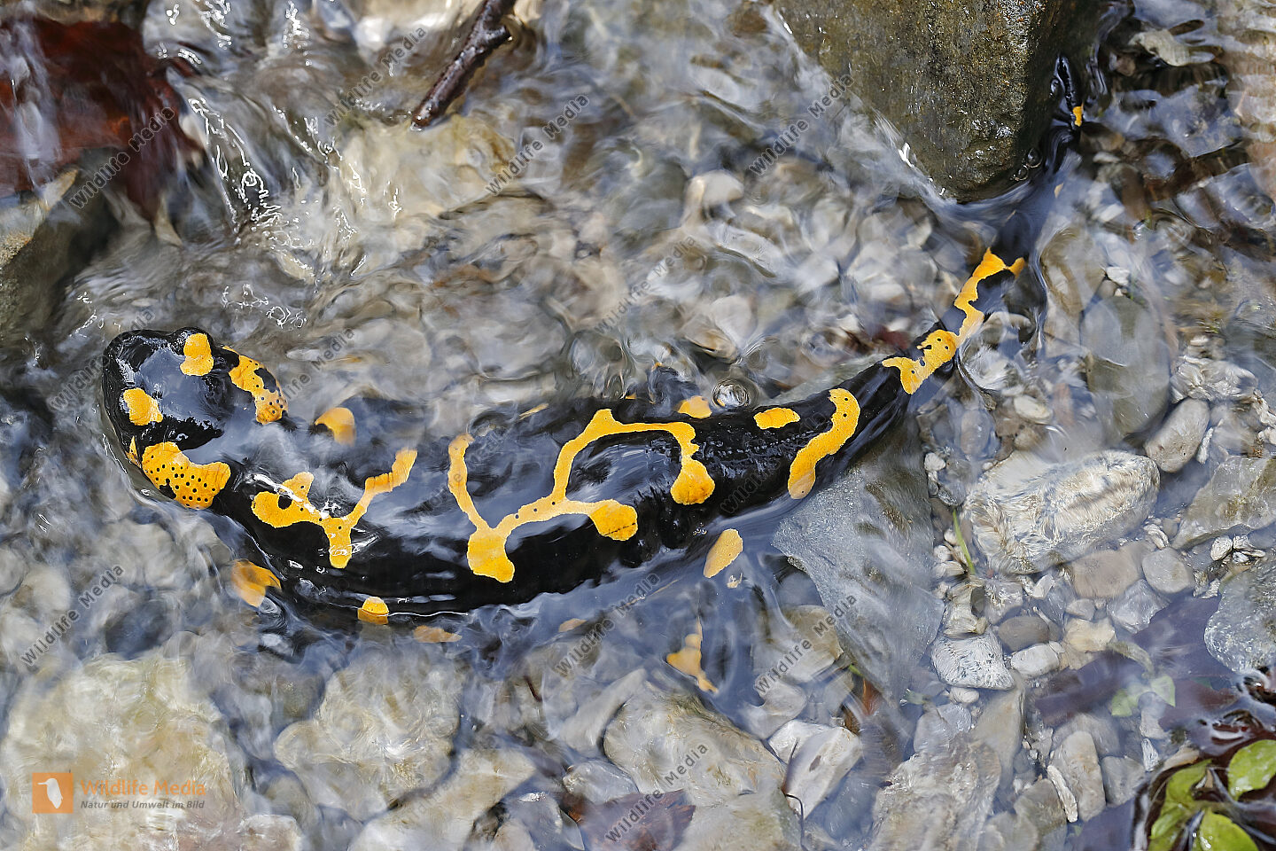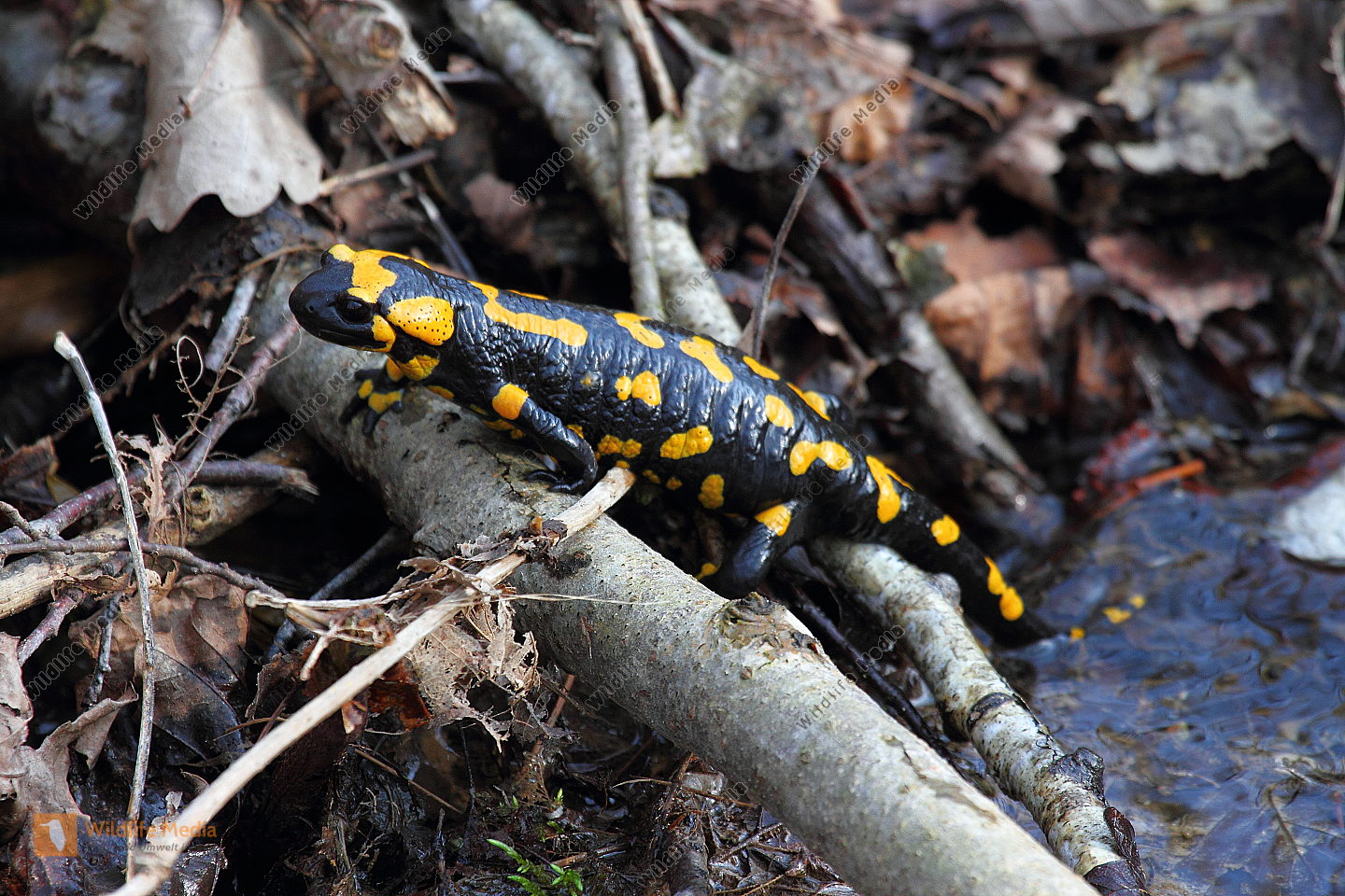 Feuersalamander an einem Bachlauf