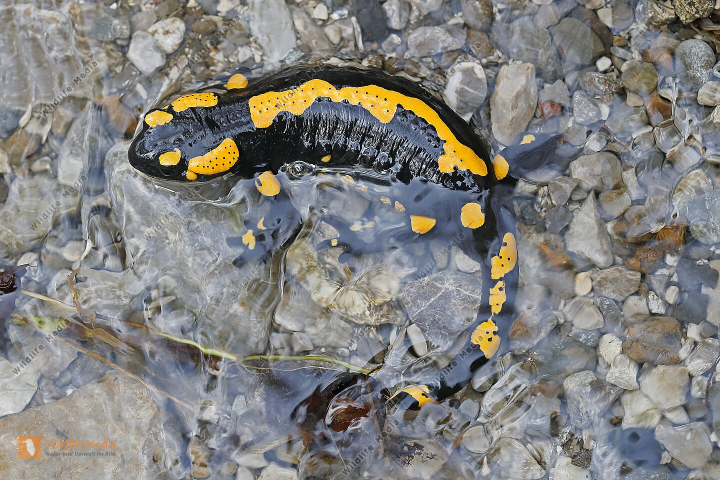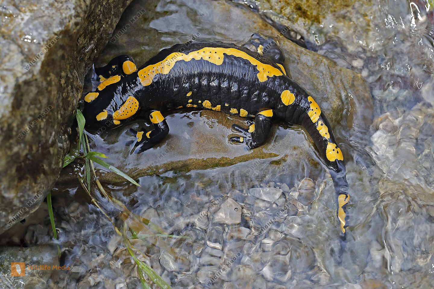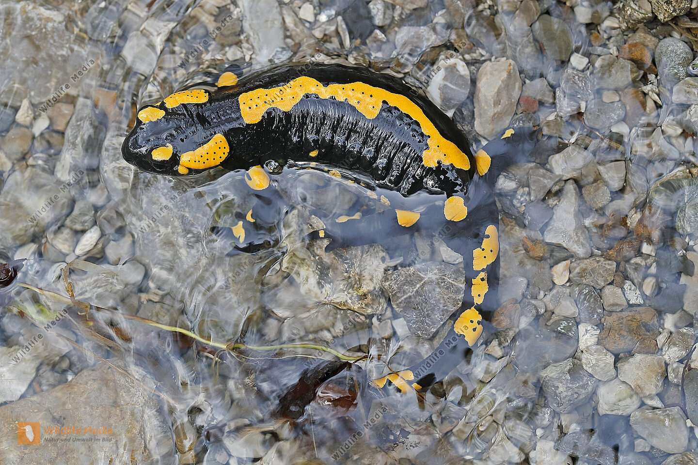 Feuersalamander an einem Bachlauf