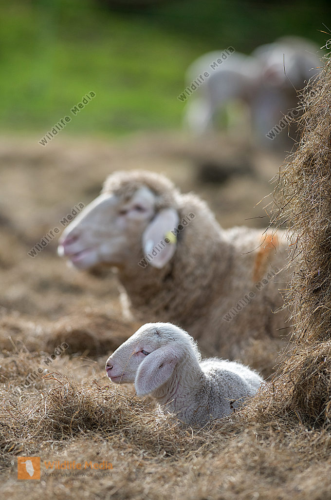 Alpines Steinschafe Muttertiere Ovis aries im Stall