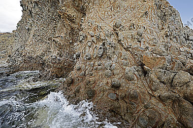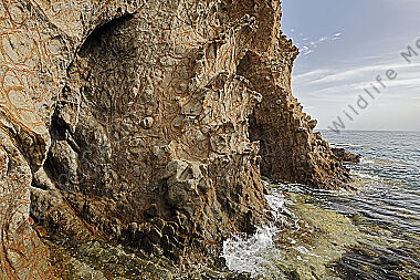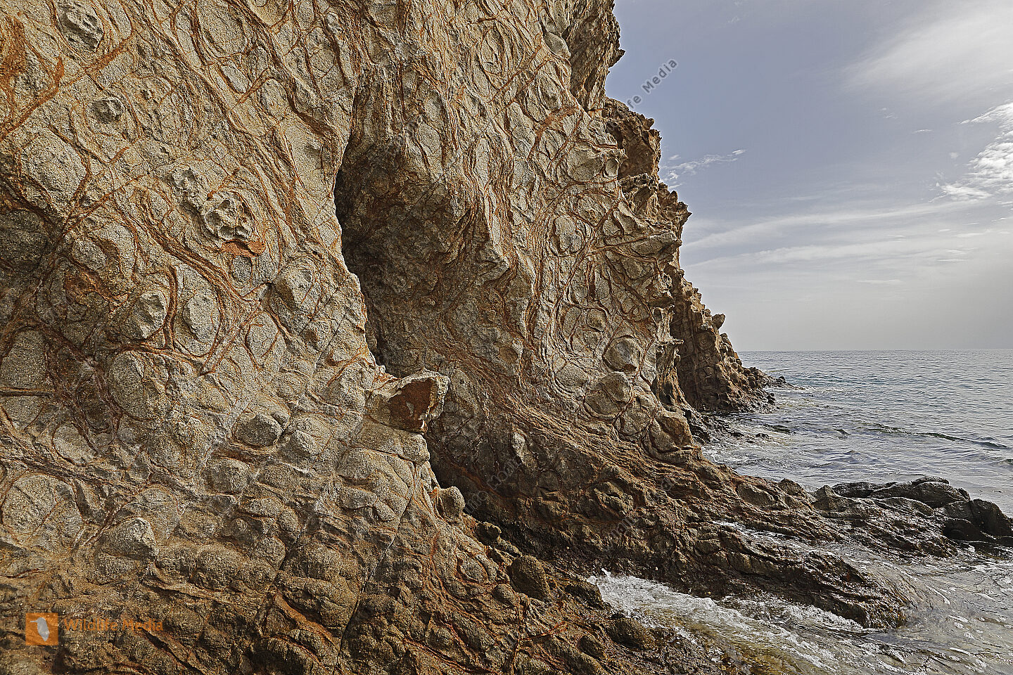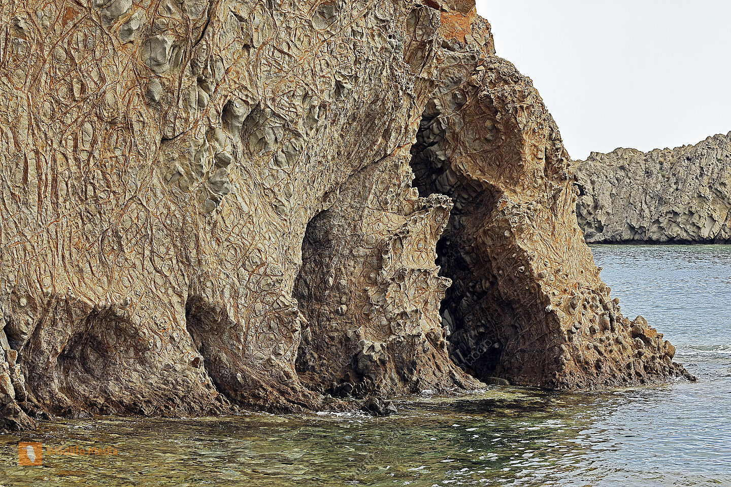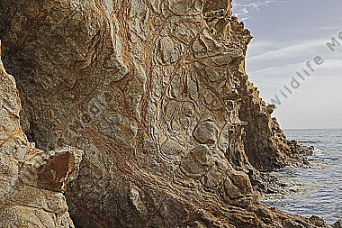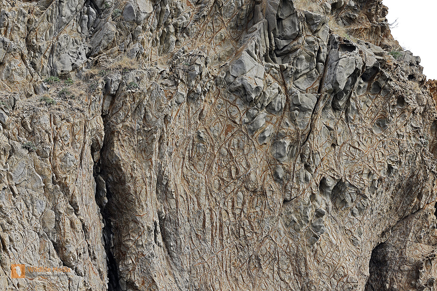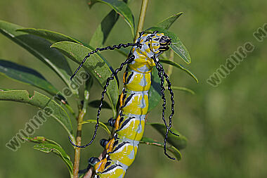 Graue gehörnte Heidschnucken Bock Ovis aries im Stall