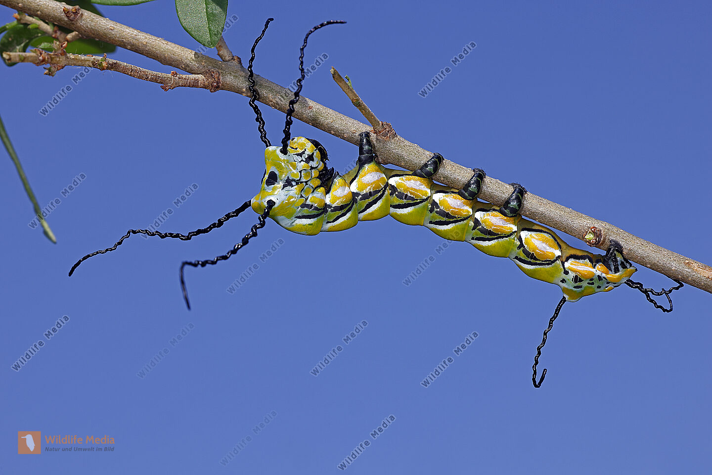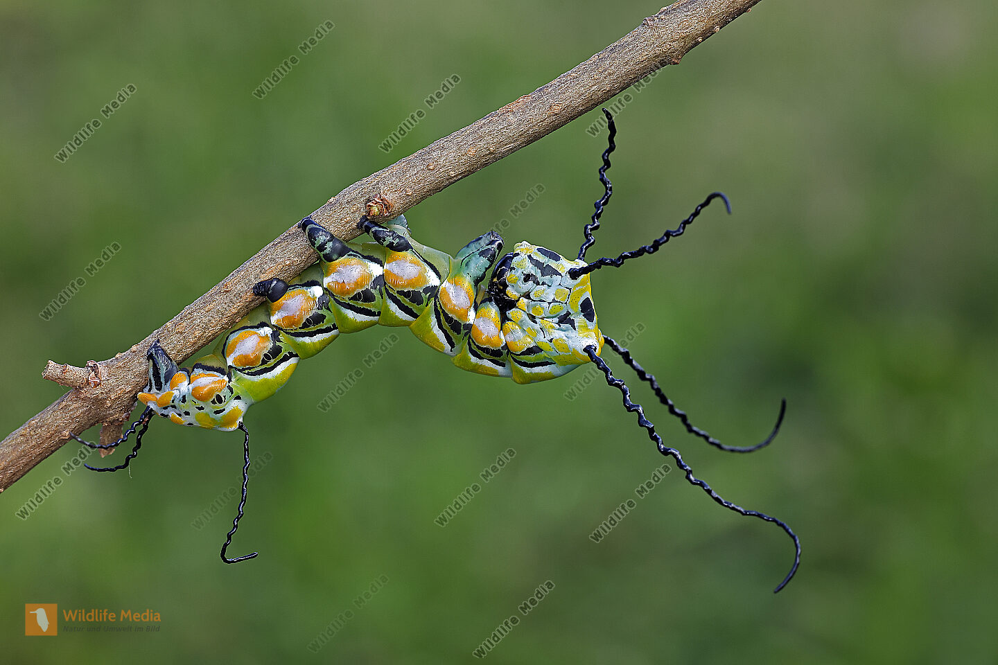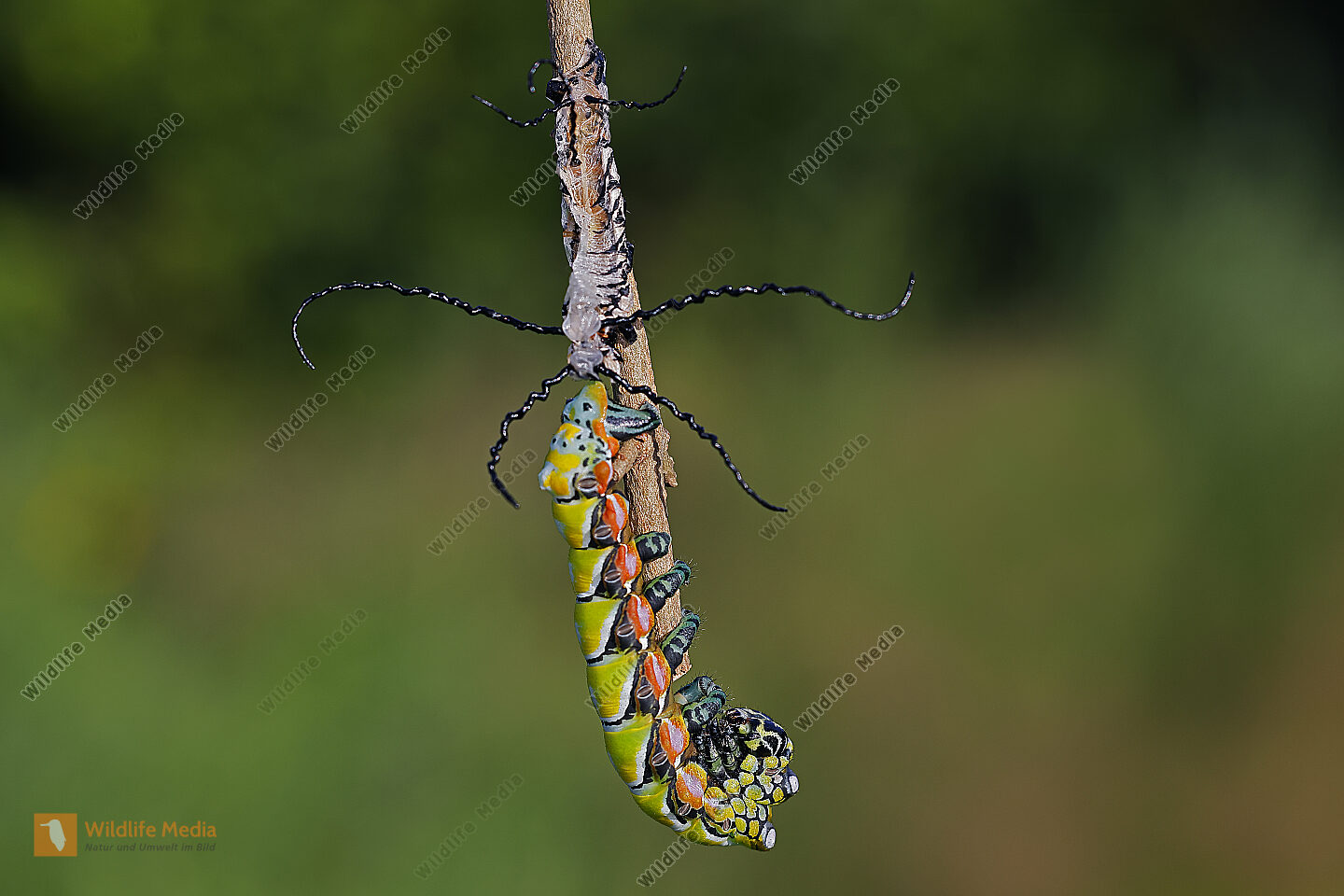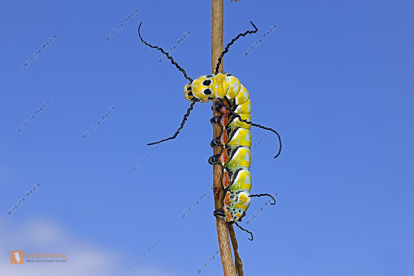 Weiße gehörnte Heidschnucken Böcke Ovis aries im Stall