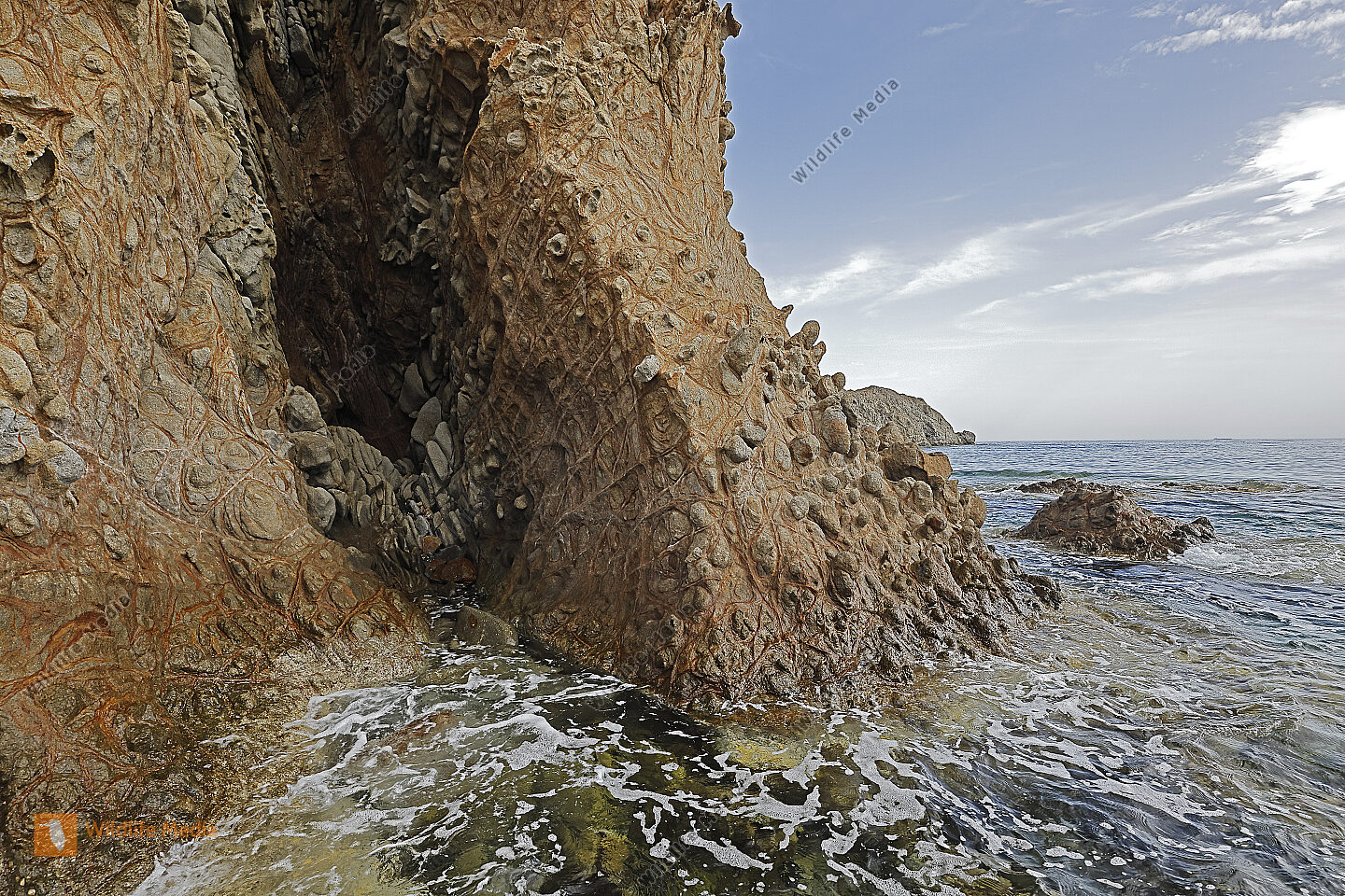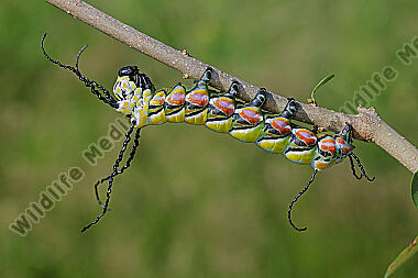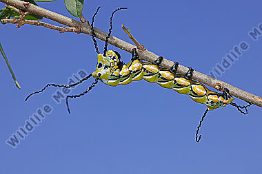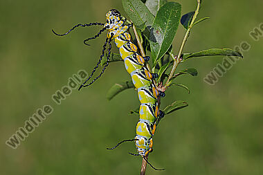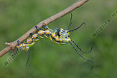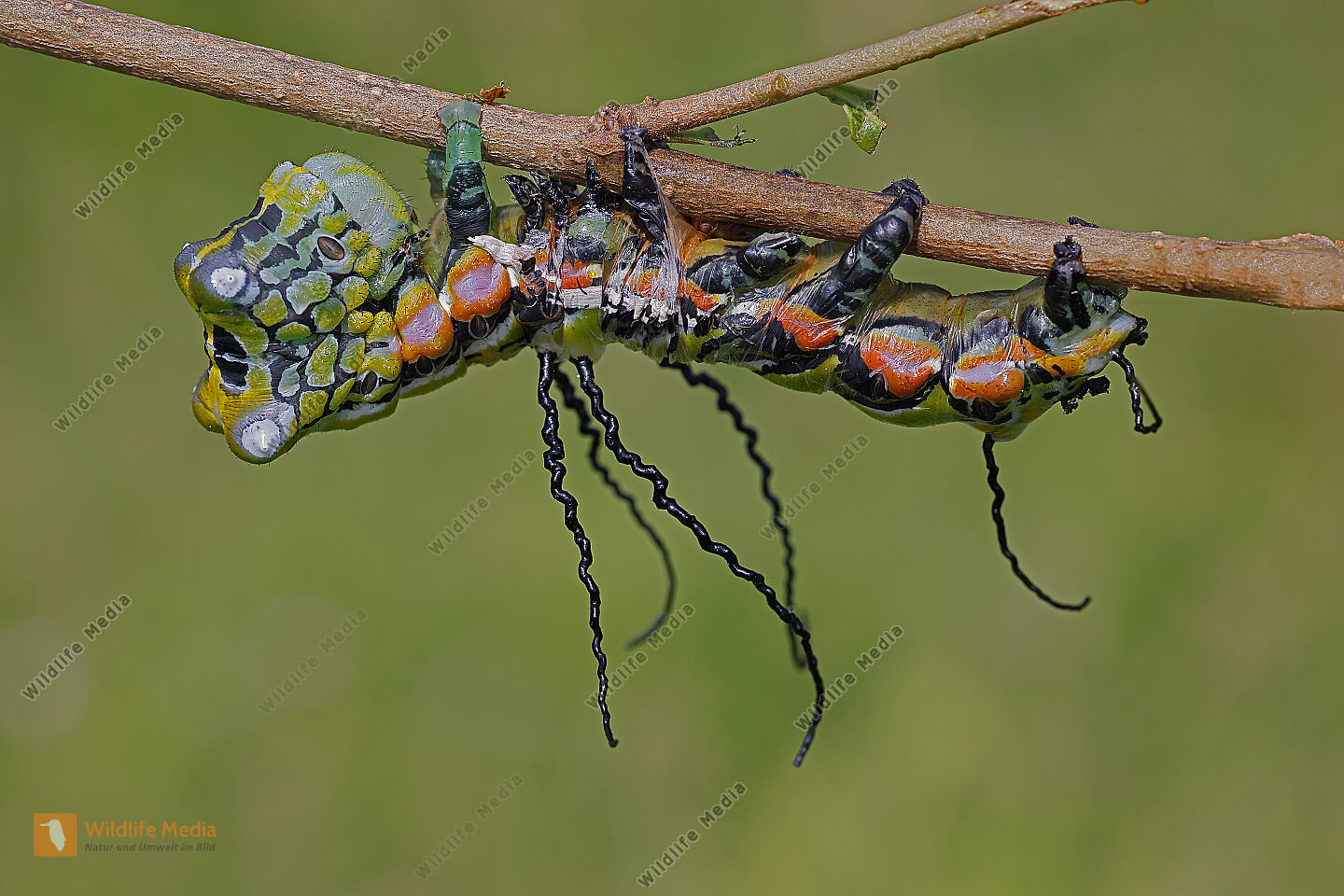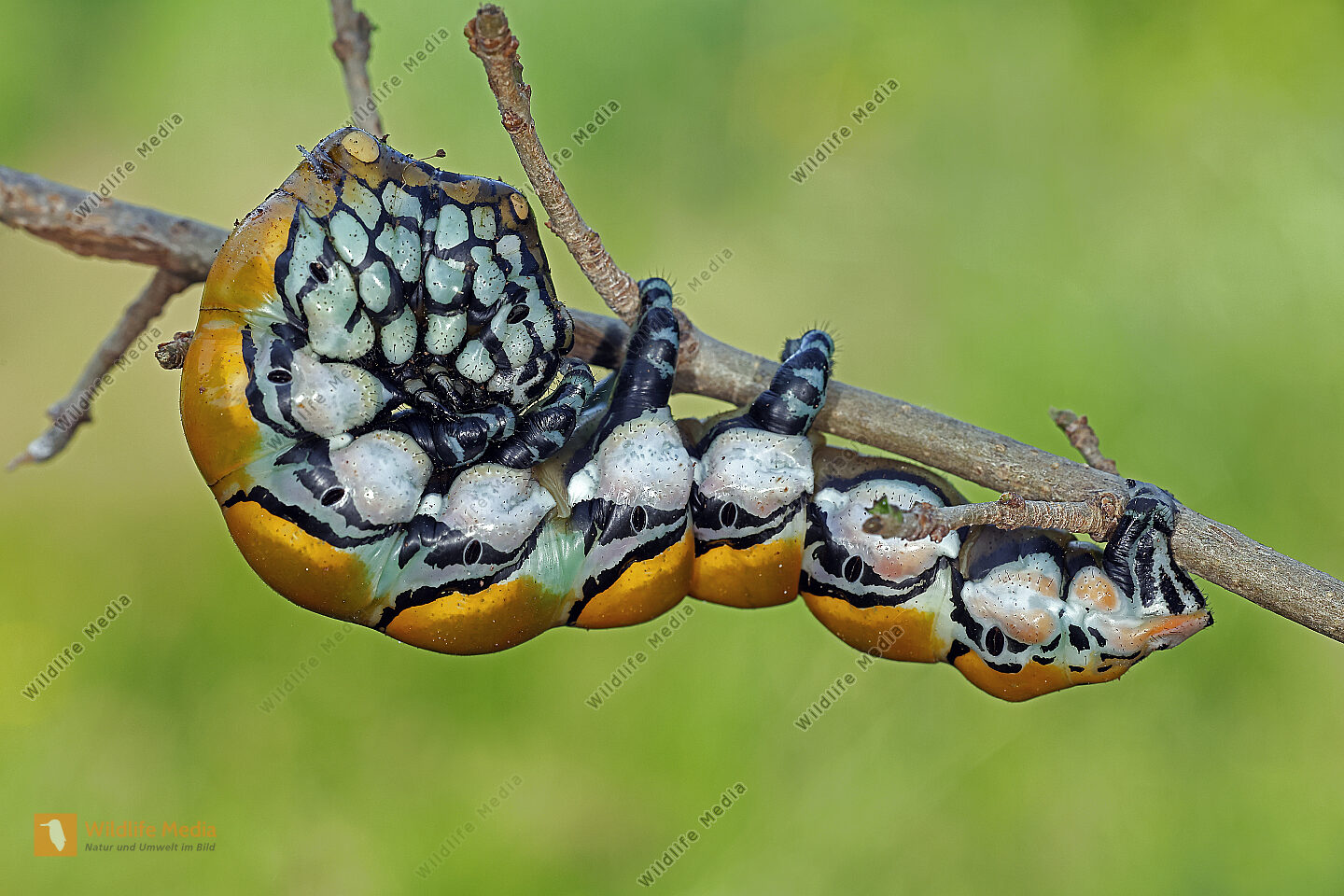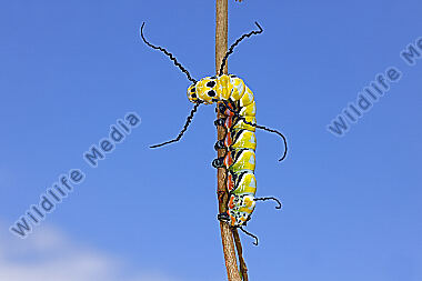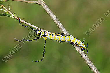 Weiße gehörnte Heidschnucken Böcke Ovis aries im Stall
