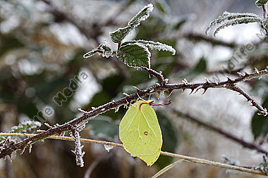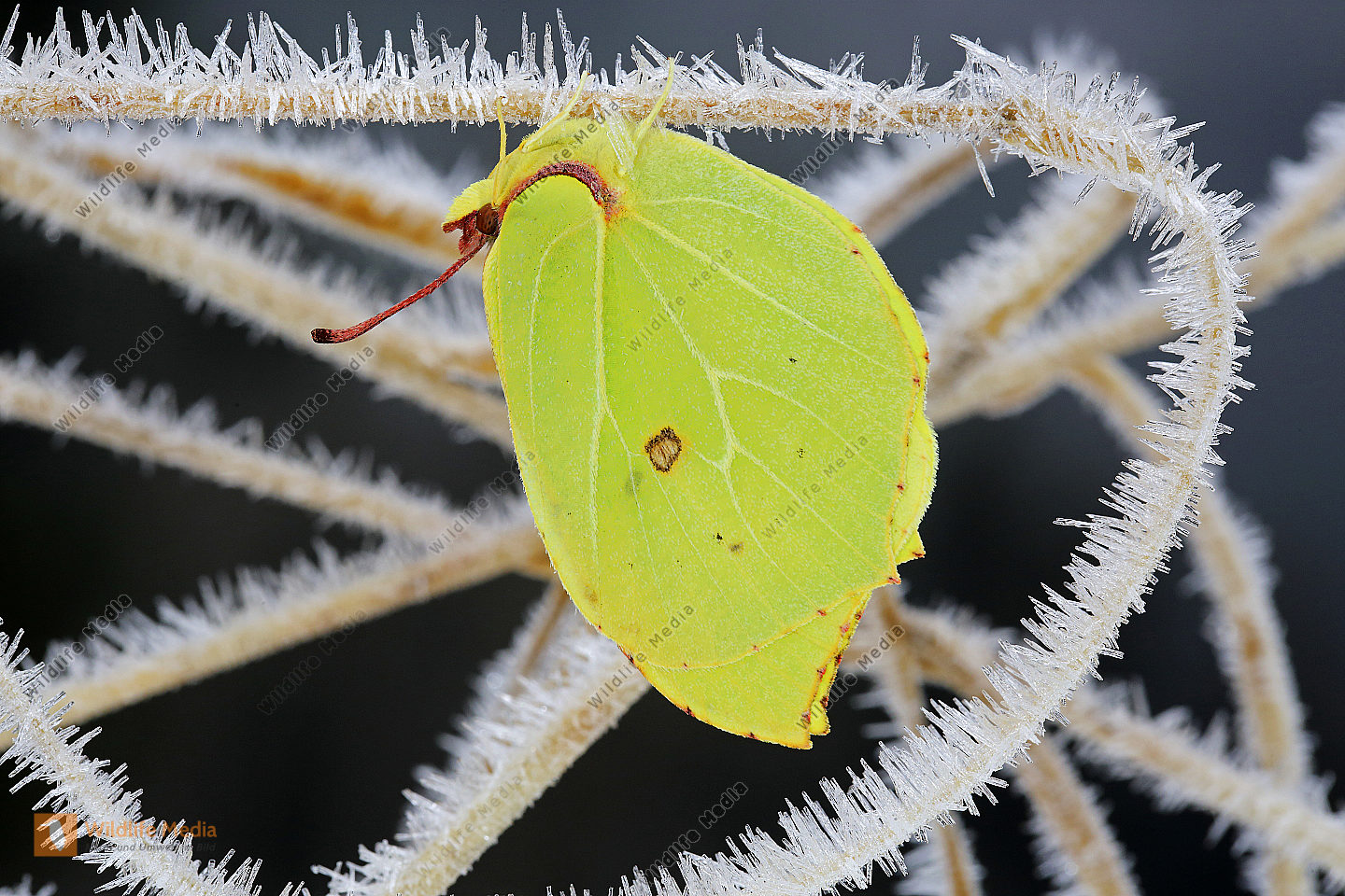 Ein Wintergoldhähnchen auf der Suche nach Nahrung