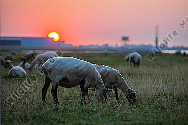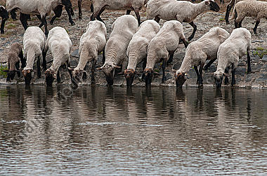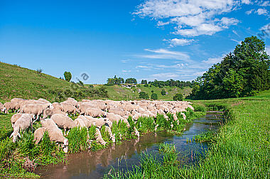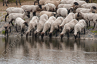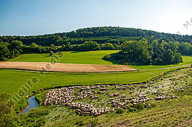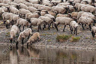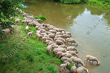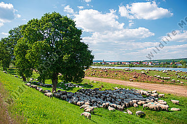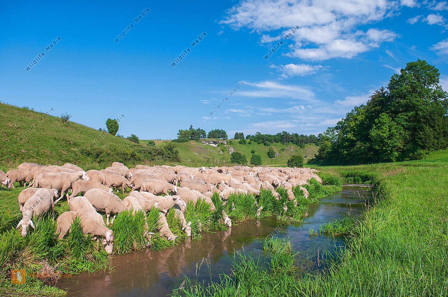 Schafherde Ovis aries an der Altmühl im Altmühtal