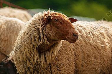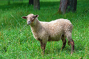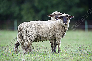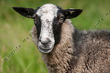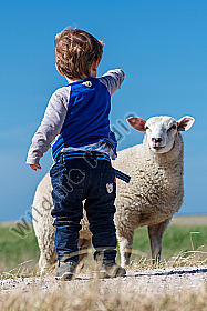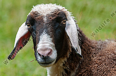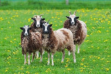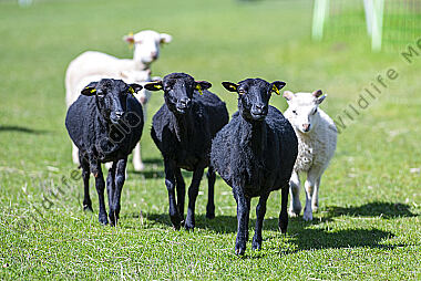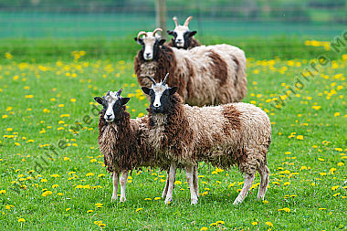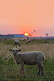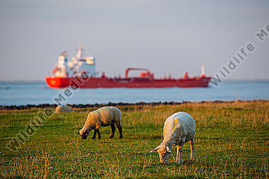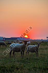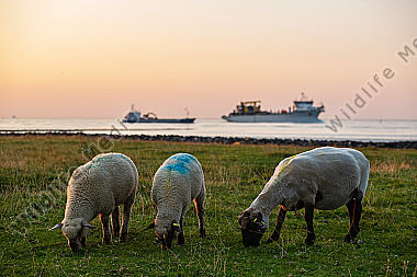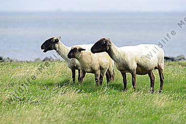Texelschaf Ovis aries auf dem Deich/Fehmarn