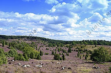 Blühende Heidelandschaft mit Heidschnuckenherde