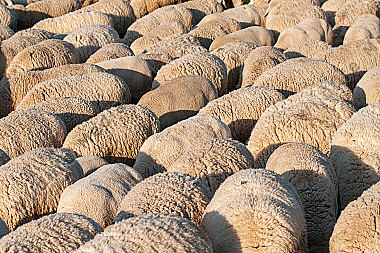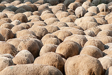 Schafherde Ovis aries sucht Schutz vor der Sonne