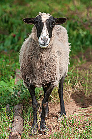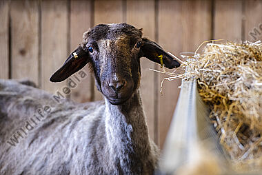 Alpines Steinschaf Muttertier Ovis aries im Stall
