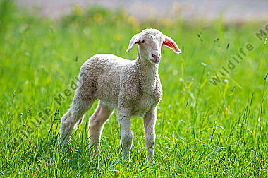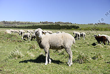 Ruhendes Merinolamm Ovis aries auf der Weide