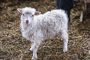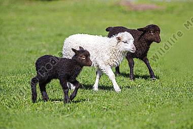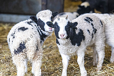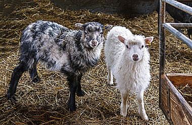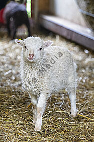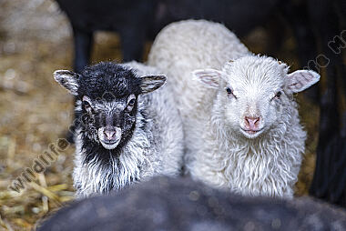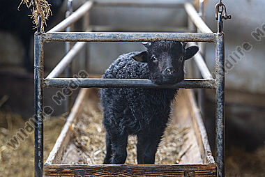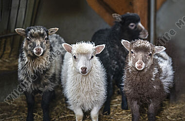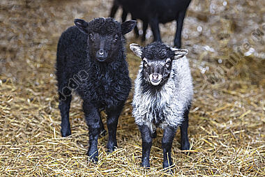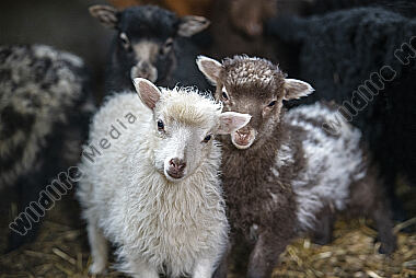 Jacobsschaf-Lämmer Ovis aries im Stall