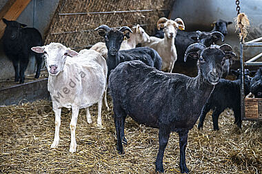 Alpines Steinschafe Muttertiere Ovis aries im Stall