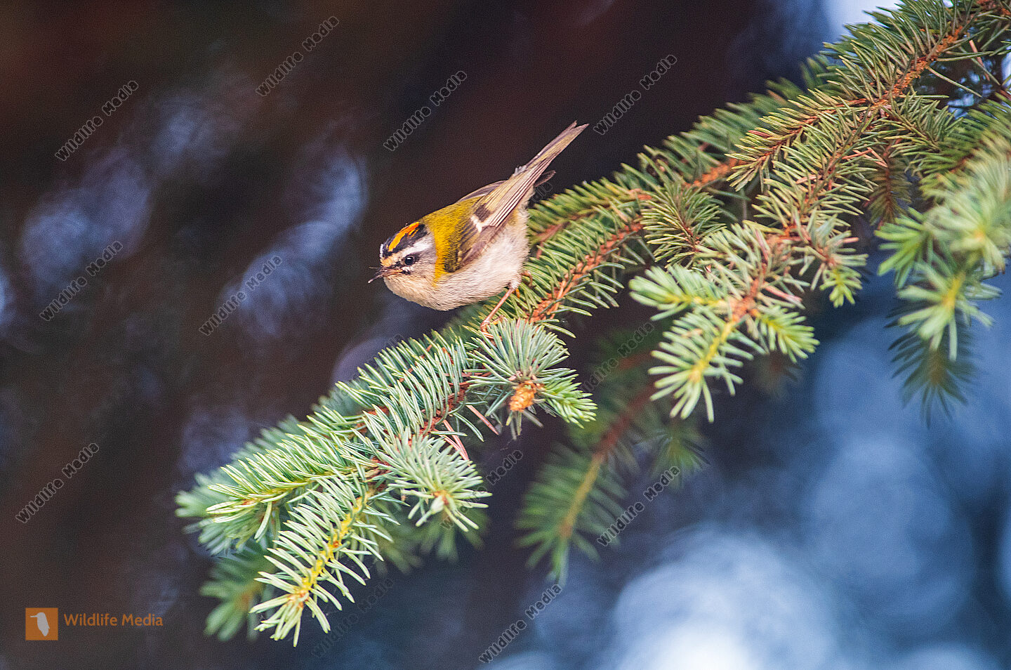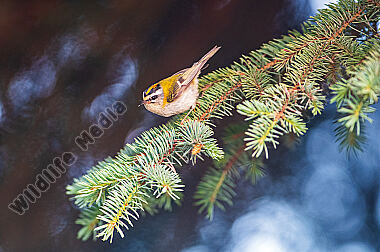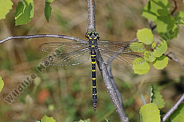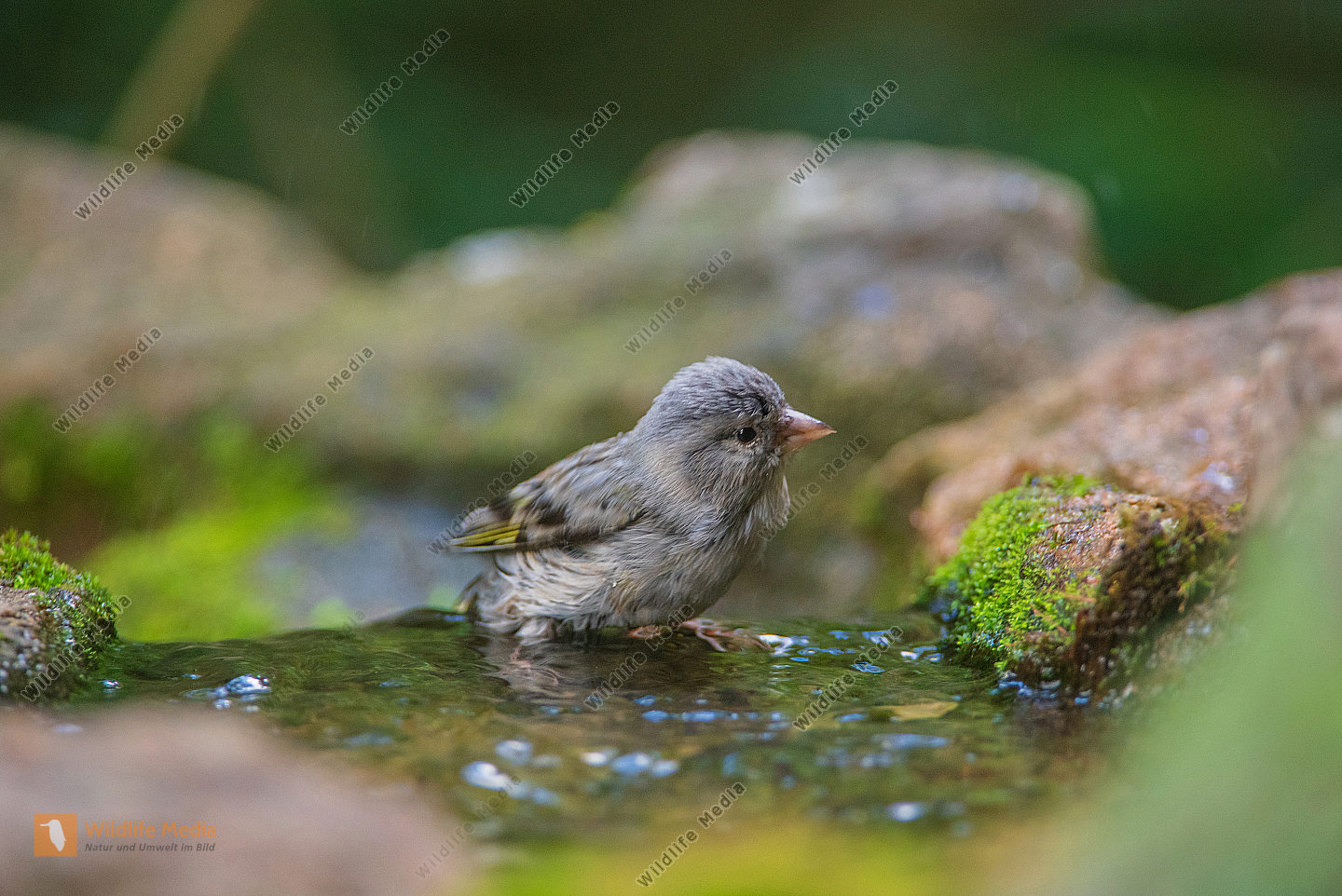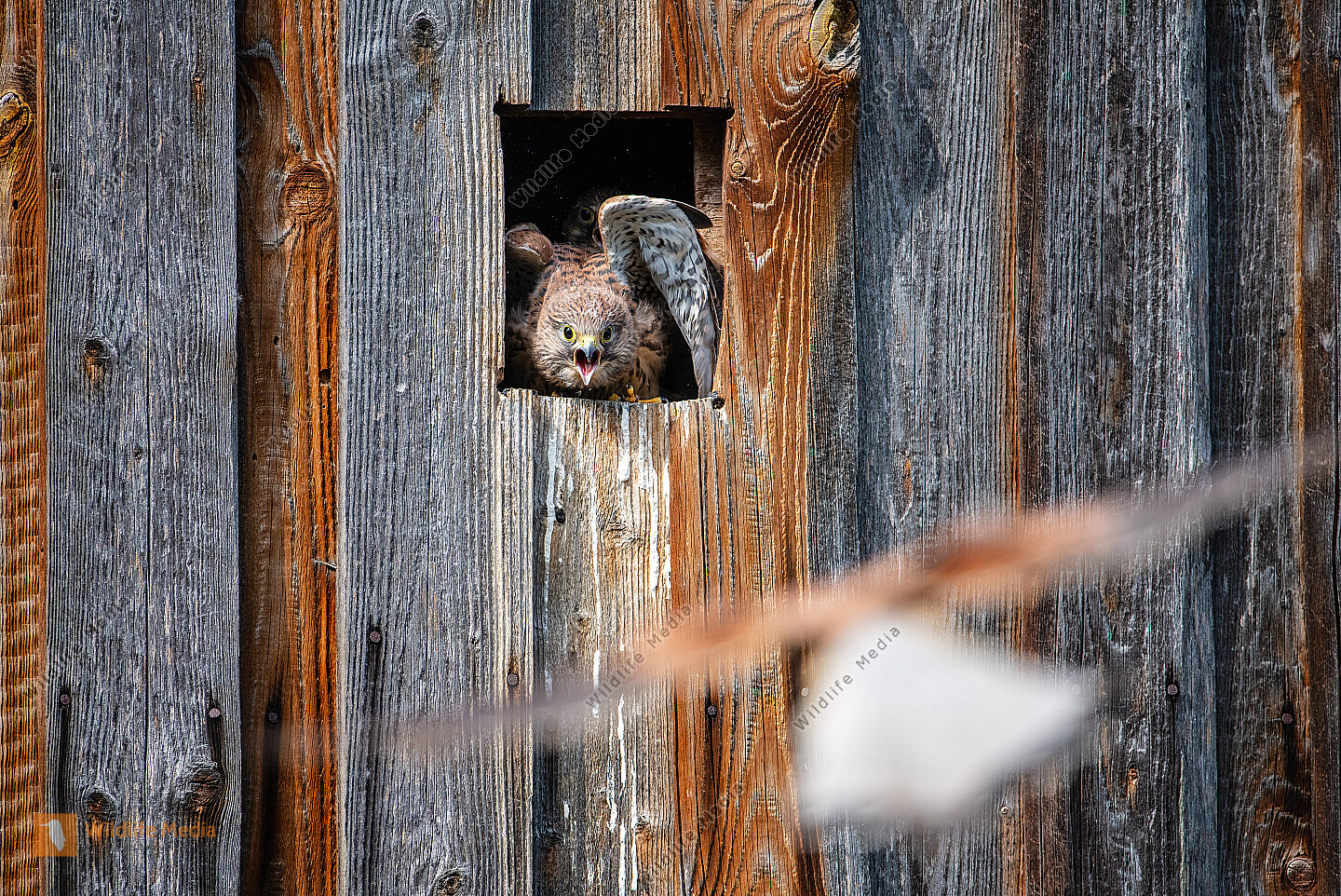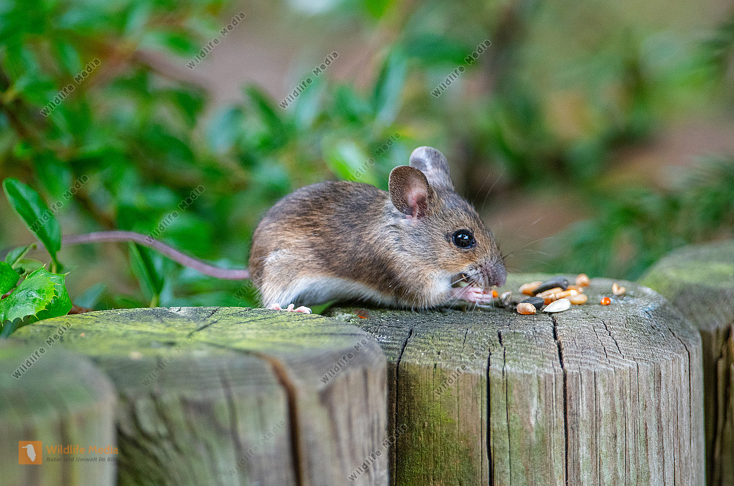 Wildkatze Felis silvestris silvestris auf einem Holzhaufen Hochformat