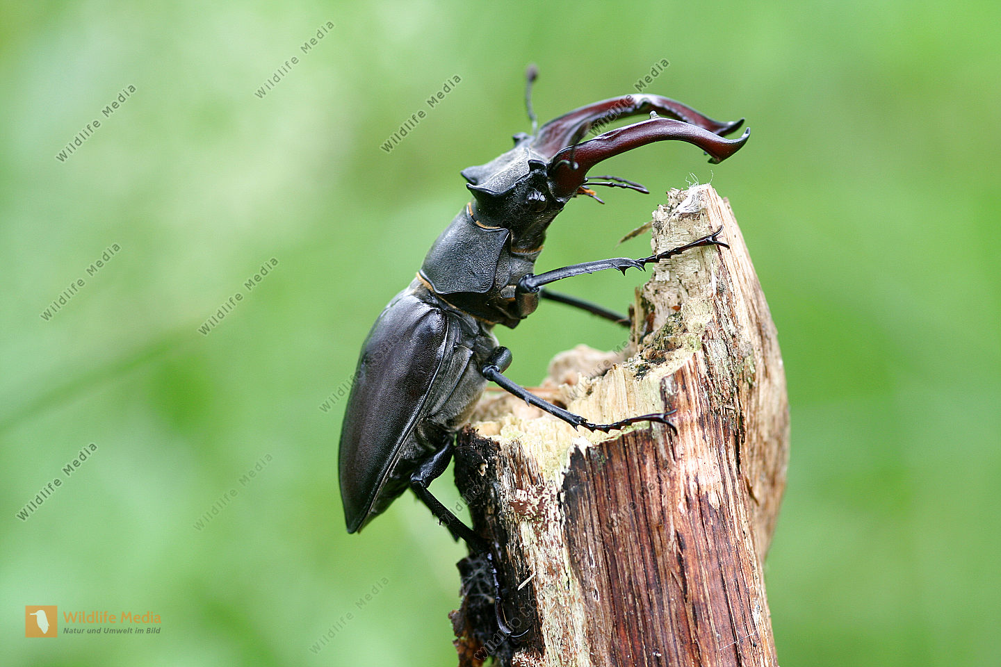 Eichehäher Garrulus glandarius auf einem Baumstumpf