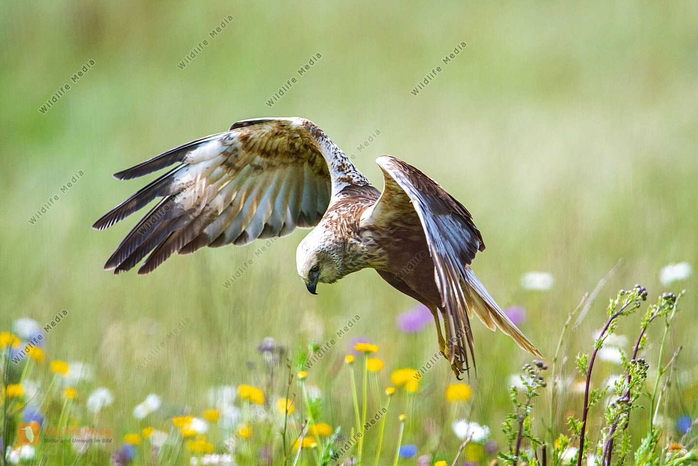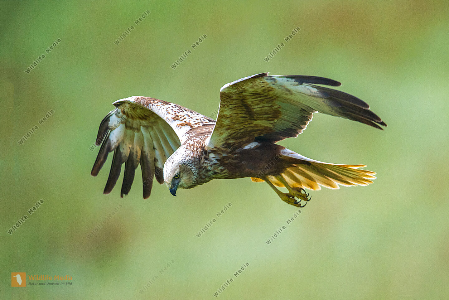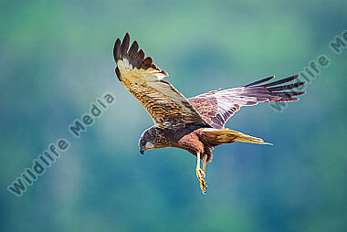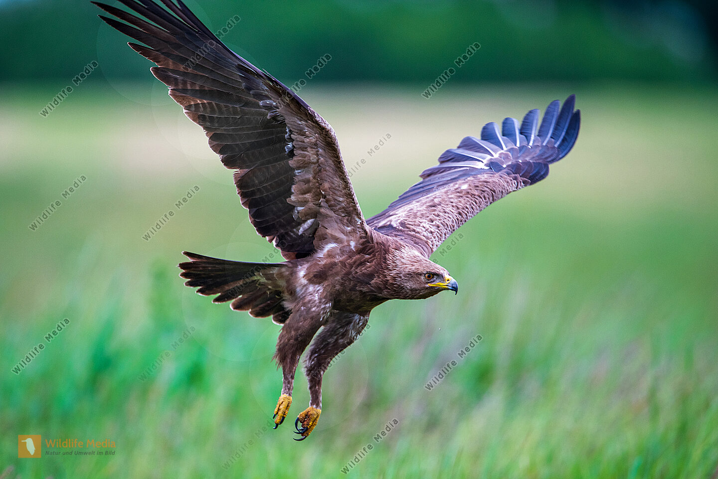 Mäusebussard Buteo buteo auf einem Baumstumpf