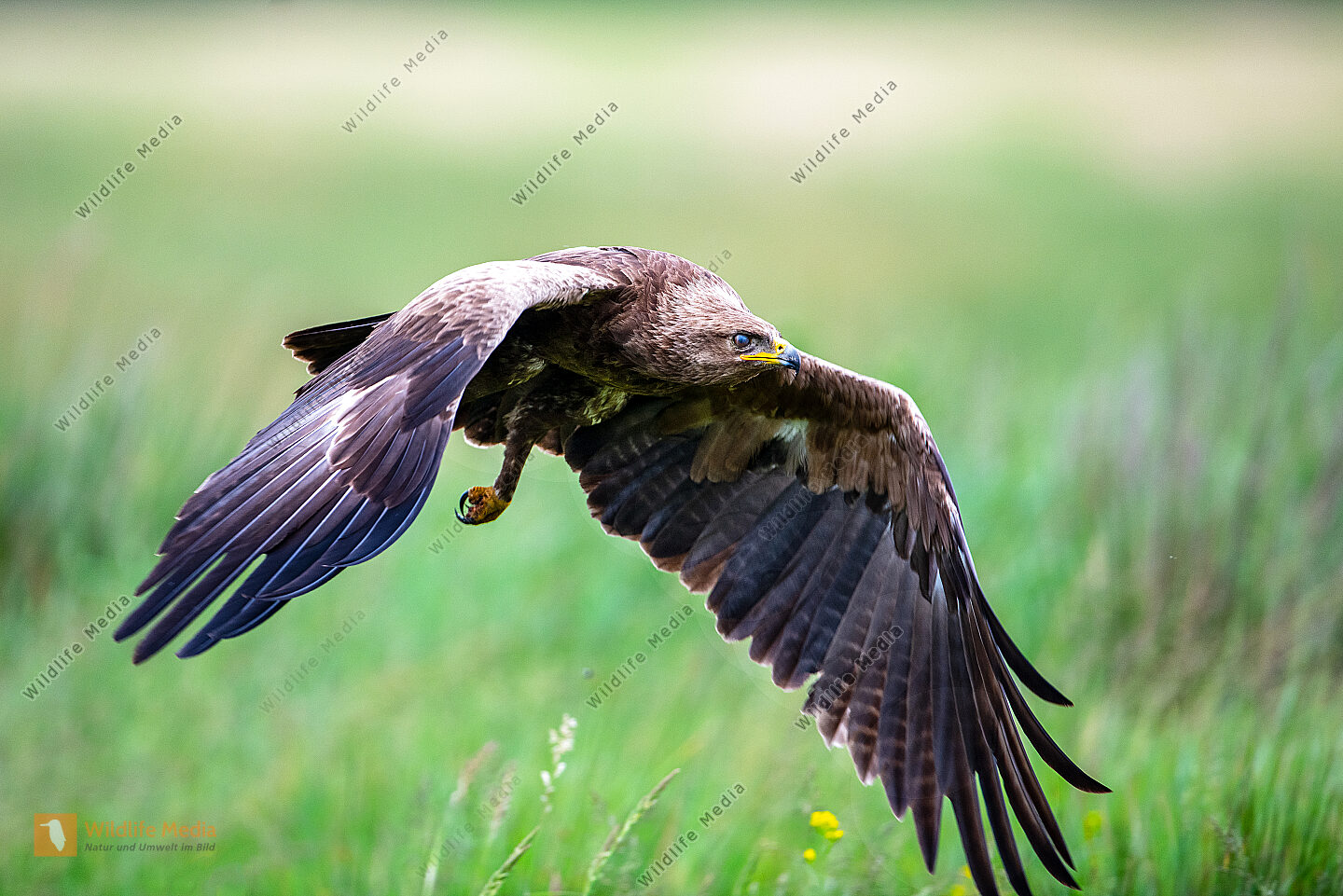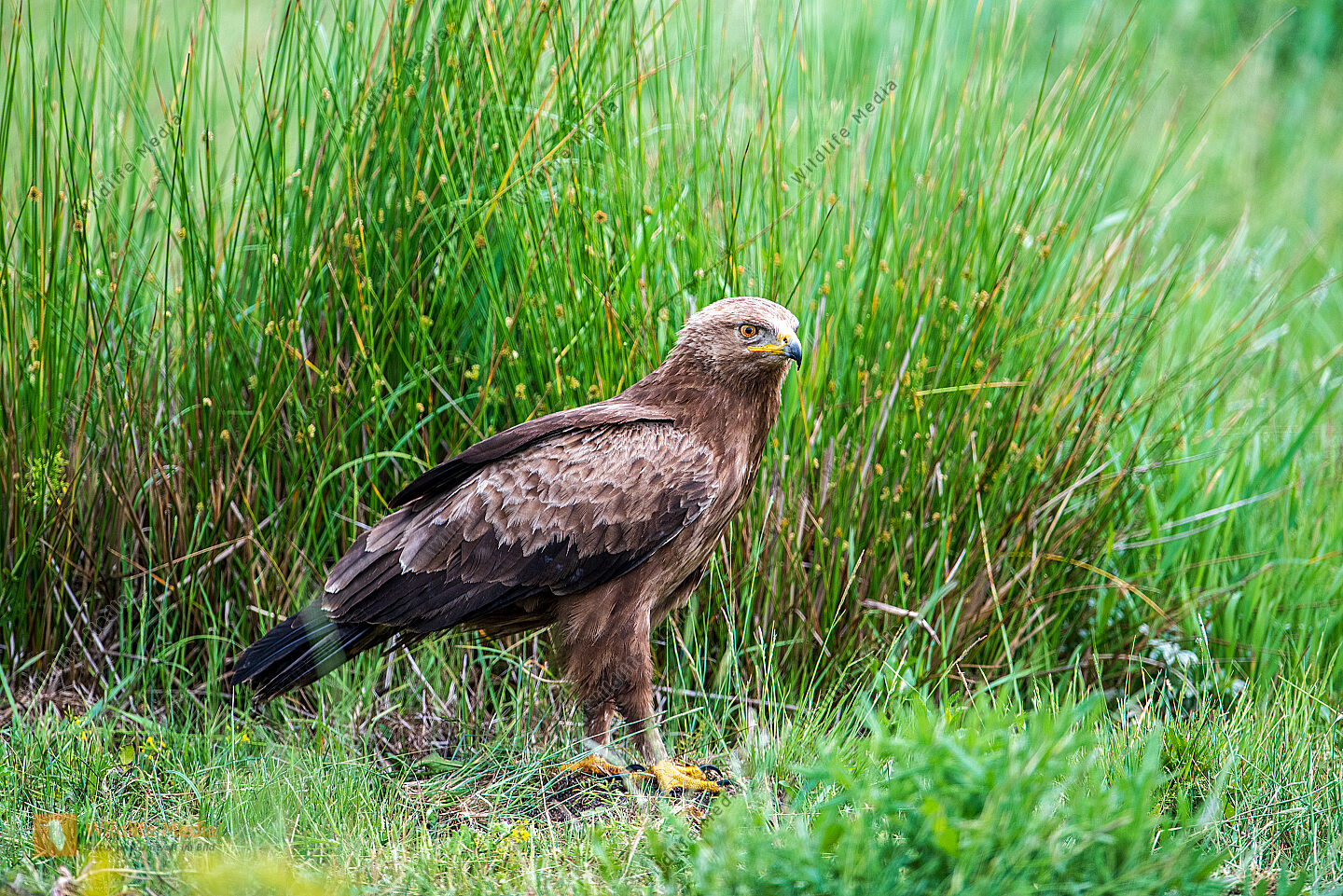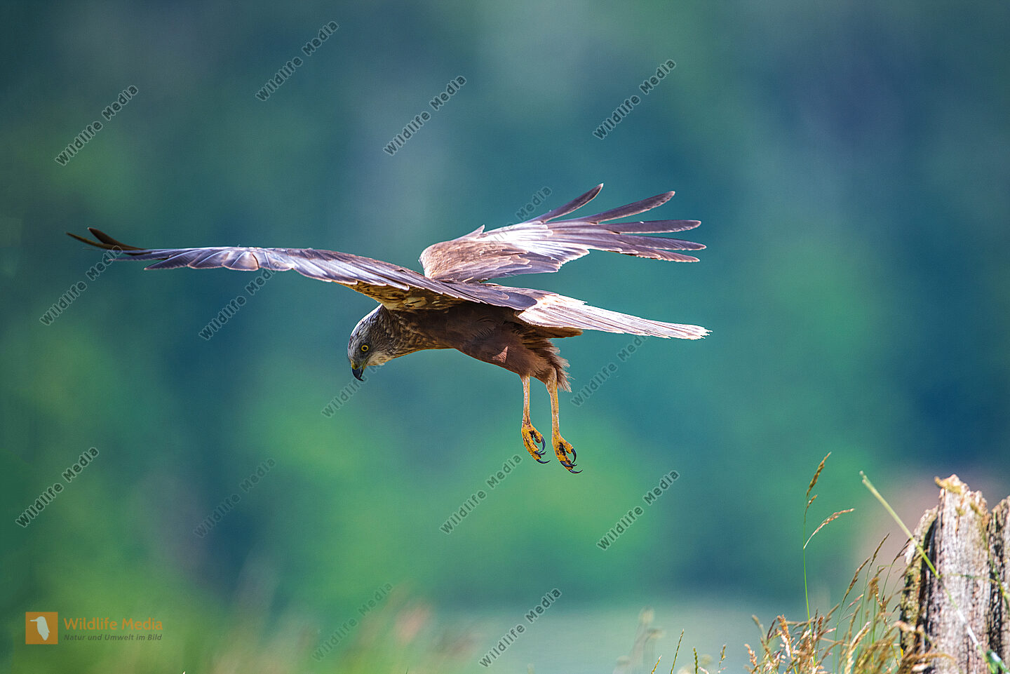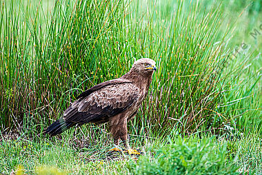 Rotmilan Milvus milvus auf einem Baumstumpf