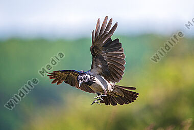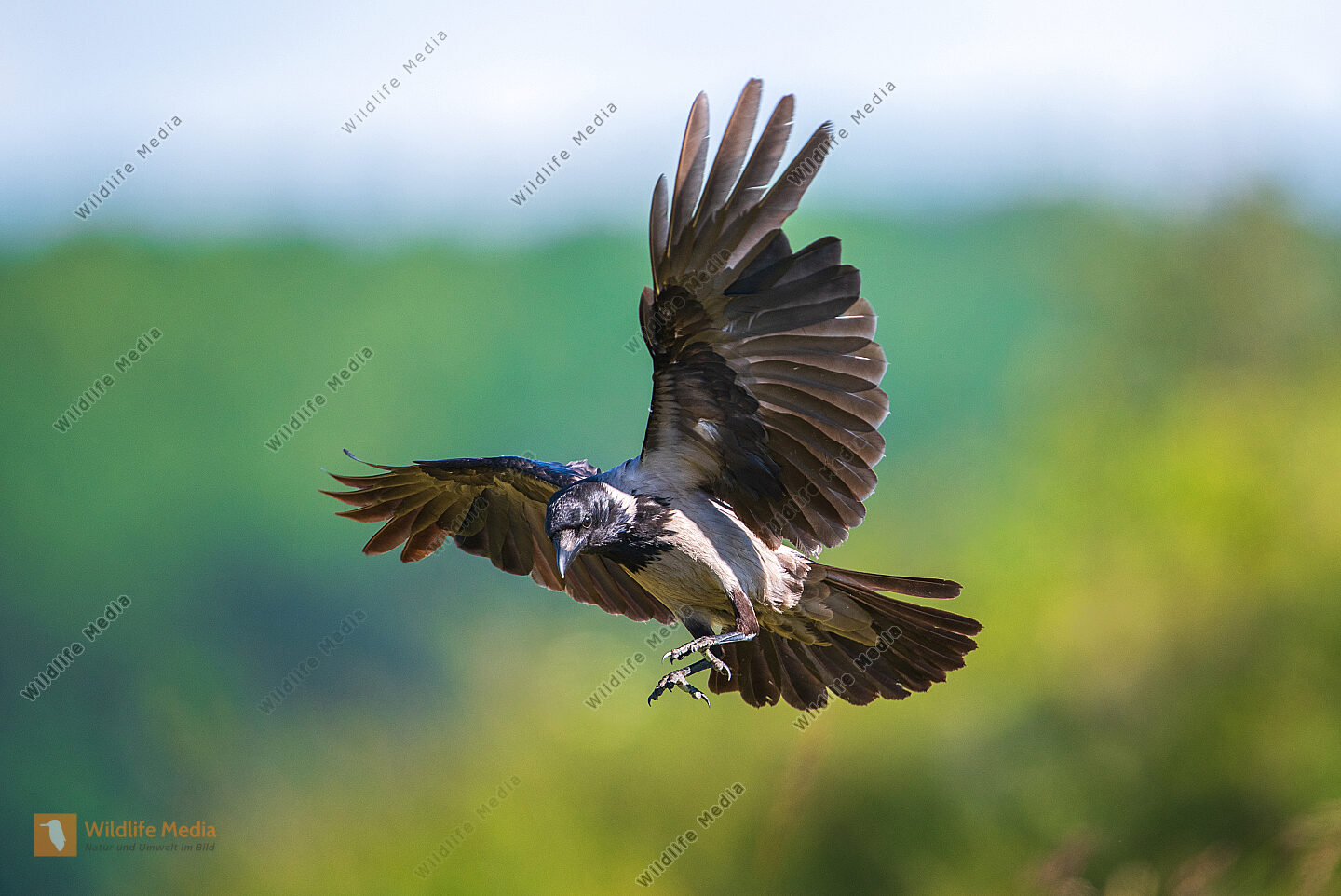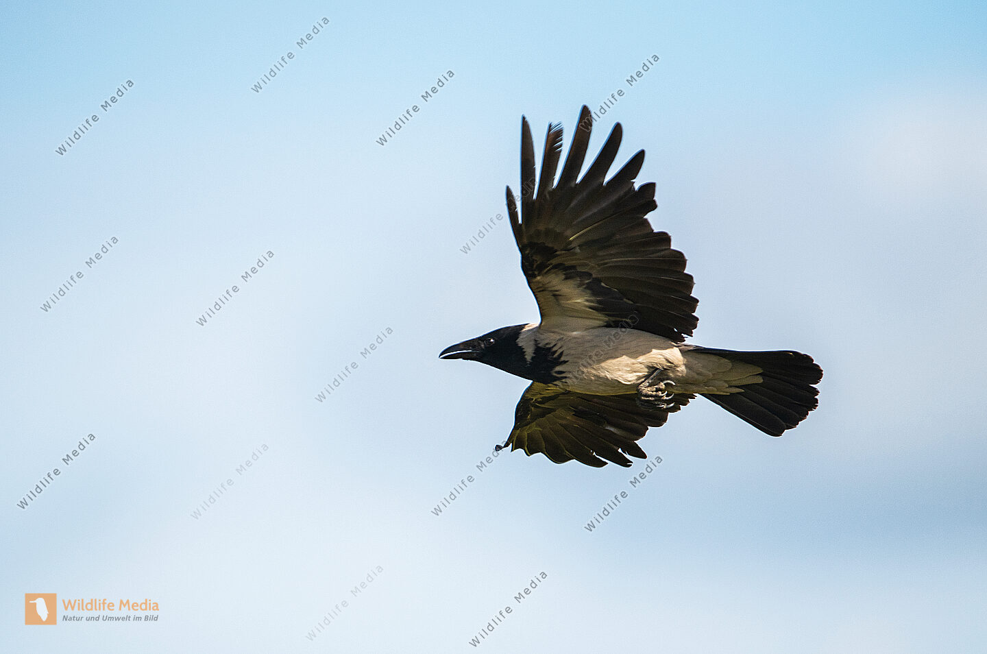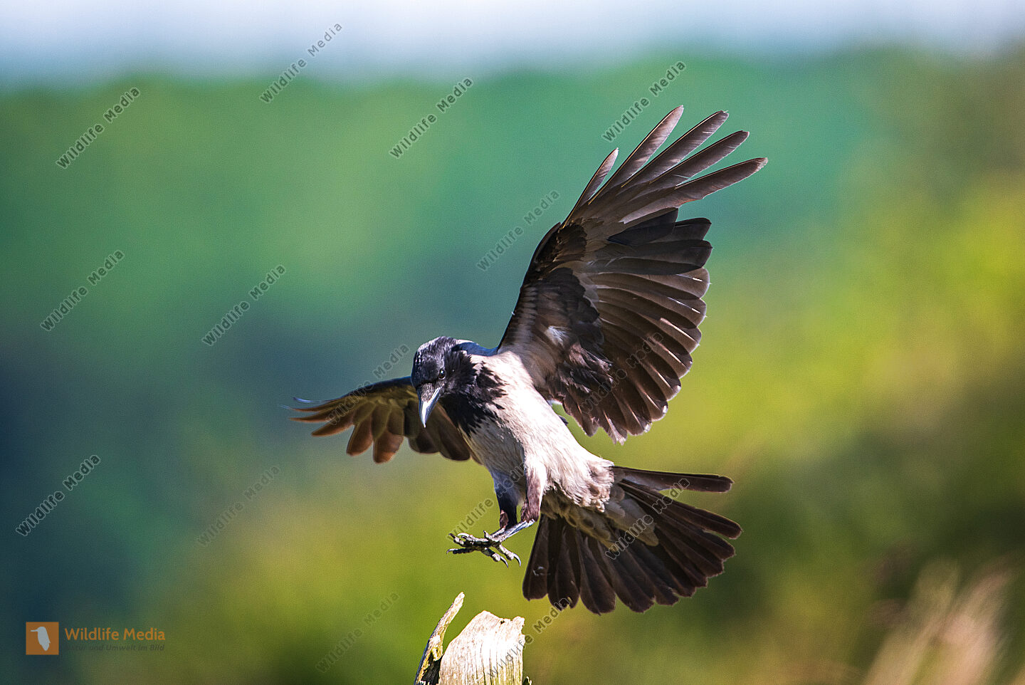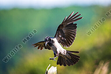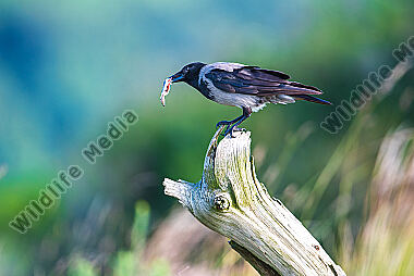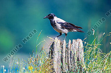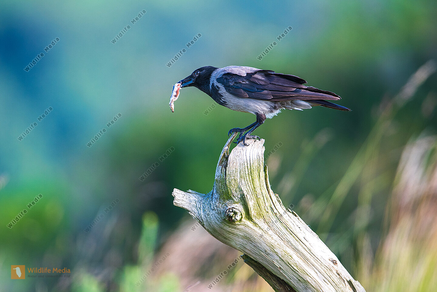Nebelkrähe Corvus cornix auf einem Baustumpf