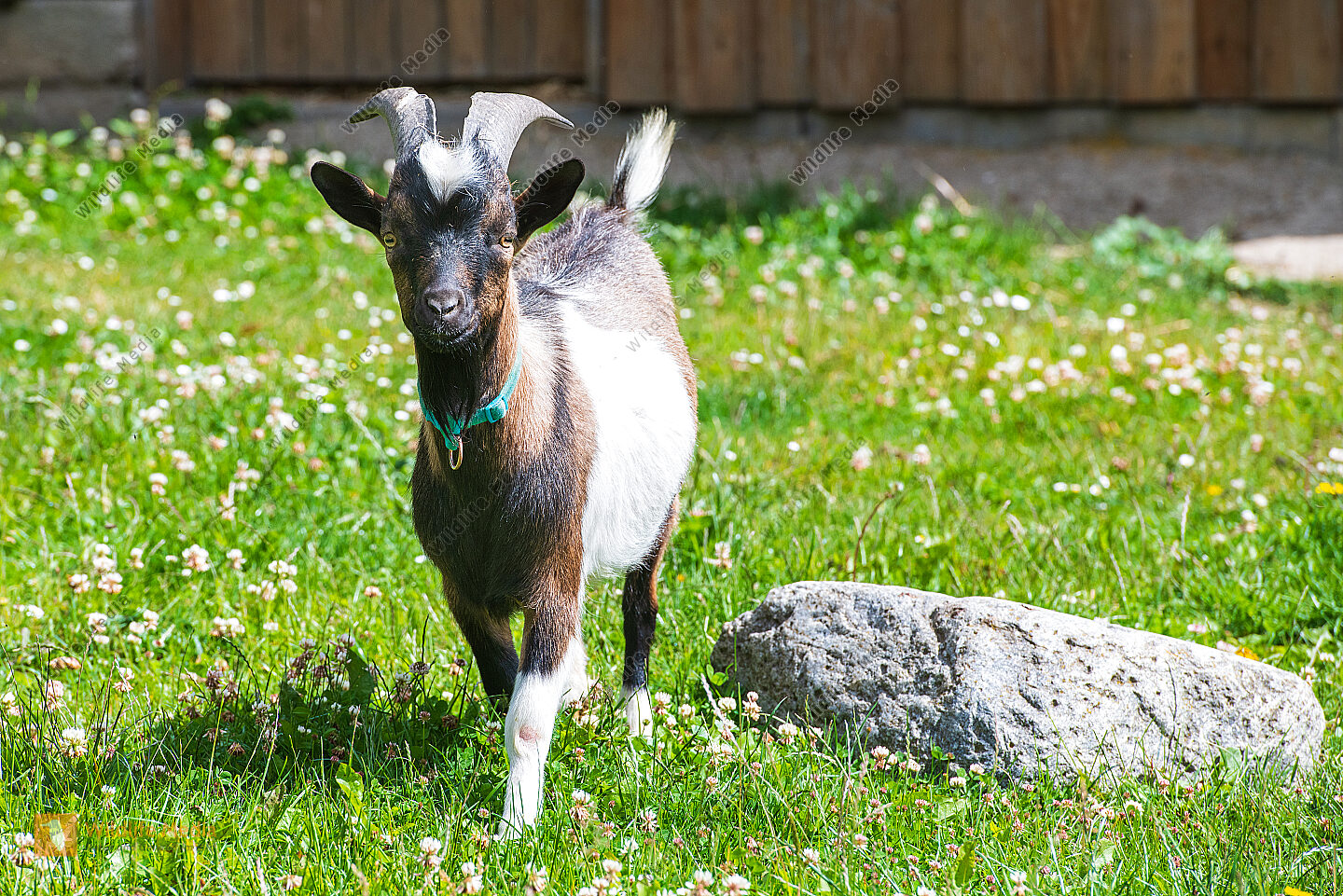 Sichernder Gamsboch Rupicapra rupicabra im Frühling