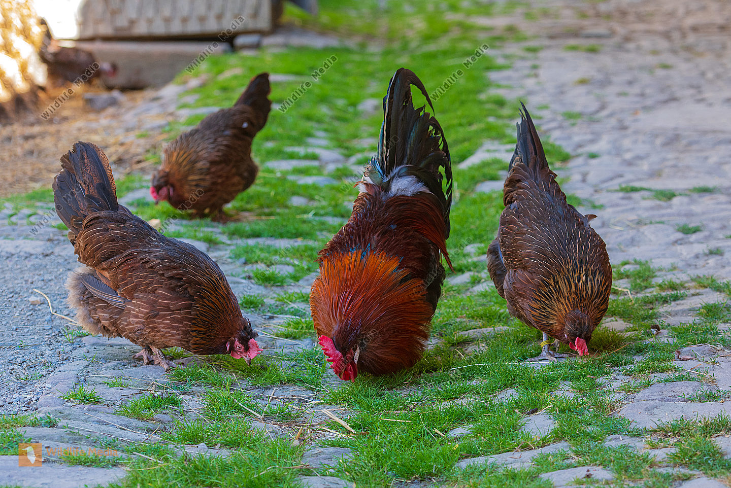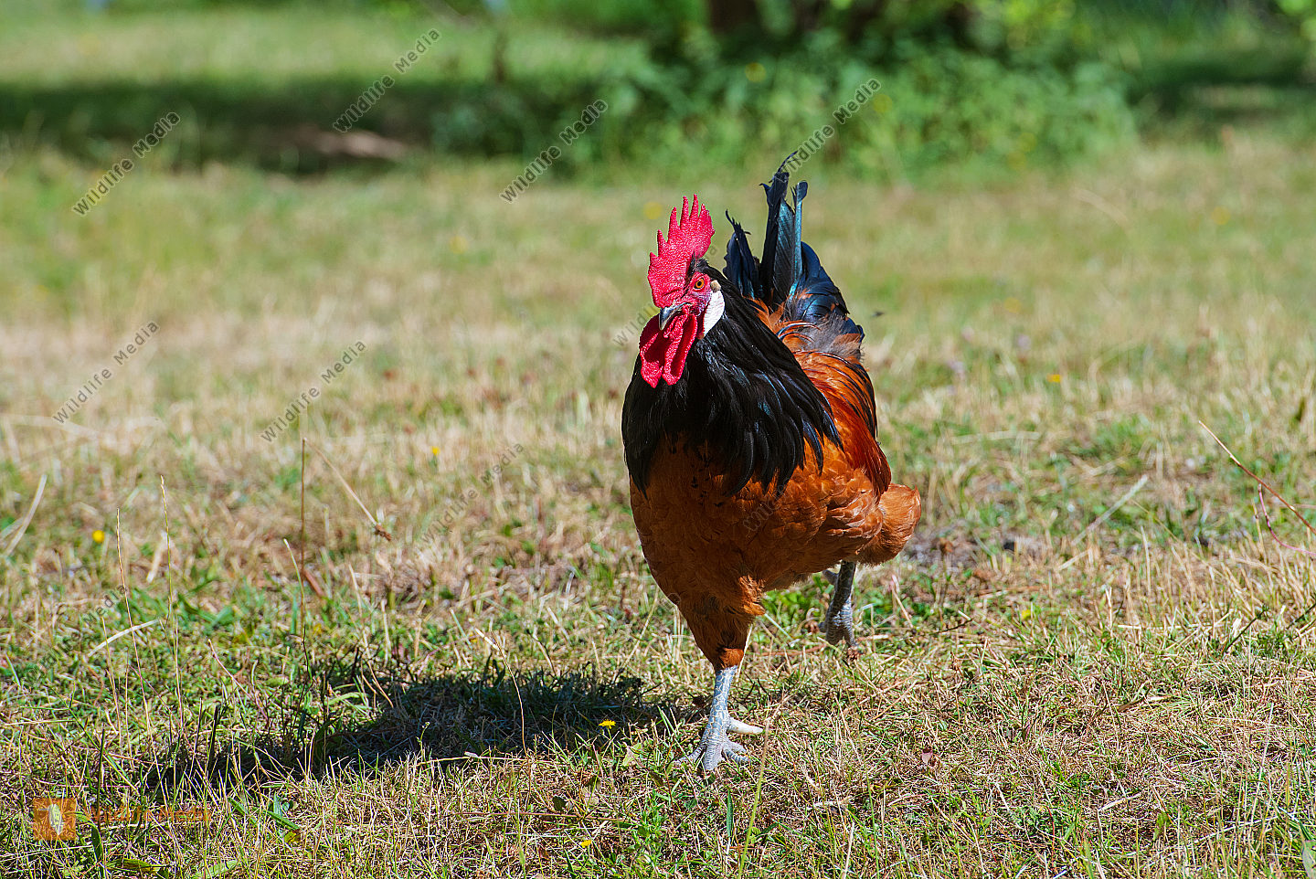 Haushahn Gallus gallus domesicus im Gegenlicht