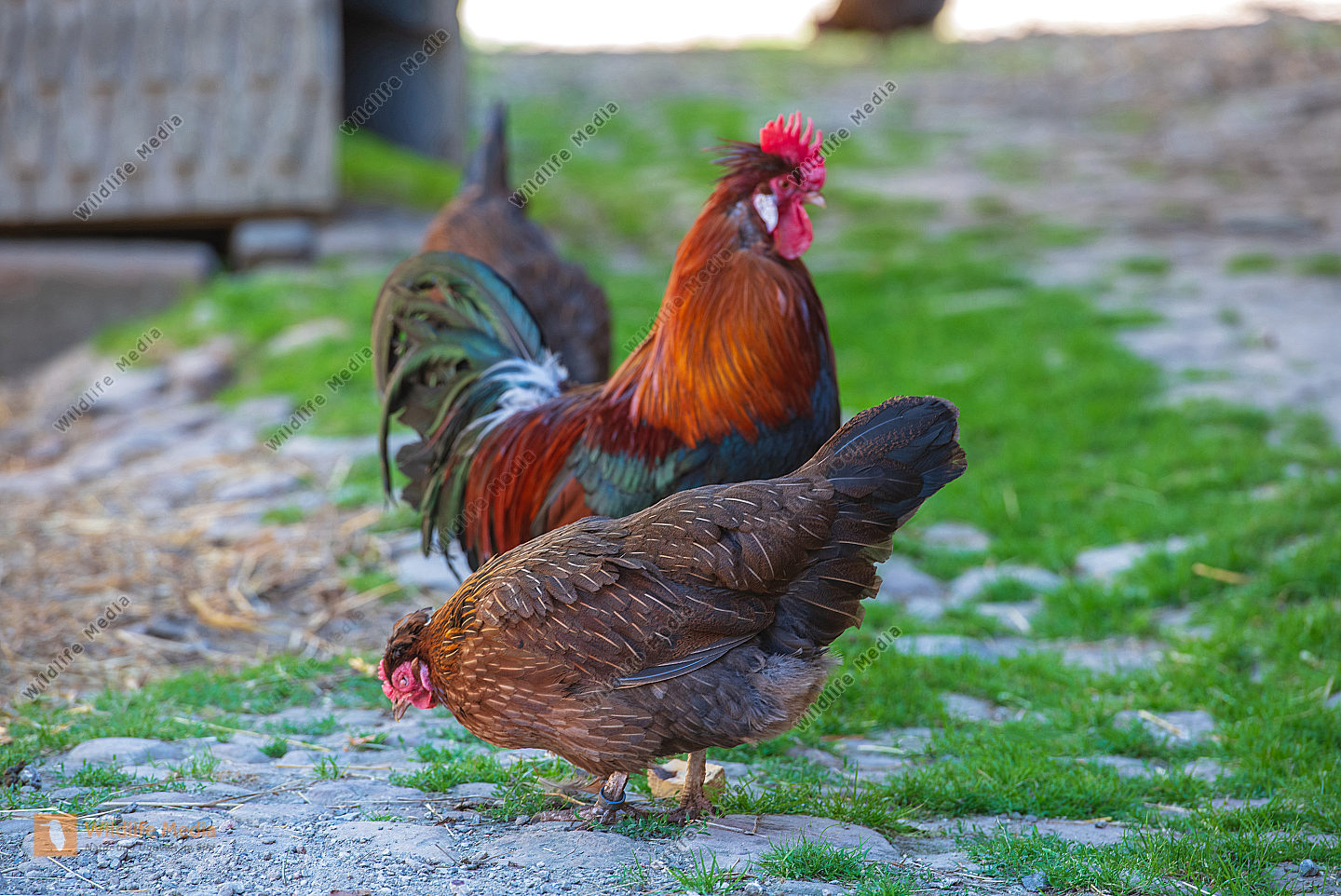 Haushühner Gallus gallus domesicus Gockel und Henne