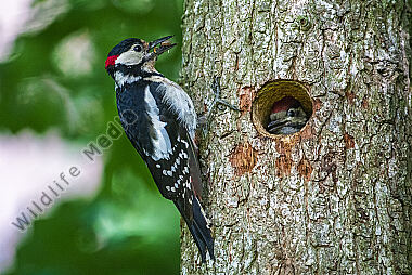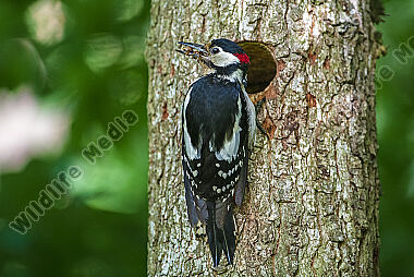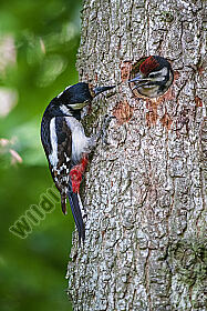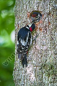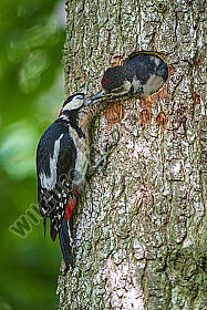 Baummarder Martes martes blickt aus einer Baumhöhle
