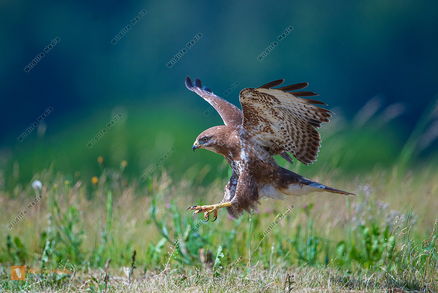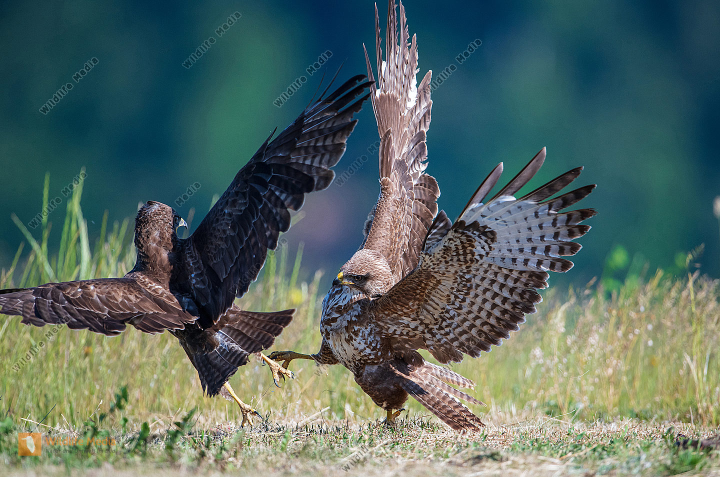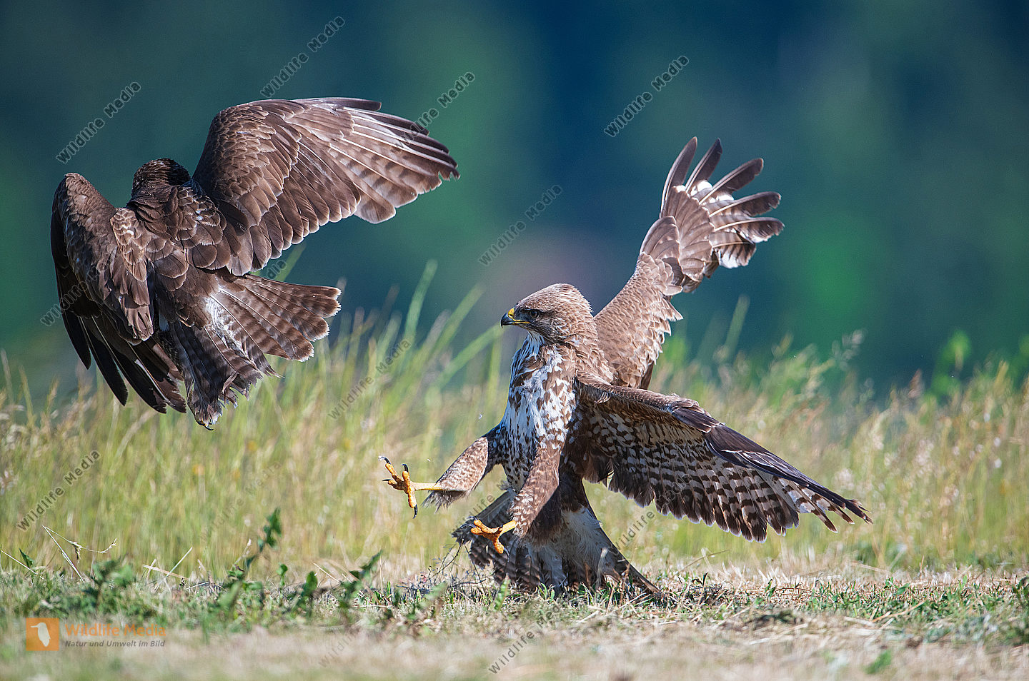 Um Beute kämpfende Mäusebussarde Buteo buteo