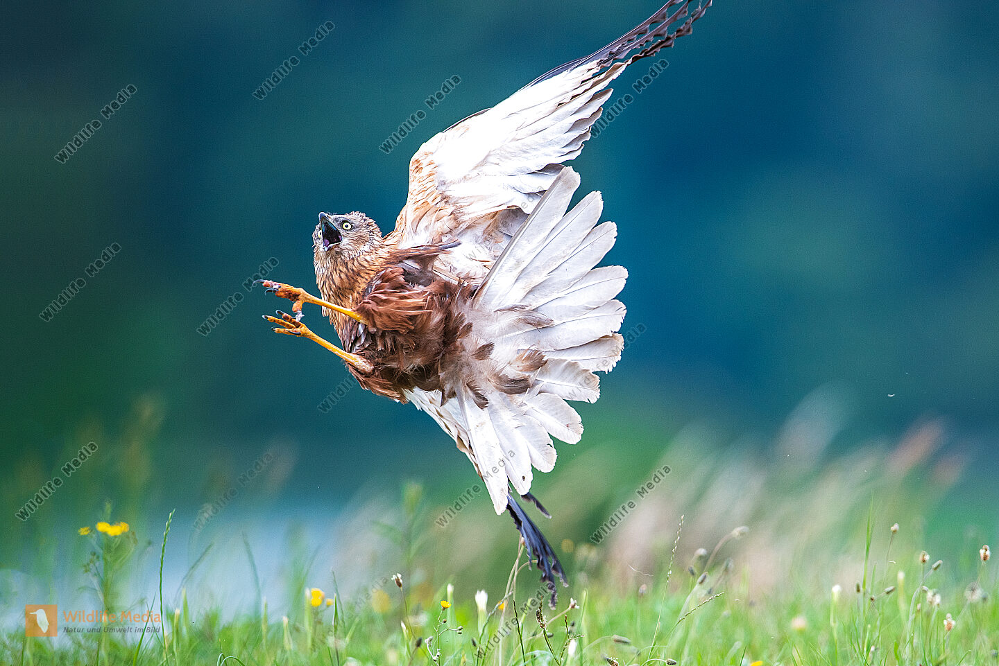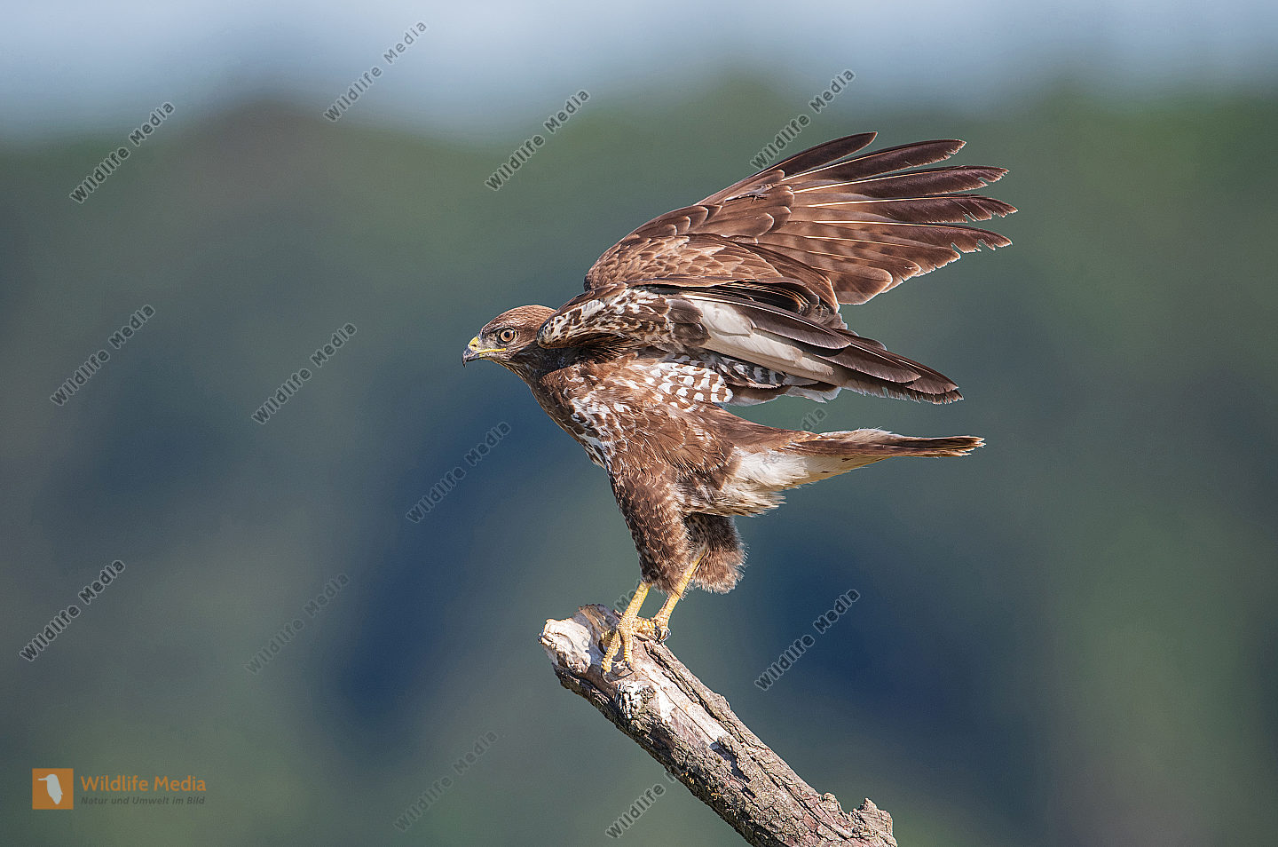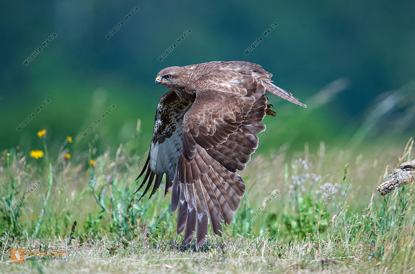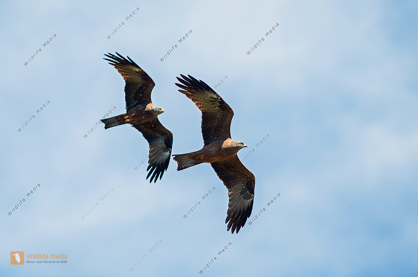 Um Beute kämpfende Mäusebussarde Buteo buteo